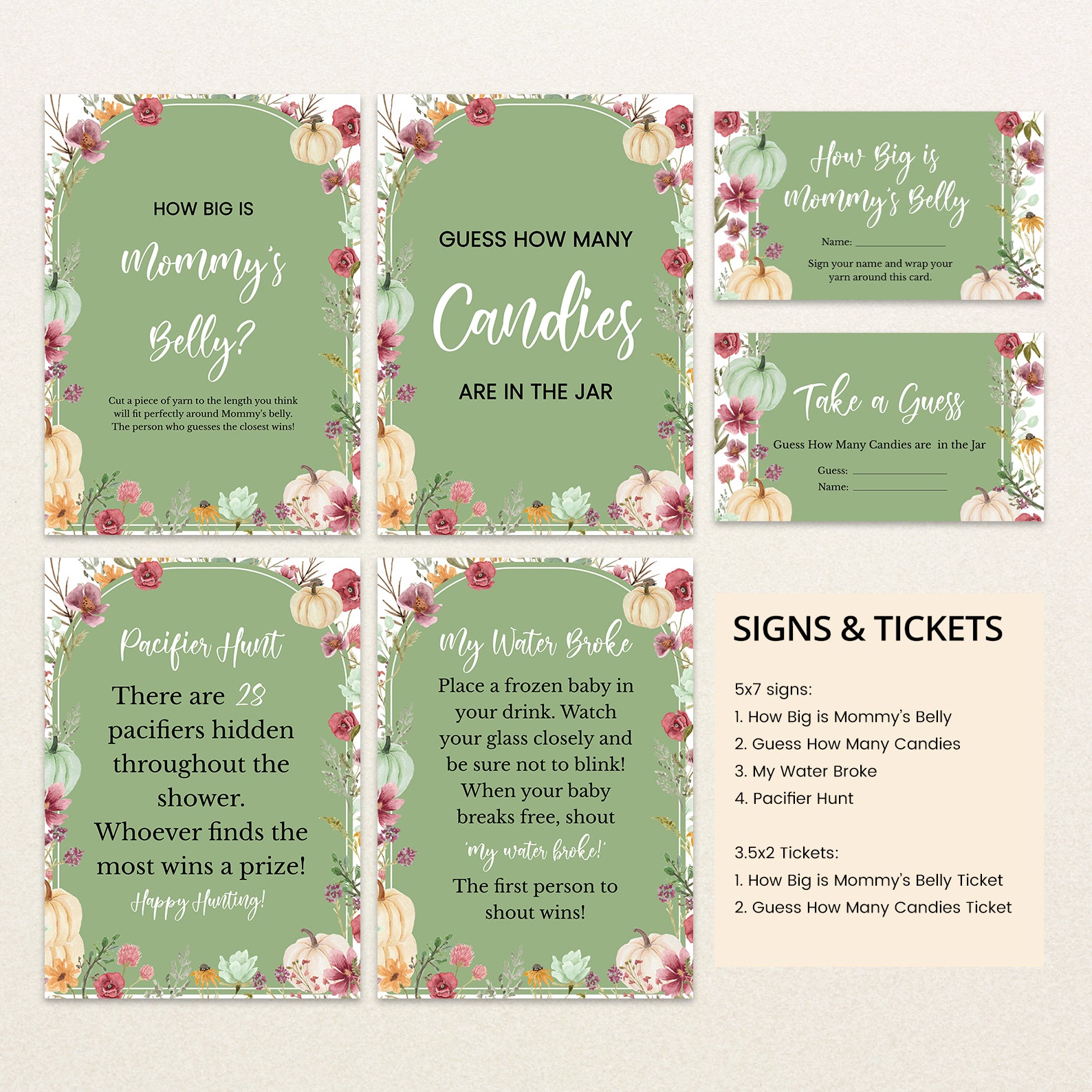 Fall Baby Shower Green Game Bundle: Pumpkin & Wildflowers Arch