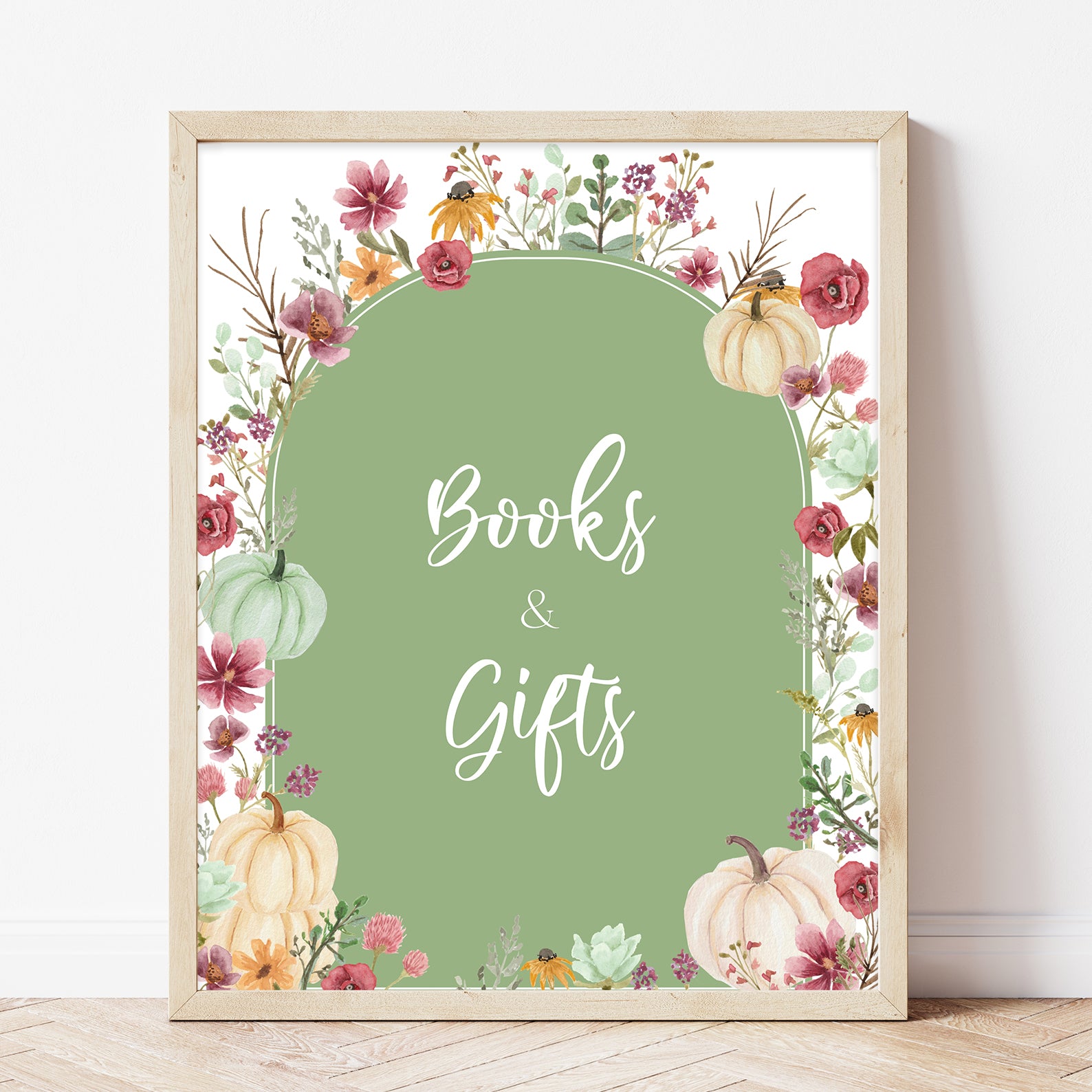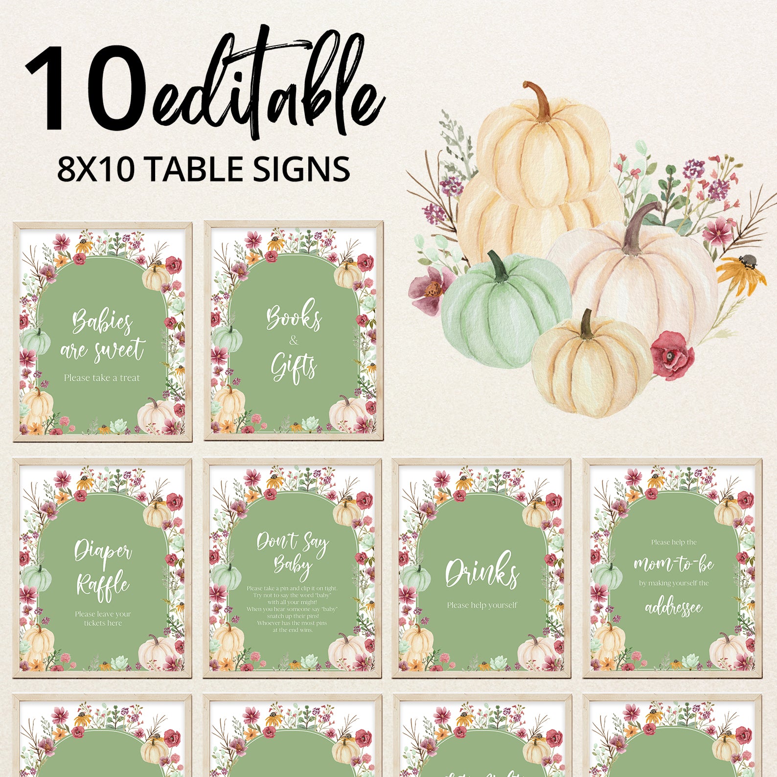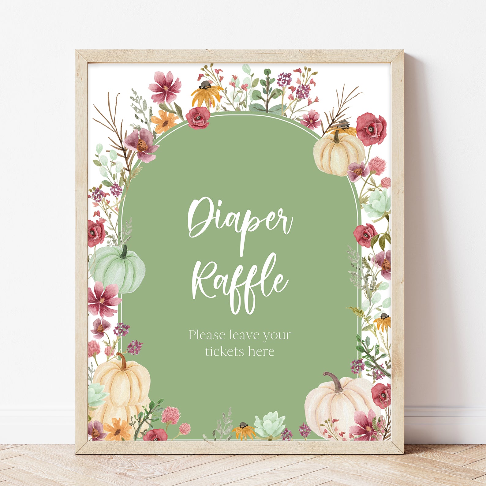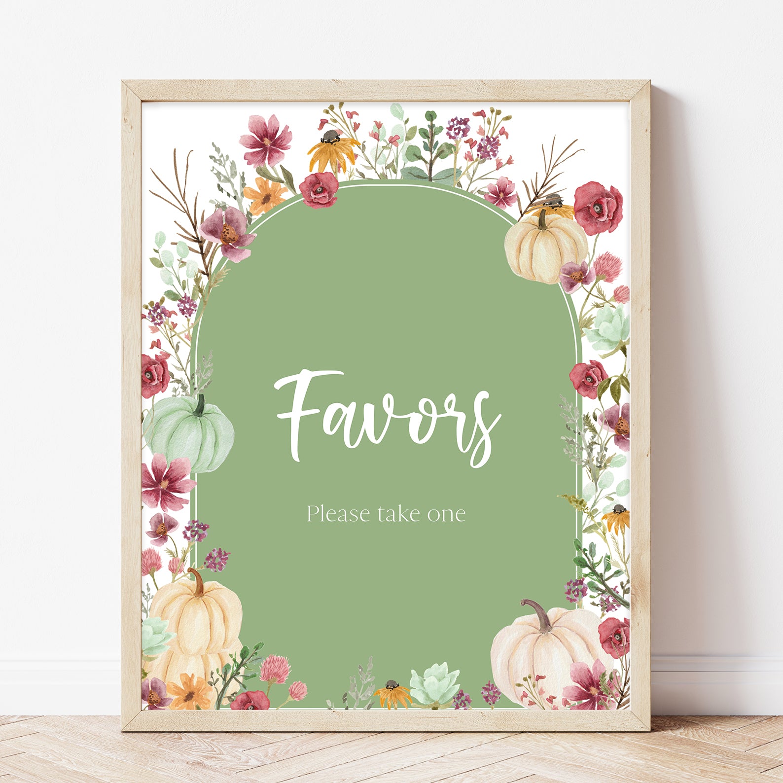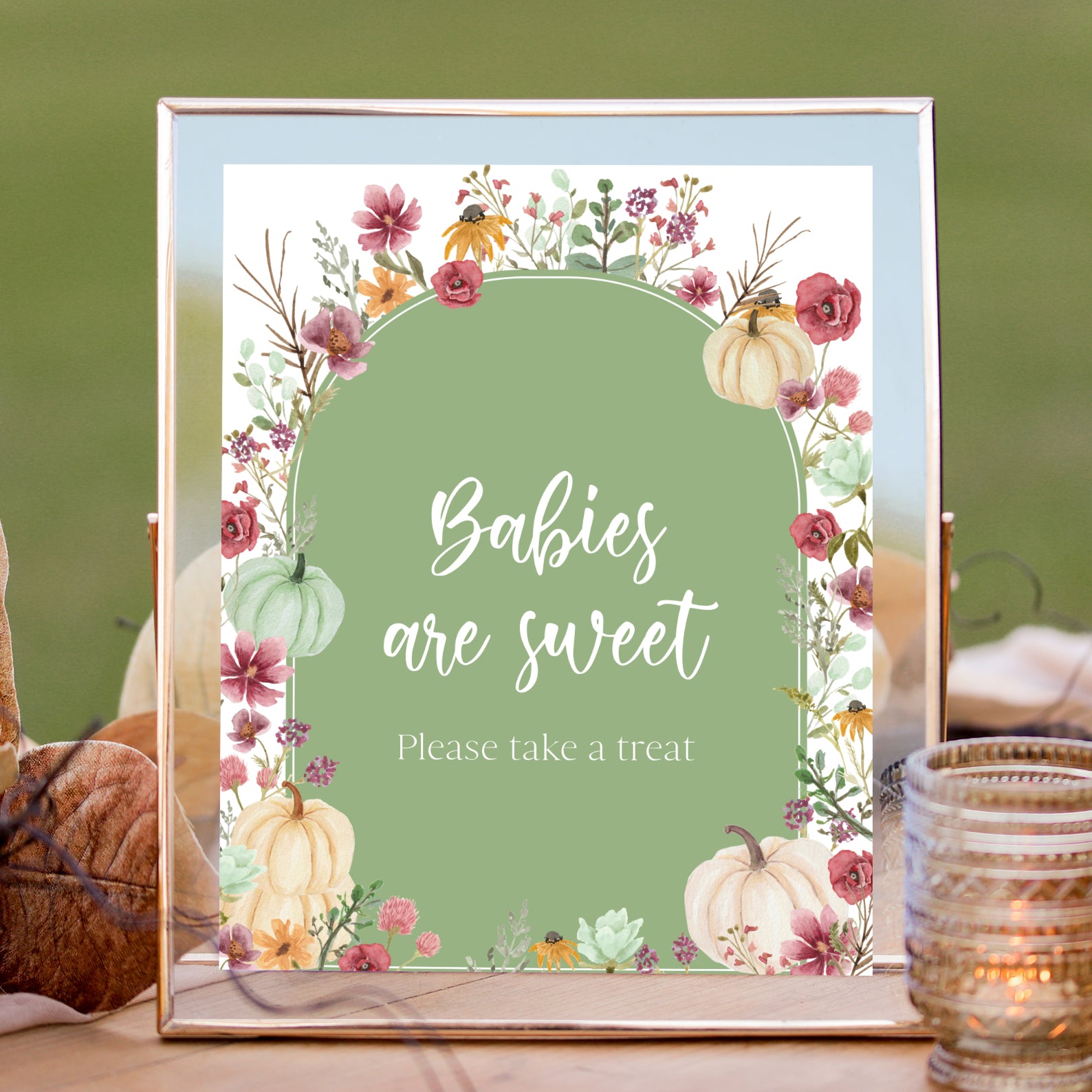 - Purchase this Fall Baby Shower Green Table Sign: Pumpkin & Wildflowers Arch template