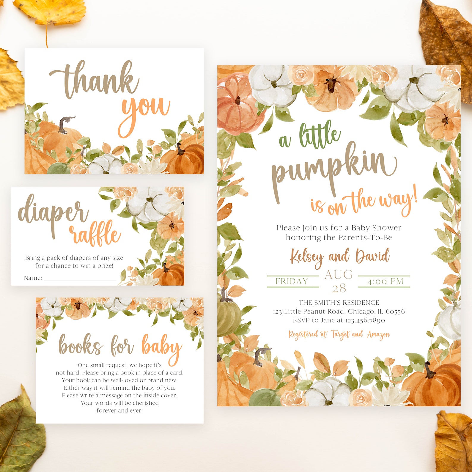 Fall Baby Shower Invite Bundle: Little Pumpkin with Pumpkin Border