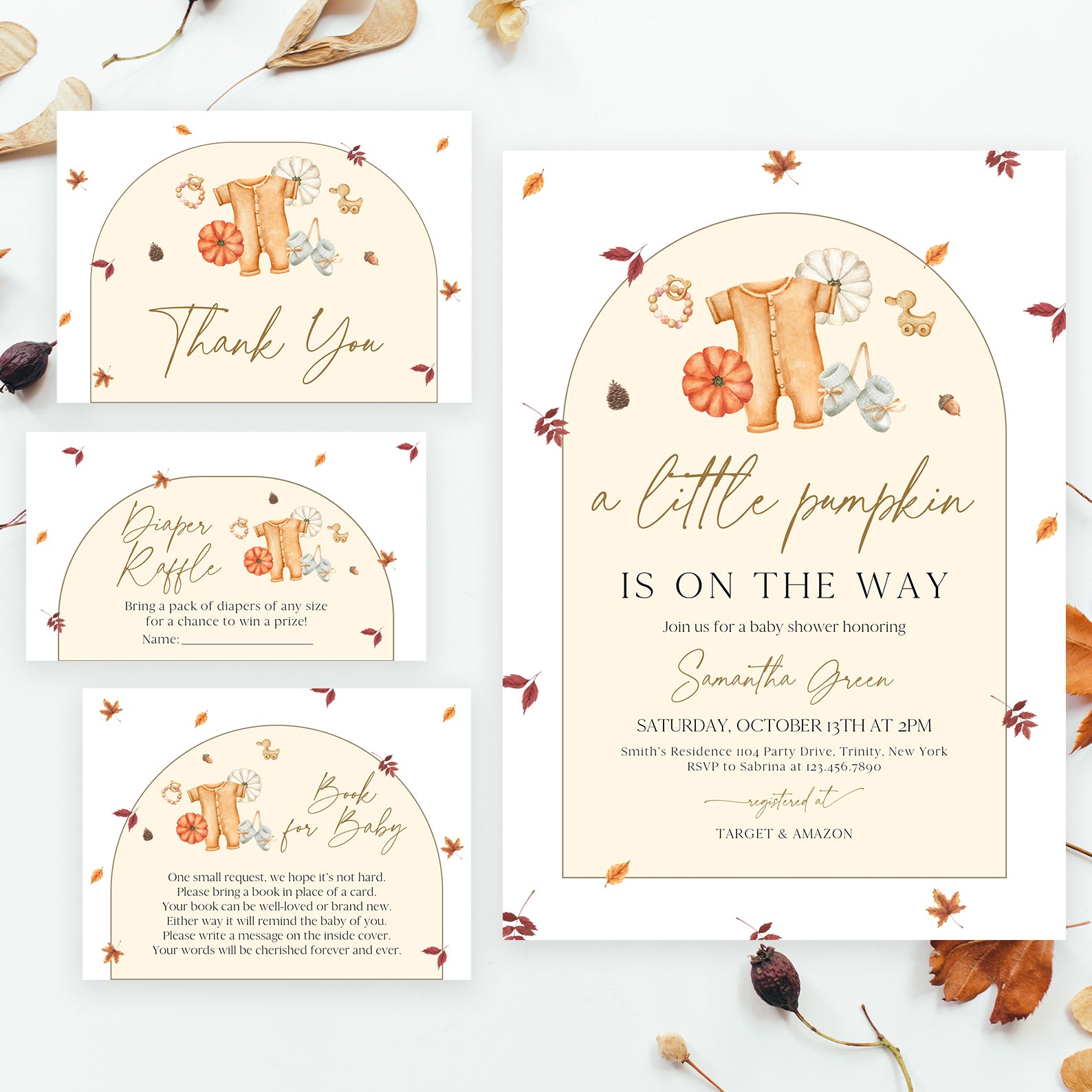 Fall Baby Shower Invite Bundle: Orange Baby Suit & Pumpkins