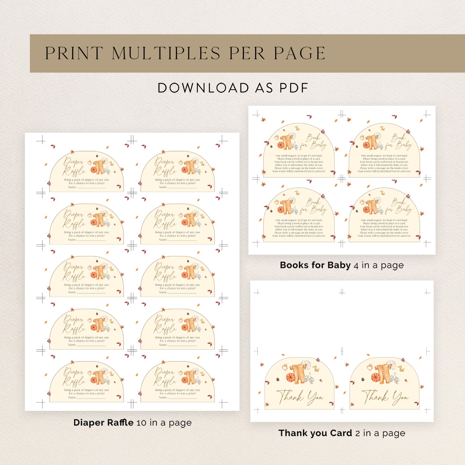 Celebrate your little one with this cozy fall-themed baby shower bundle! Designed with a soft pastel orange arch, falling leaves, and sweet baby items like an orange baby suit, ribbon-tied shoes, and pumpkins, this set captures the charm of autumn. Includes an invitation, mobile version, diaper raffle, books for baby, and thank you card. All editable for easy personalization and perfect for a heartwarming seasonal gathering.