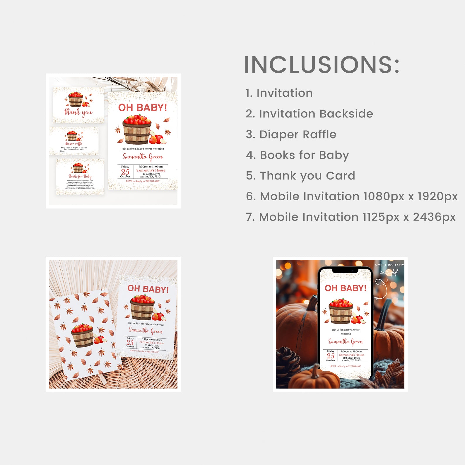 - Purchase this Fall Baby Shower Mega Bundle: Fresh Apples, Autumn Leaves & Gold template