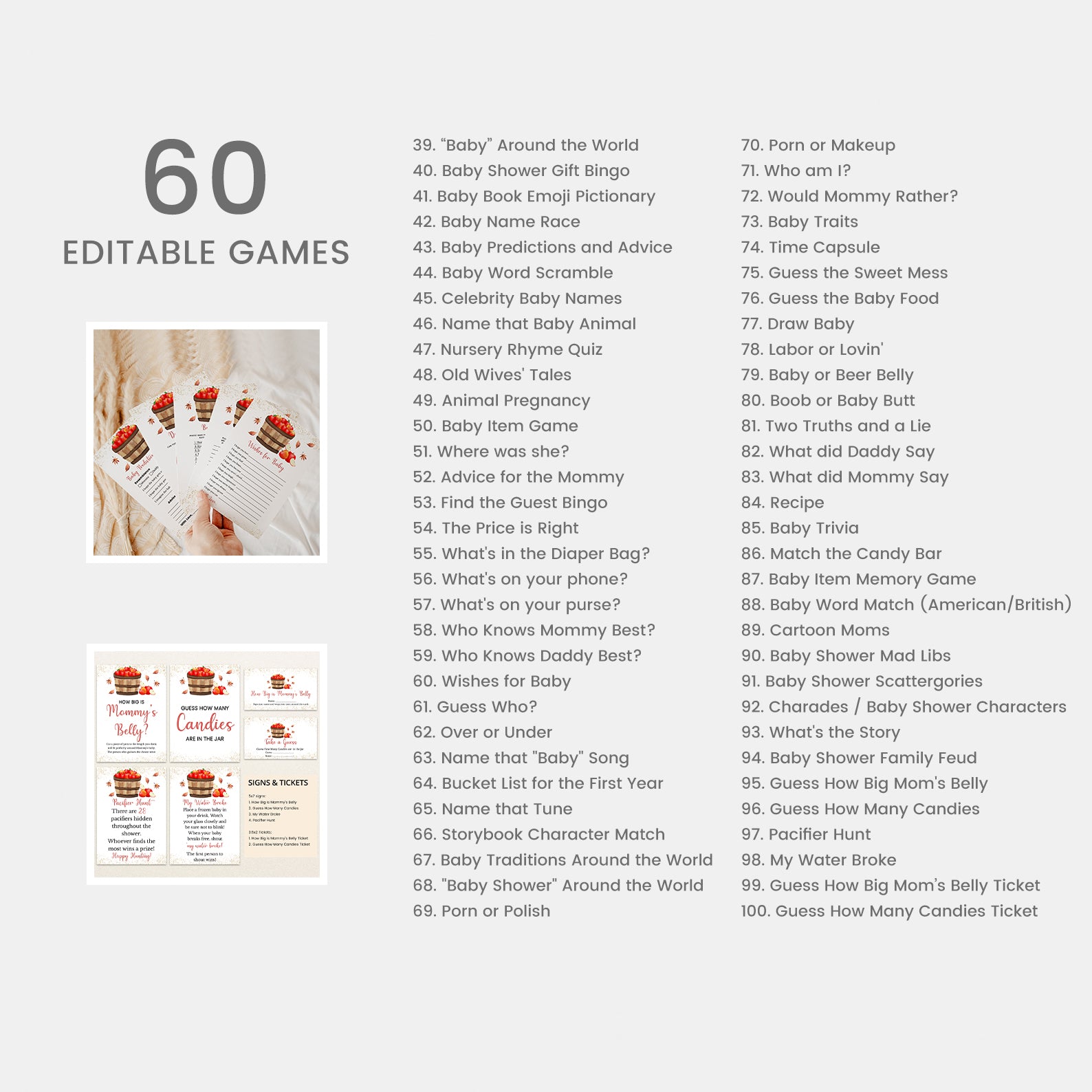Welcome your little one in style with this comprehensive mega bundle featuring 100 editable fall-themed baby shower items! From invitations and thank you cards to diaper raffles, table signs, favor tags, and festive food and drink labels, each piece showcases warm autumn motifs like rustic wood barrels, fresh apples, and colorful fall leaves highlighted with elegant gold accents. Perfect for creating a cozy, memorable celebration filled with seasonal charm and heartfelt joy.