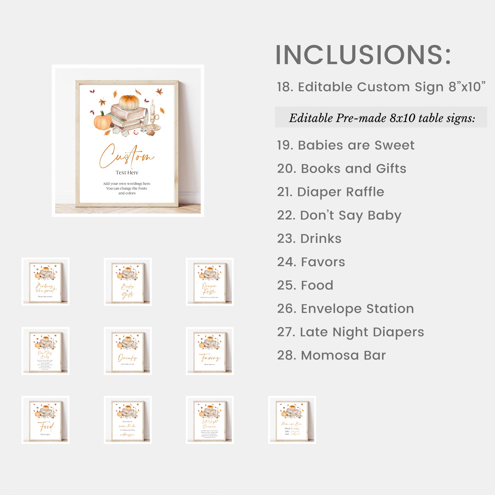 - Purchase this Fall Baby Shower Mega Bundle: Pumpkin & Books Autumn Theme template