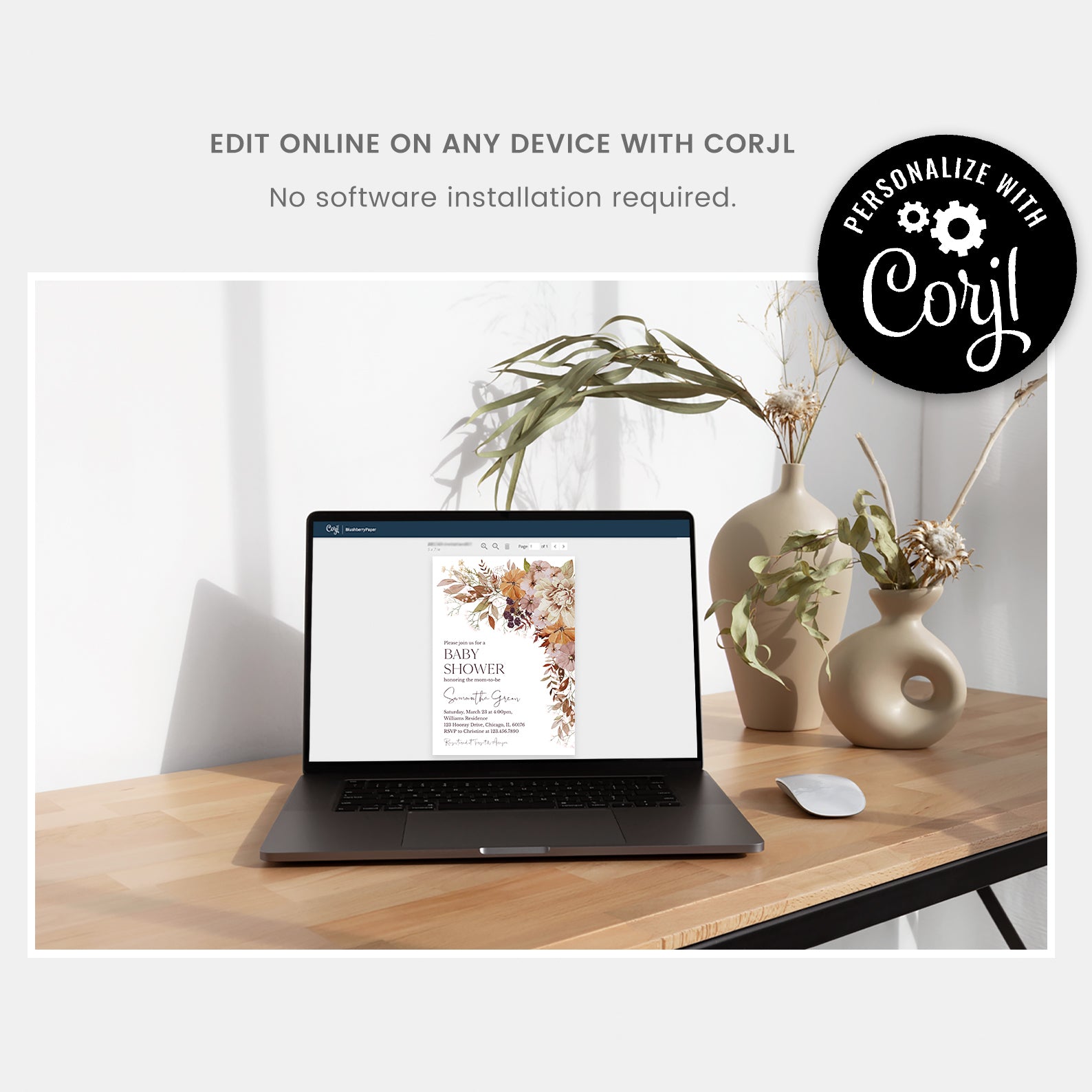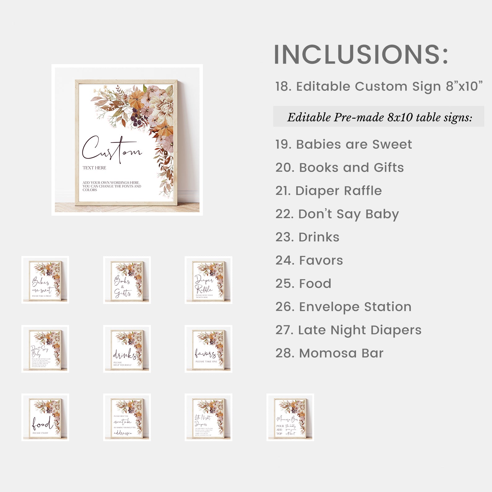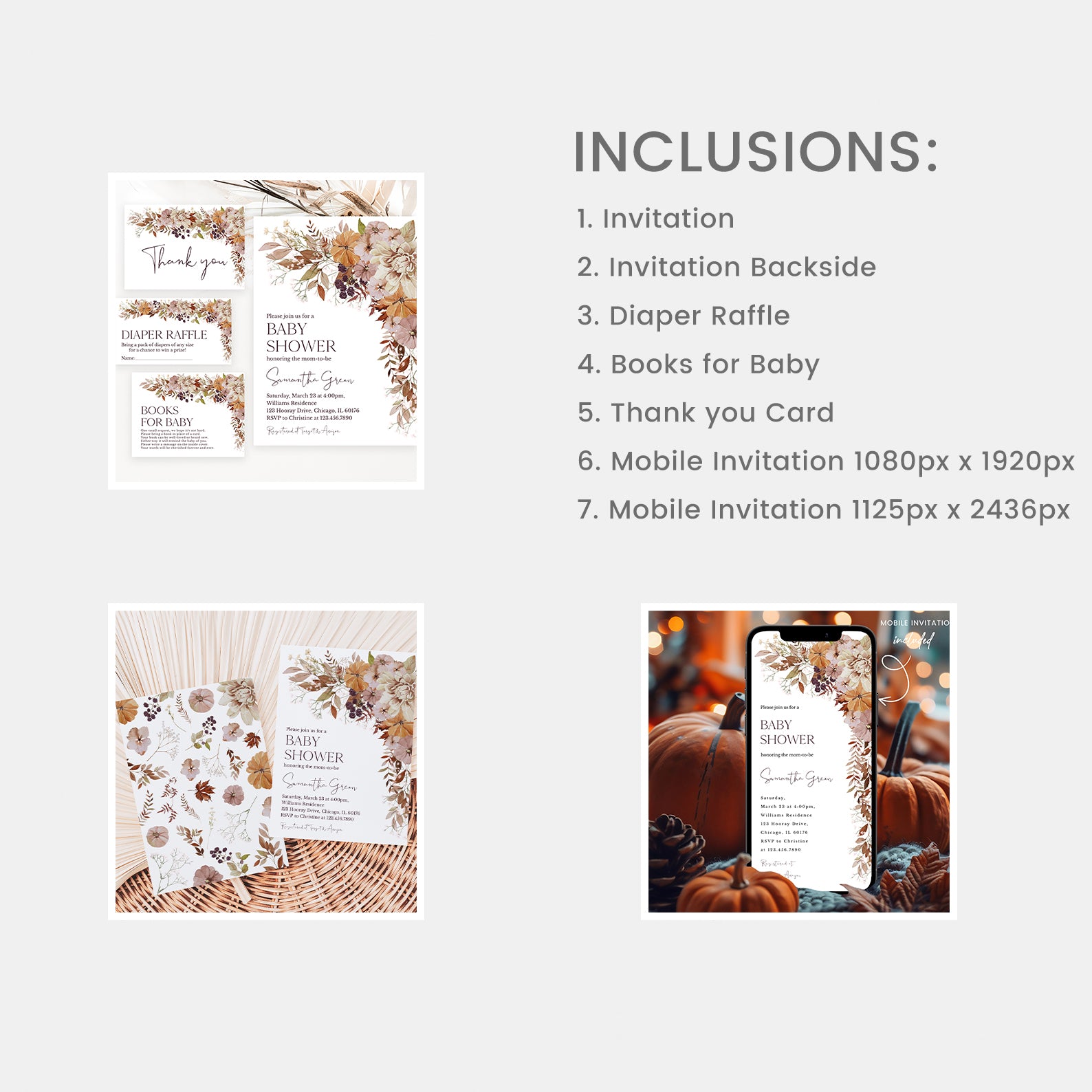- Purchase this Fall Baby Shower Mega Bundle with Dried Leaves, Flowers & Pumpkins template