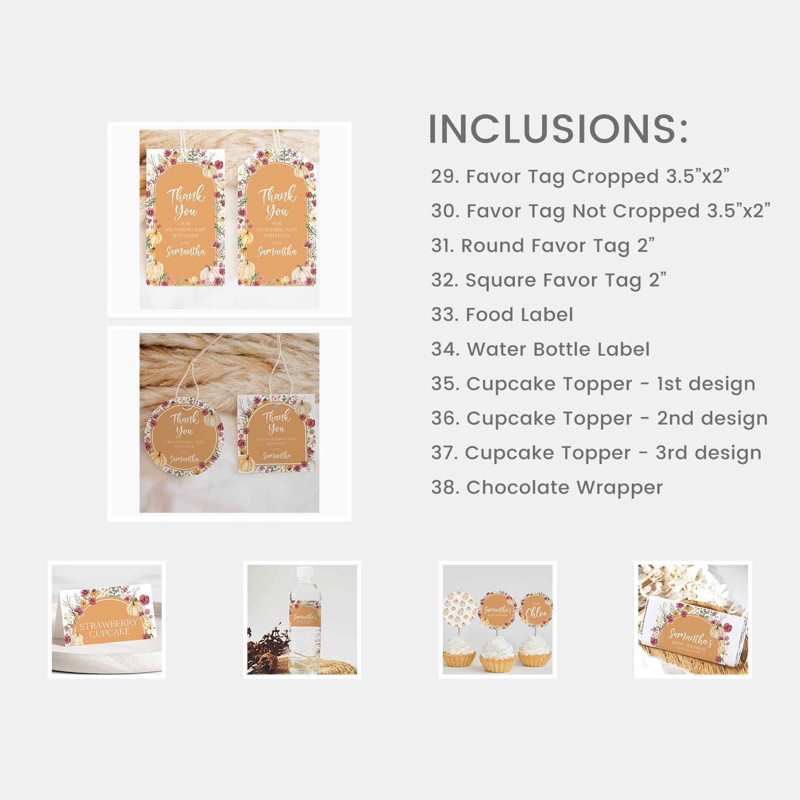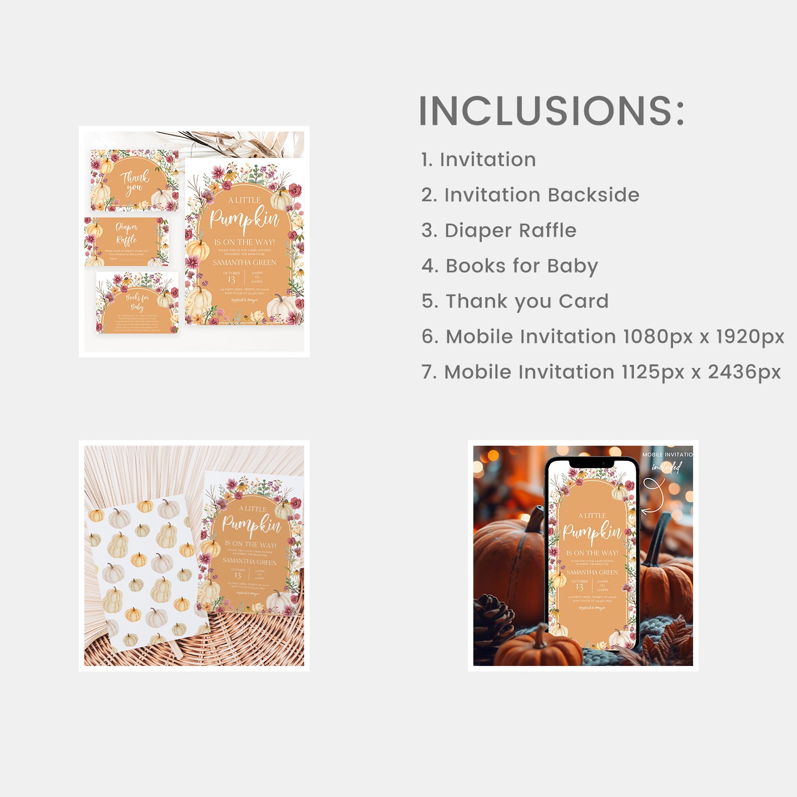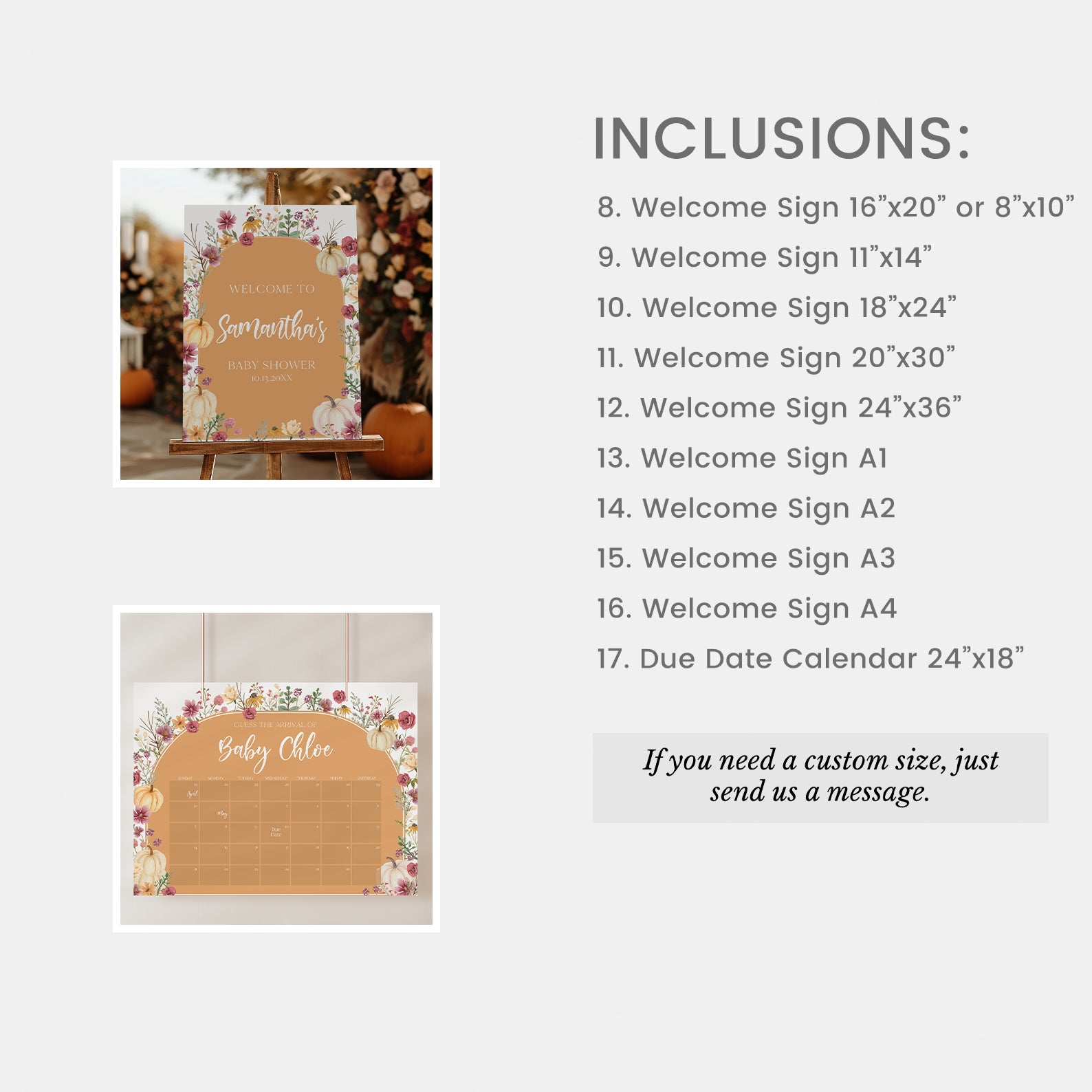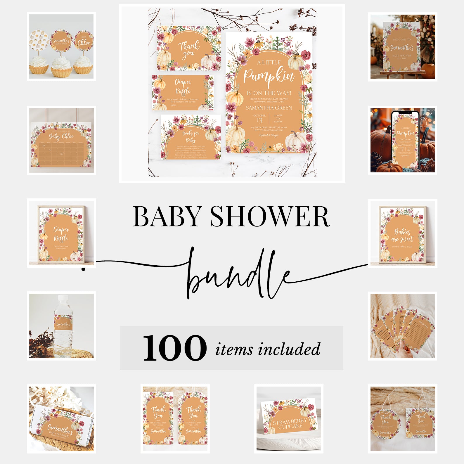 - Purchase this Fall Baby Shower Orange Mega Bundle: Pumpkin & Wildflowers Arch template