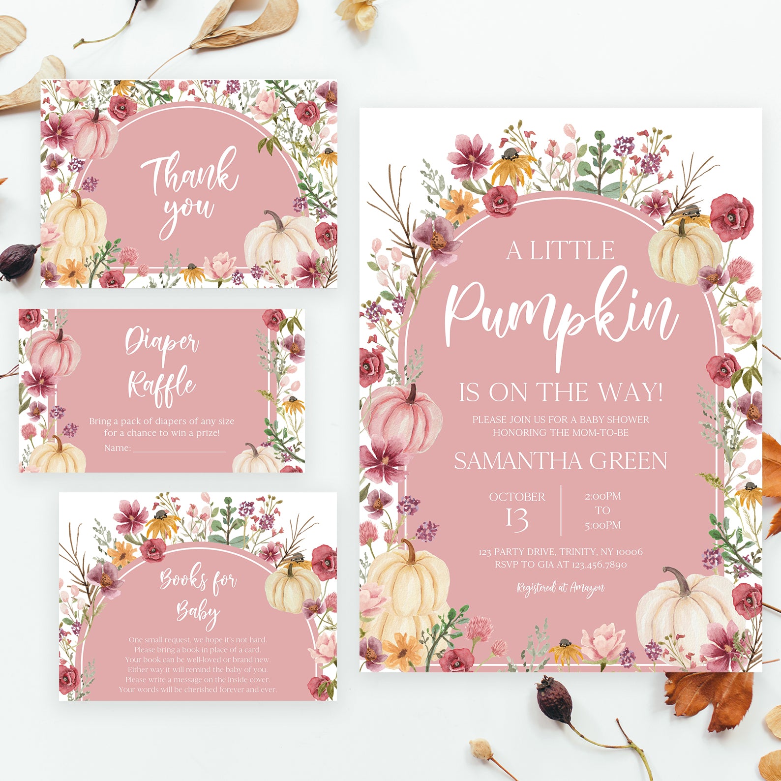 Fall Baby Shower Pink Invite Bundle: Pumpkin & Wildflowers Arch