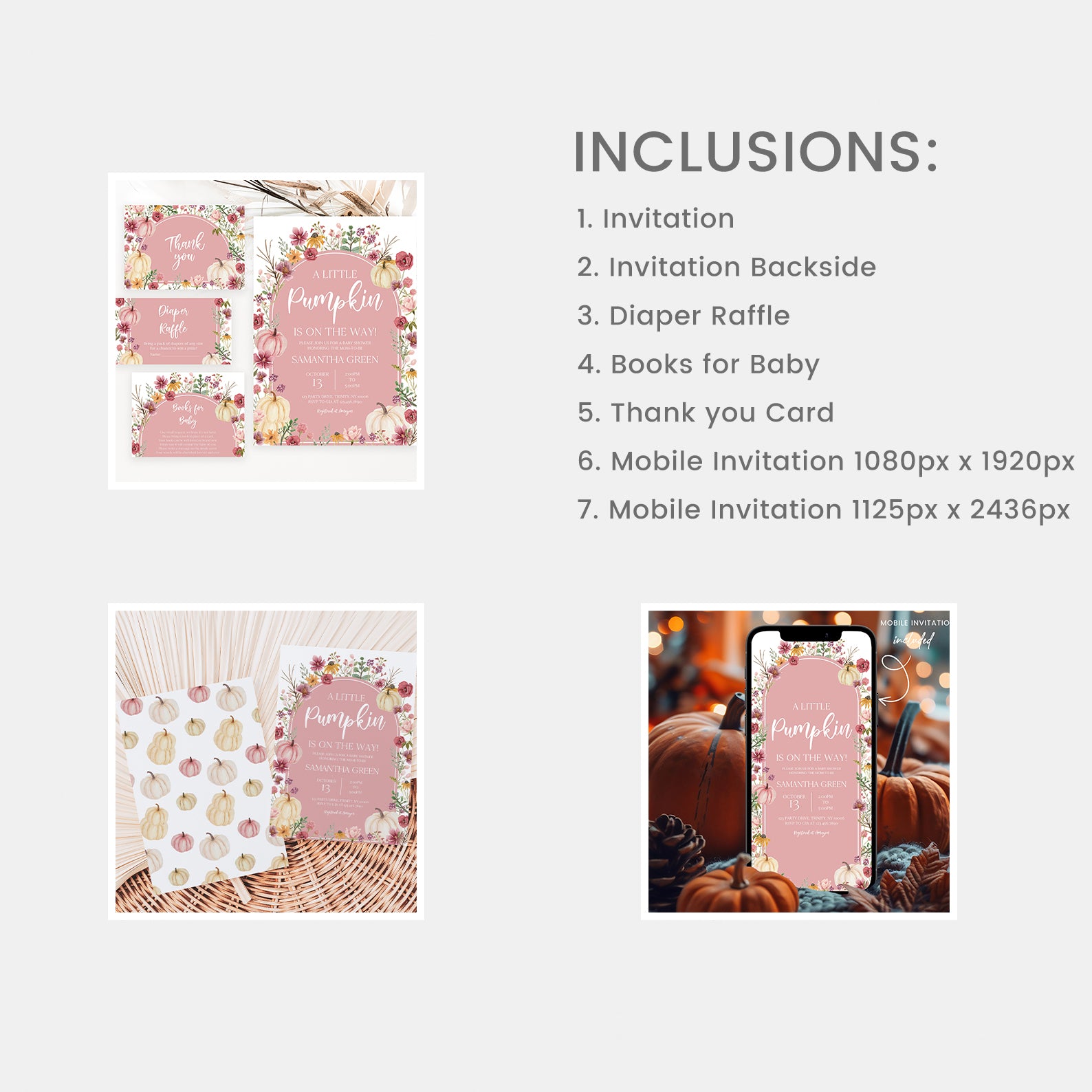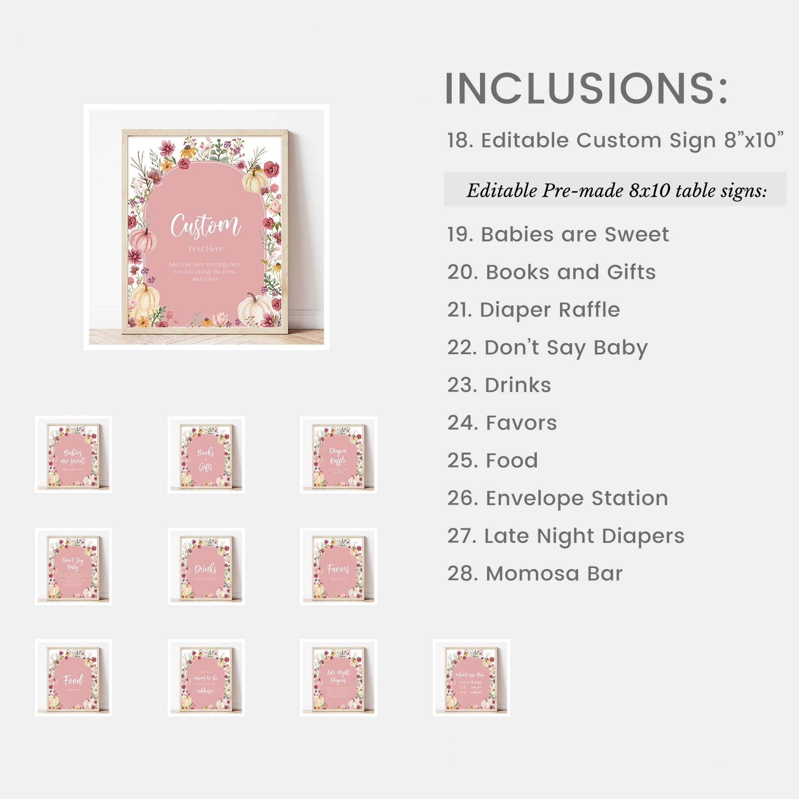 - Purchase this Fall Baby Shower Pink Mega Bundle: Pumpkin & Wildflowers Arch template