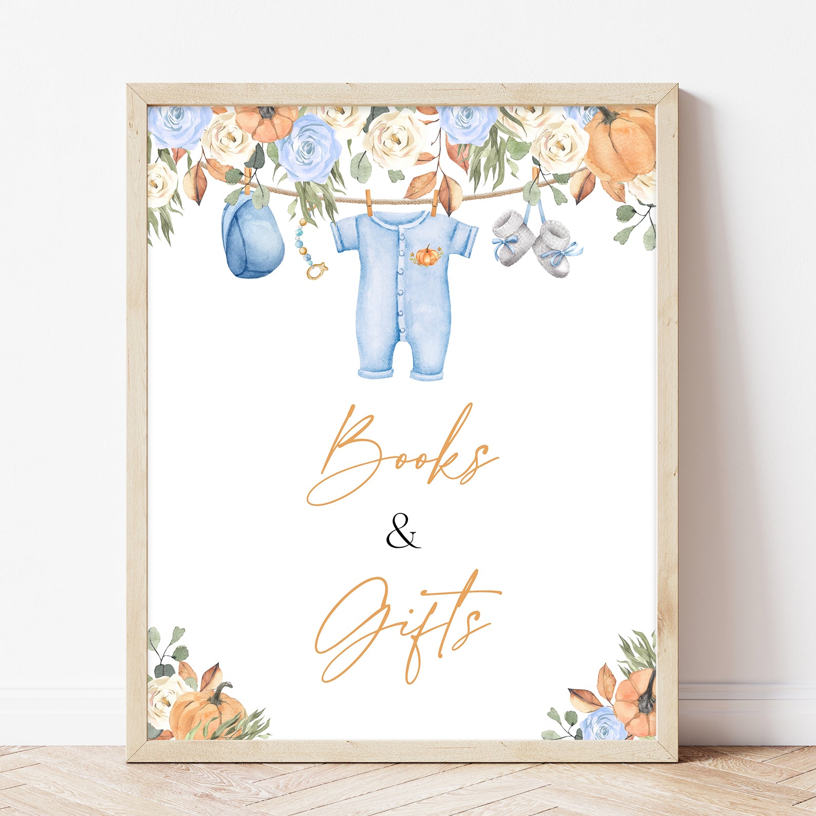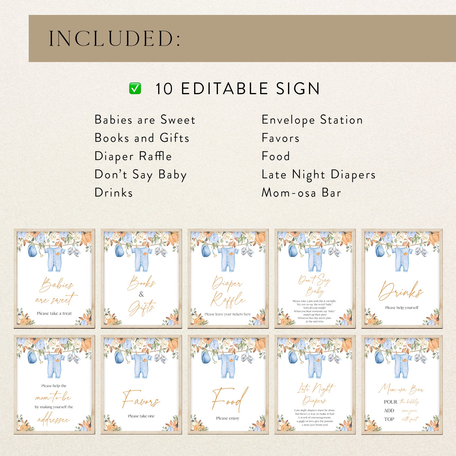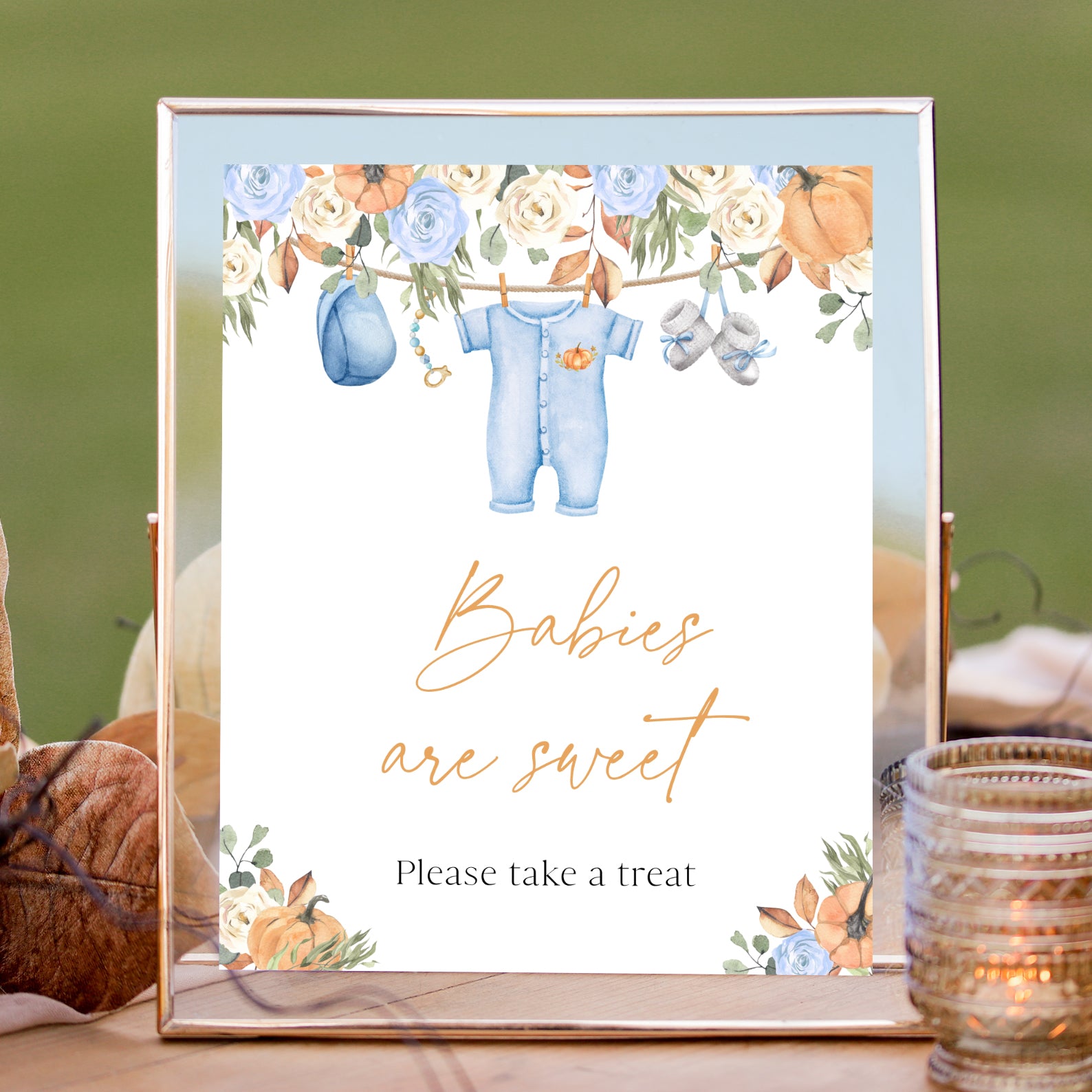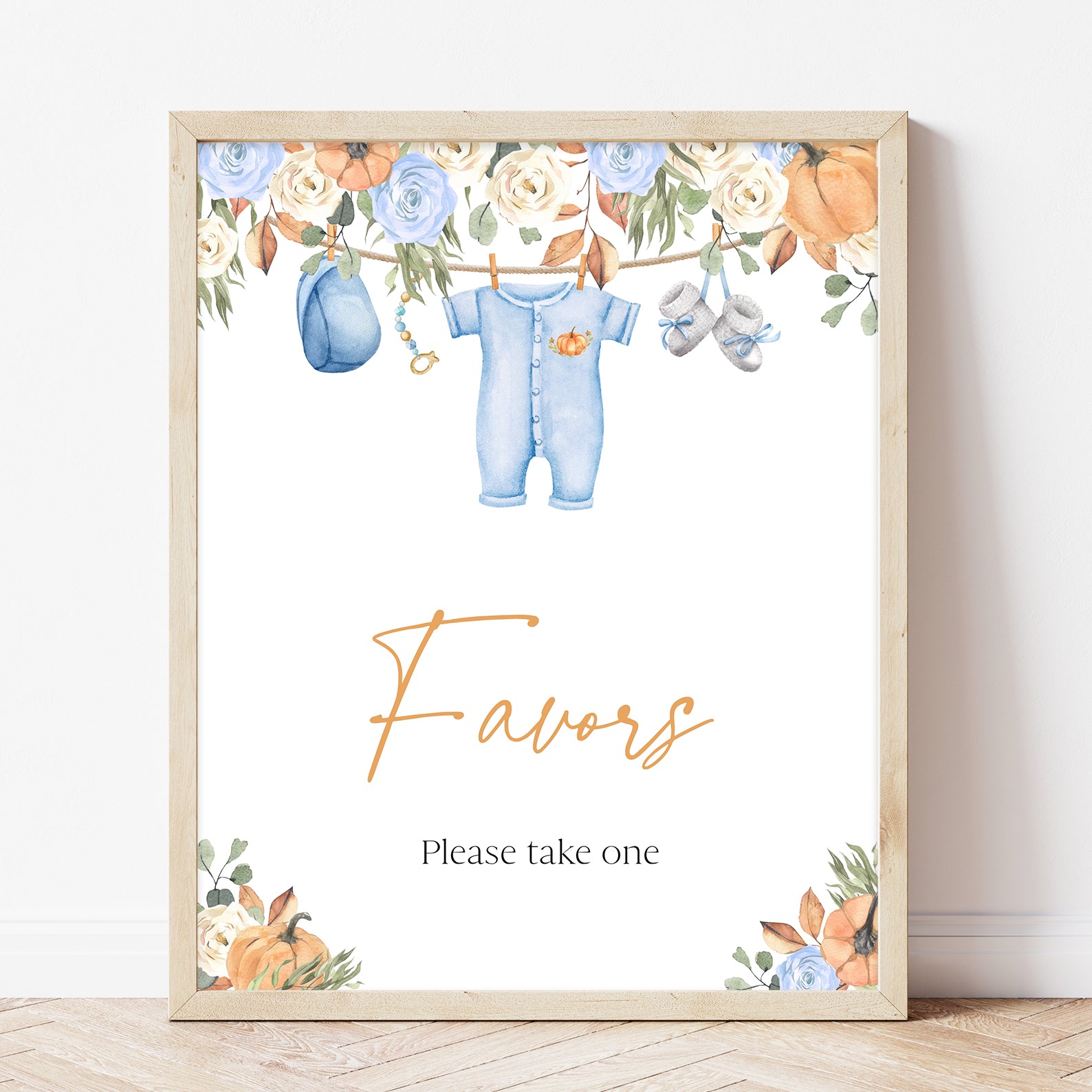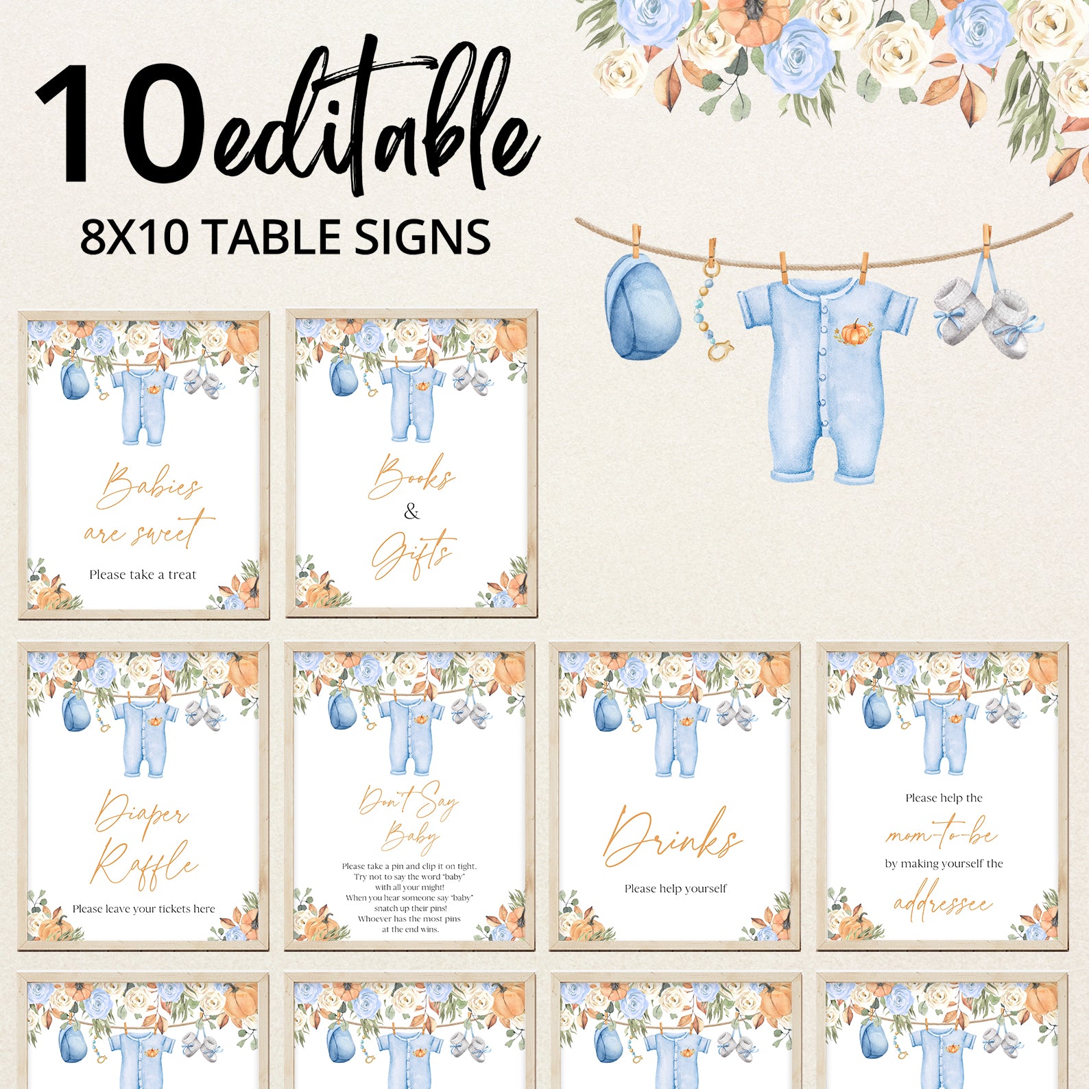 - Purchase this Fall Baby Shower Table Sign: Blue Baby Suit & Autumn Florals template