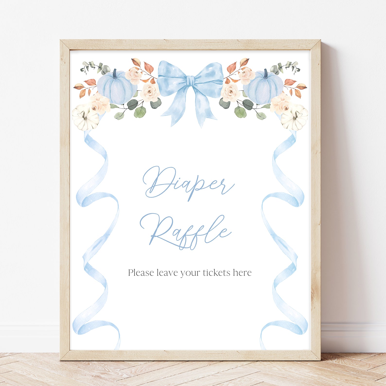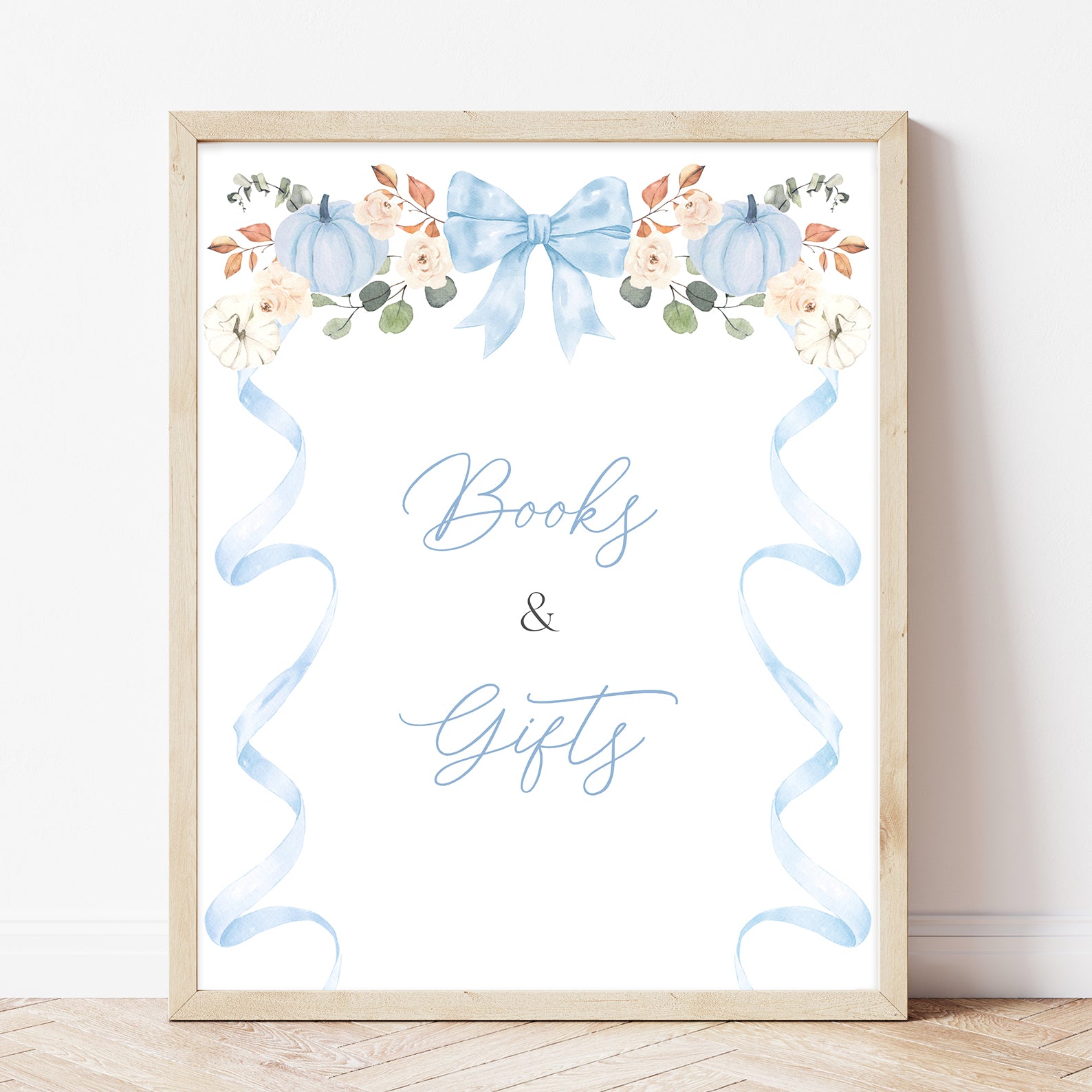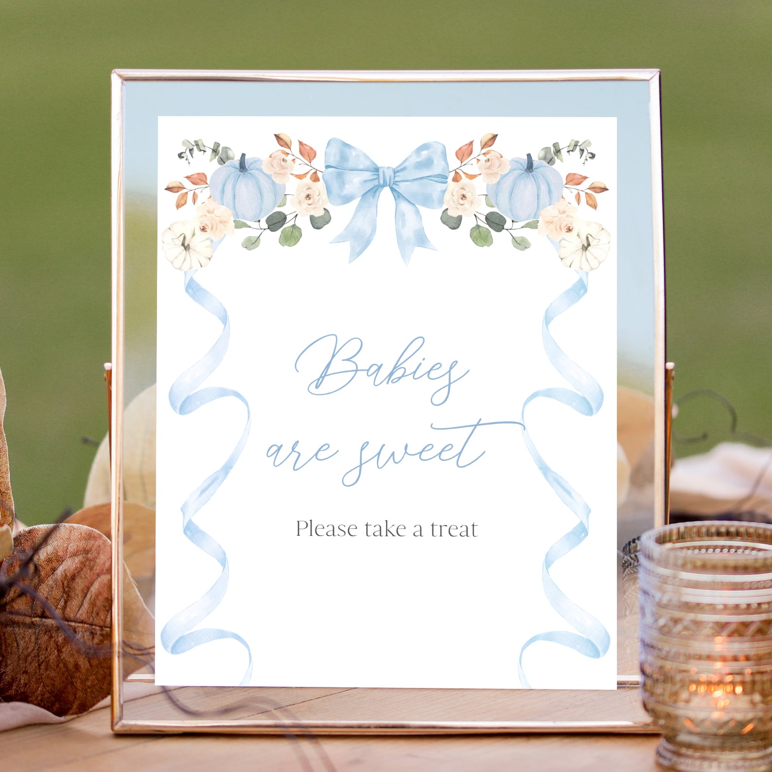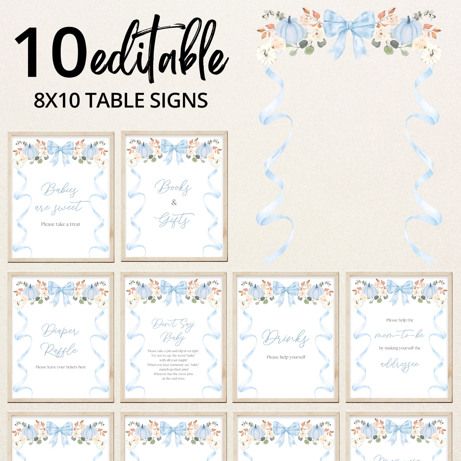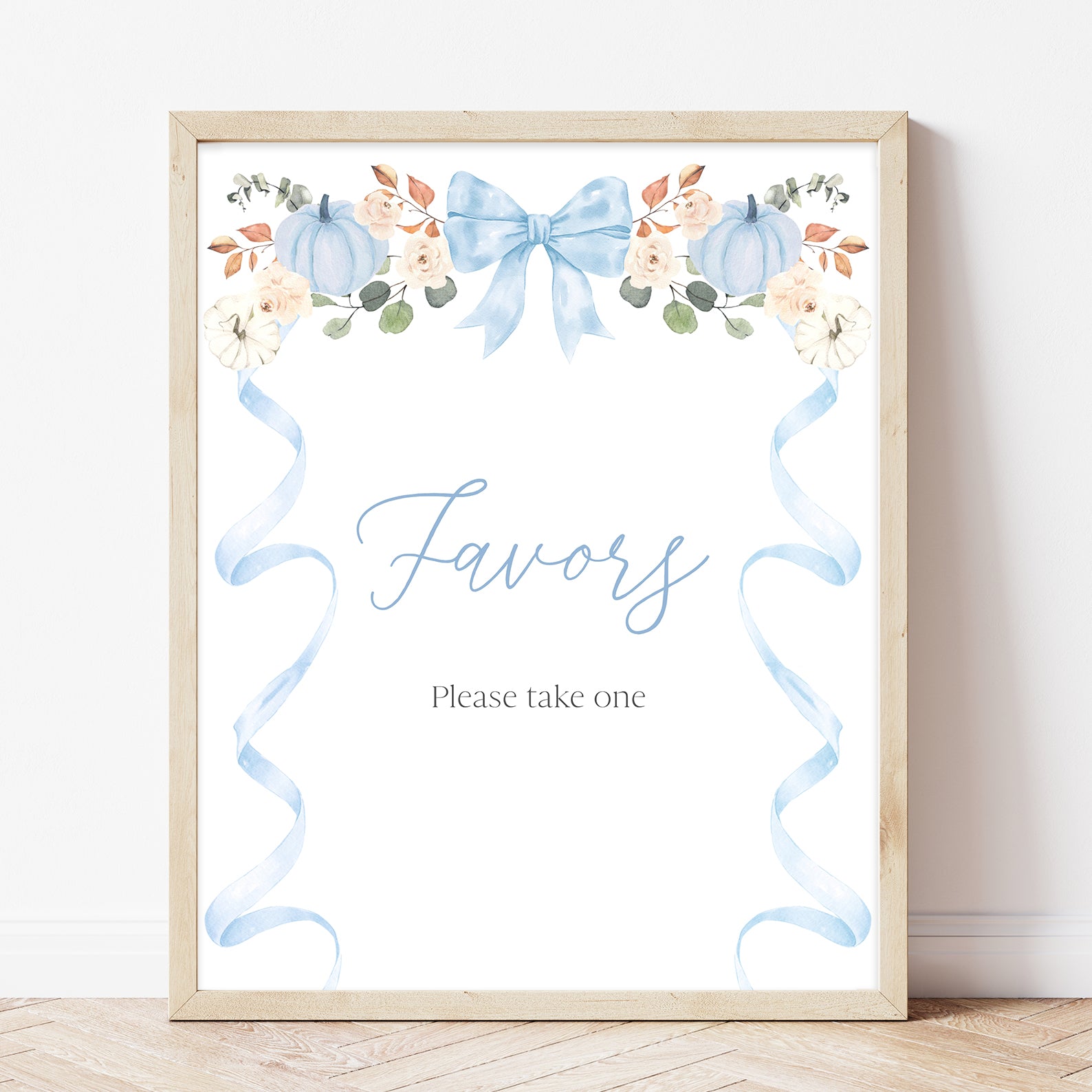 - Purchase this Fall Baby Shower Table Sign: Blue Ribbon Frame with Pumpkin & Florals template