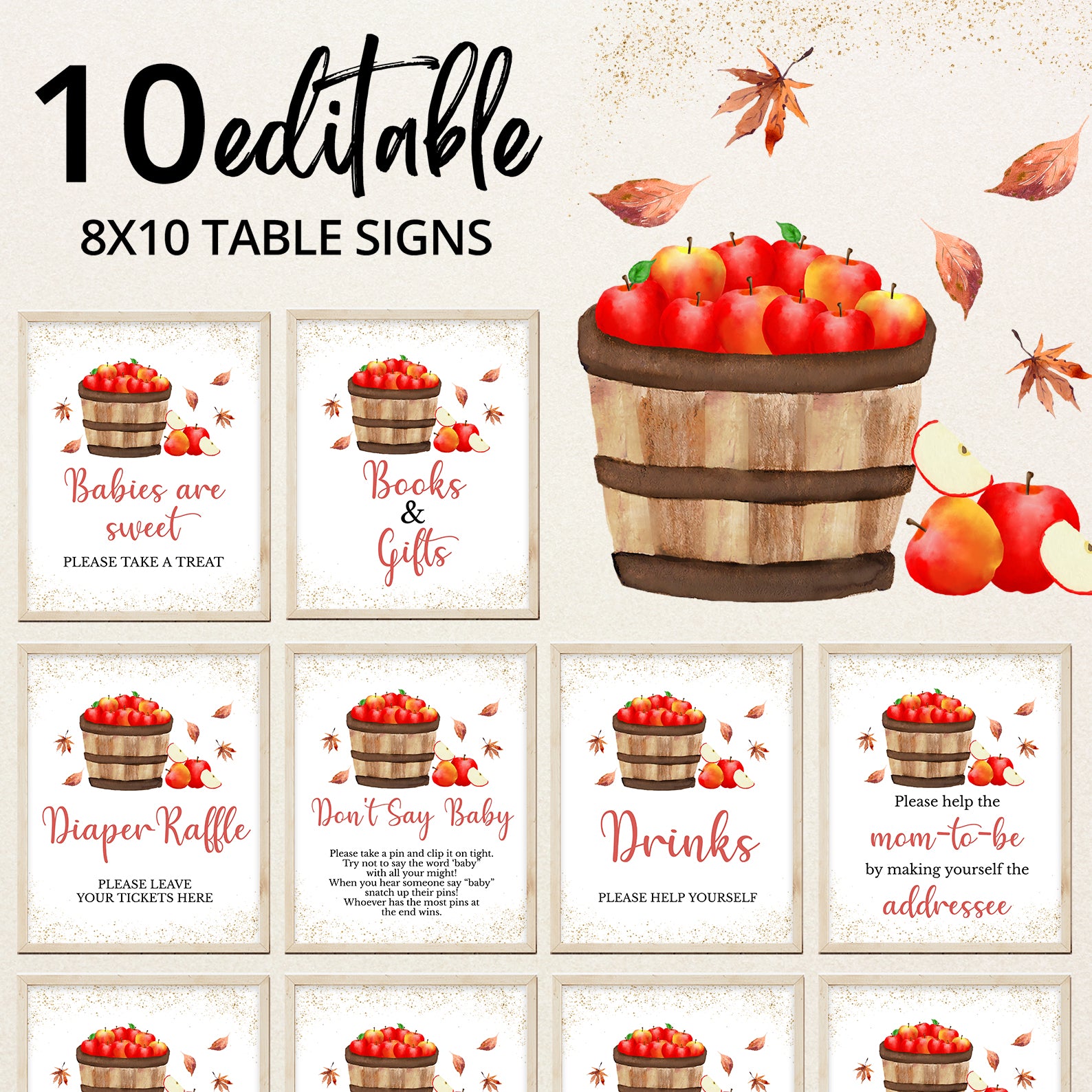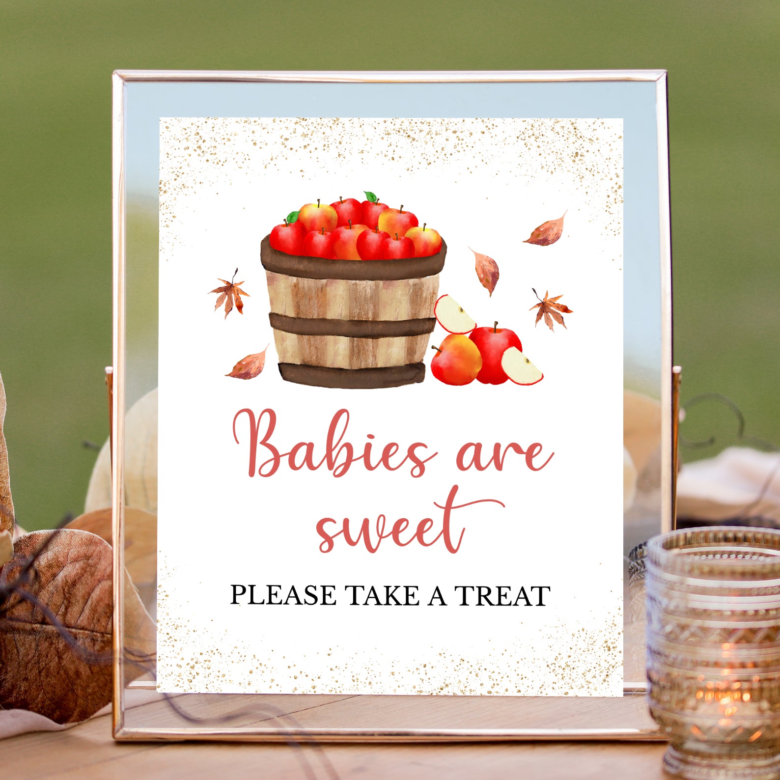 - Purchase this Fall Baby Shower Table Sign: Fresh Apples, Autumn Leaves & Gold template