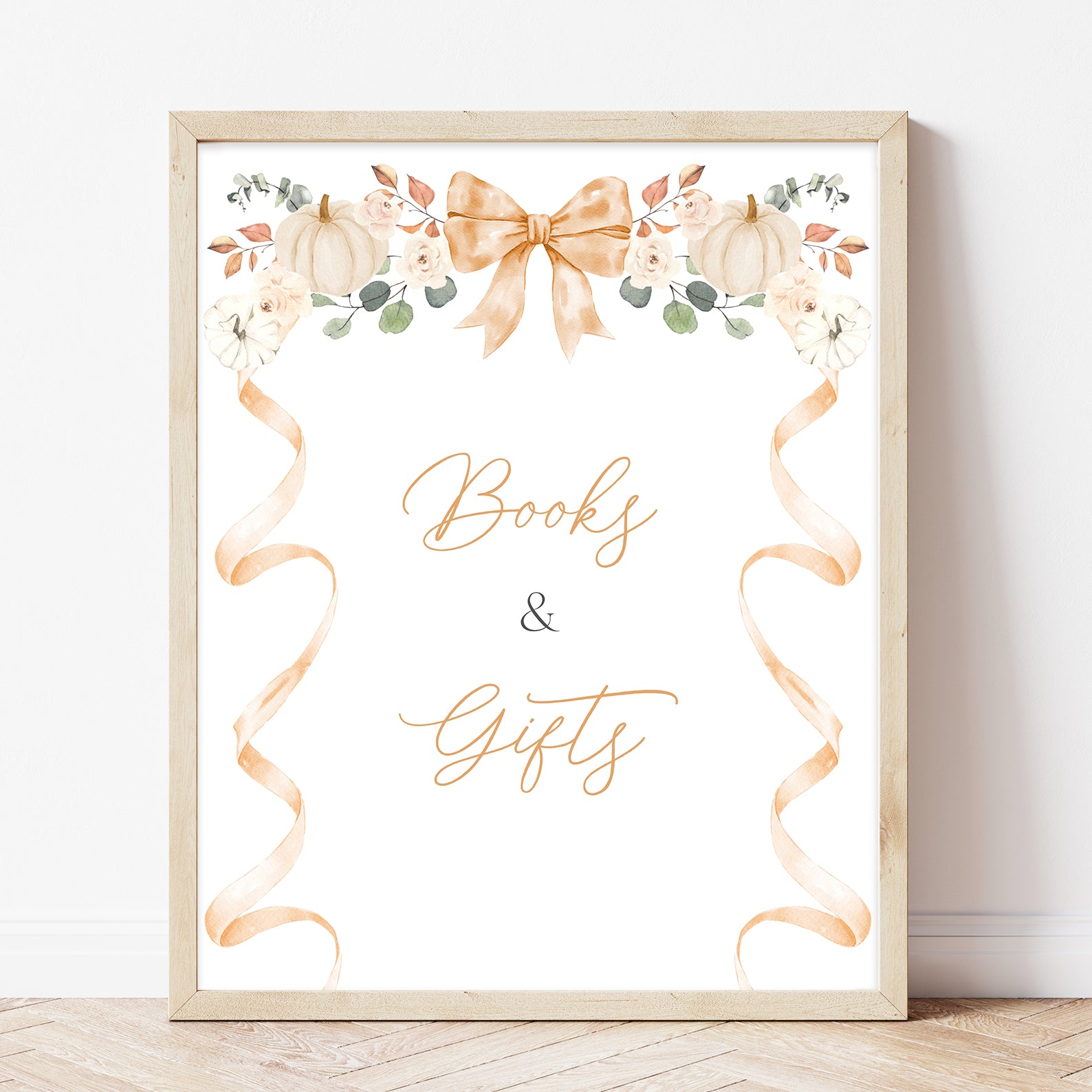- Purchase this Fall Baby Shower Table Sign: Orange Ribbon Frame with Pumpkin & Florals template