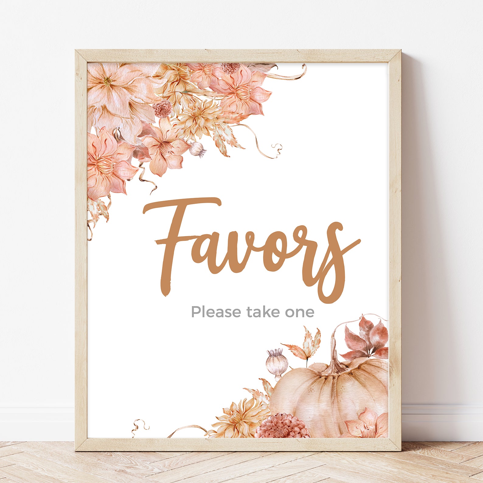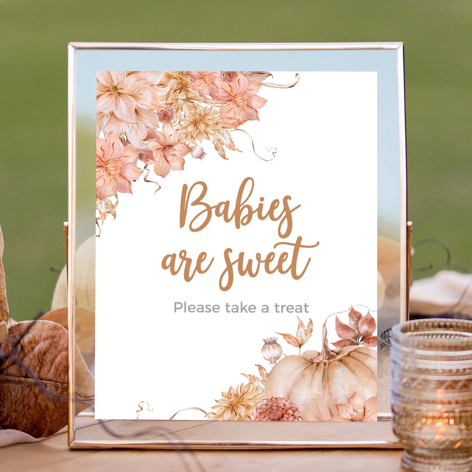 - Purchase this Fall Baby Shower Table Sign: Pumpkin with Floral Border Design template