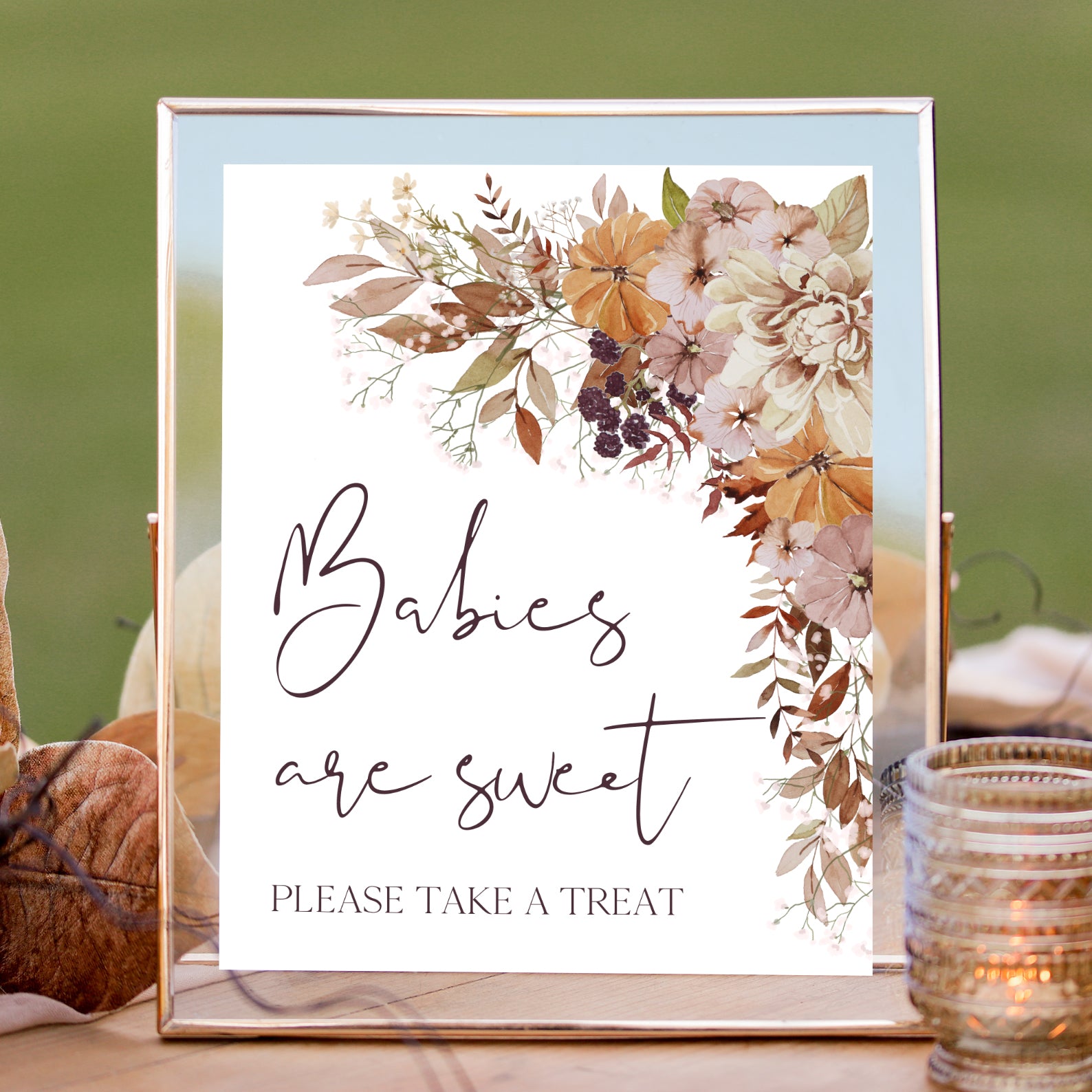- Purchase this Fall Baby Shower Table Sign with Dried Leaves, Flowers & Pumpkins template