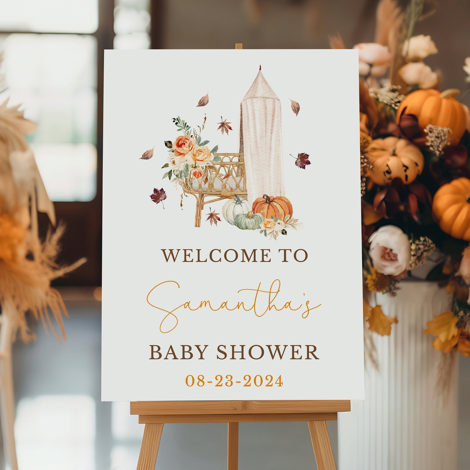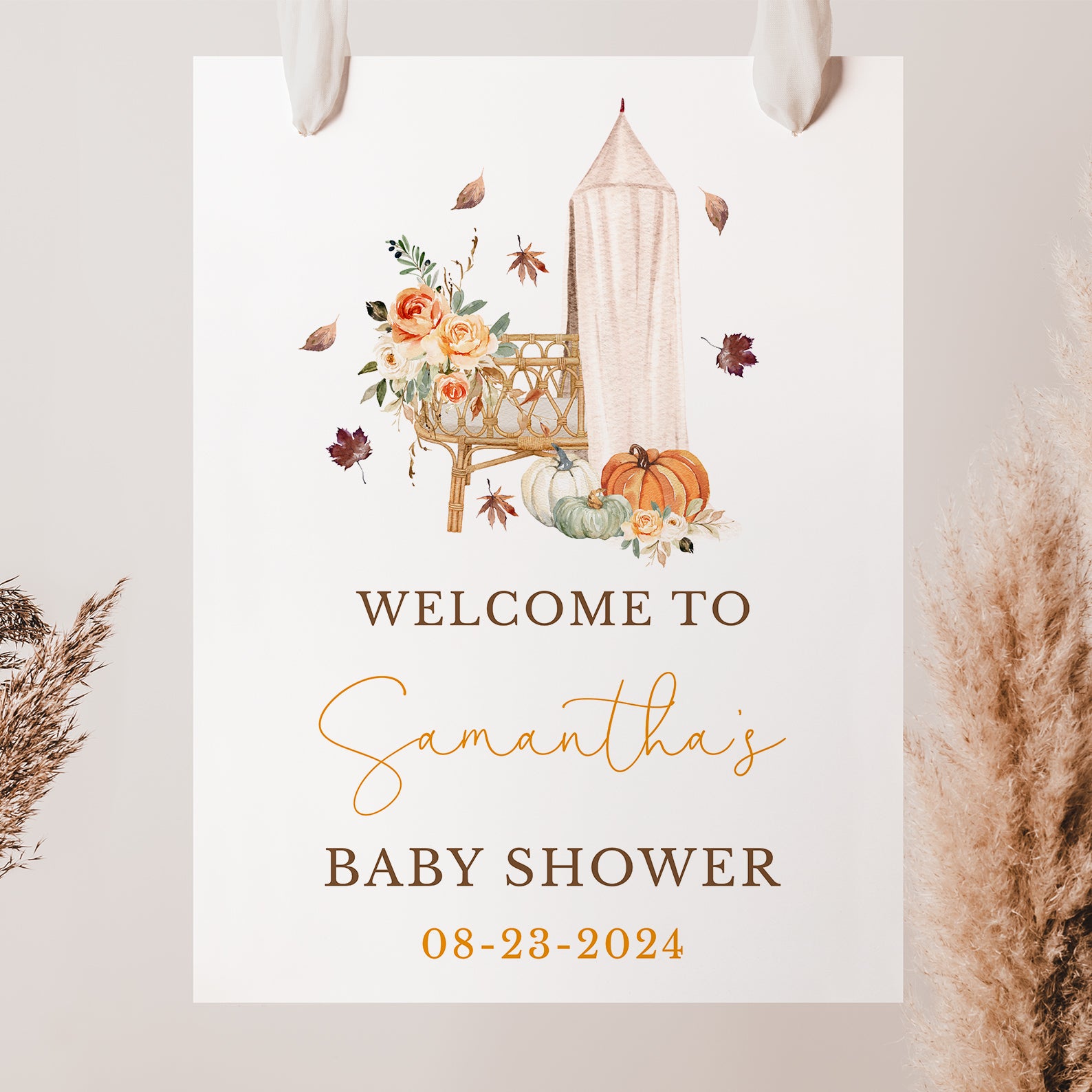 - Purchase this Falling in Love Fall Baby Shower Welcome Sign: Crib, Roses & Leaves template