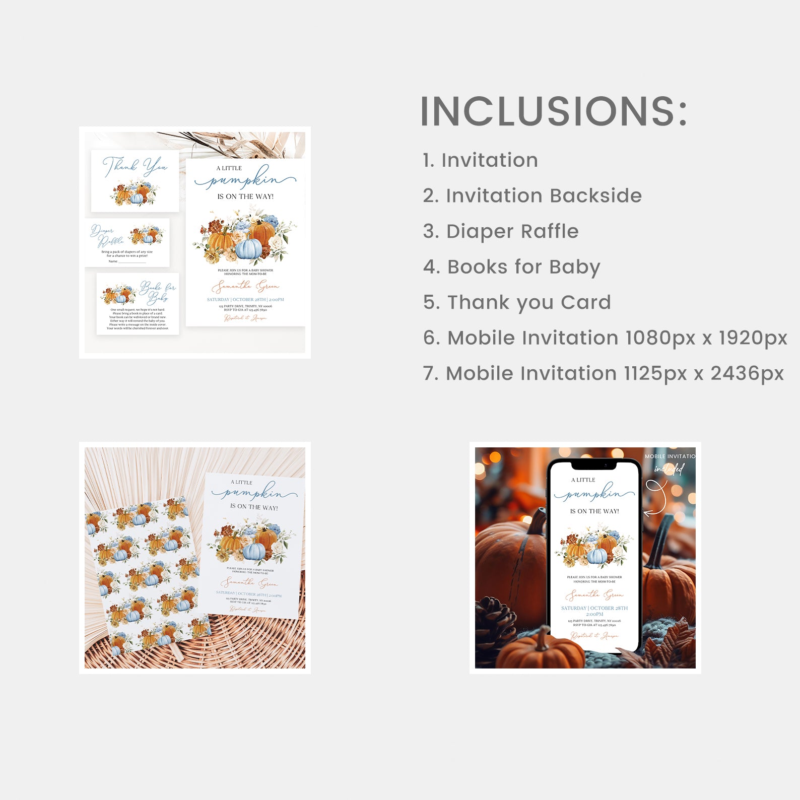 - Purchase this Floral & Pumpkin Mega Bundle: A Little Pumpkin Is on the Way template