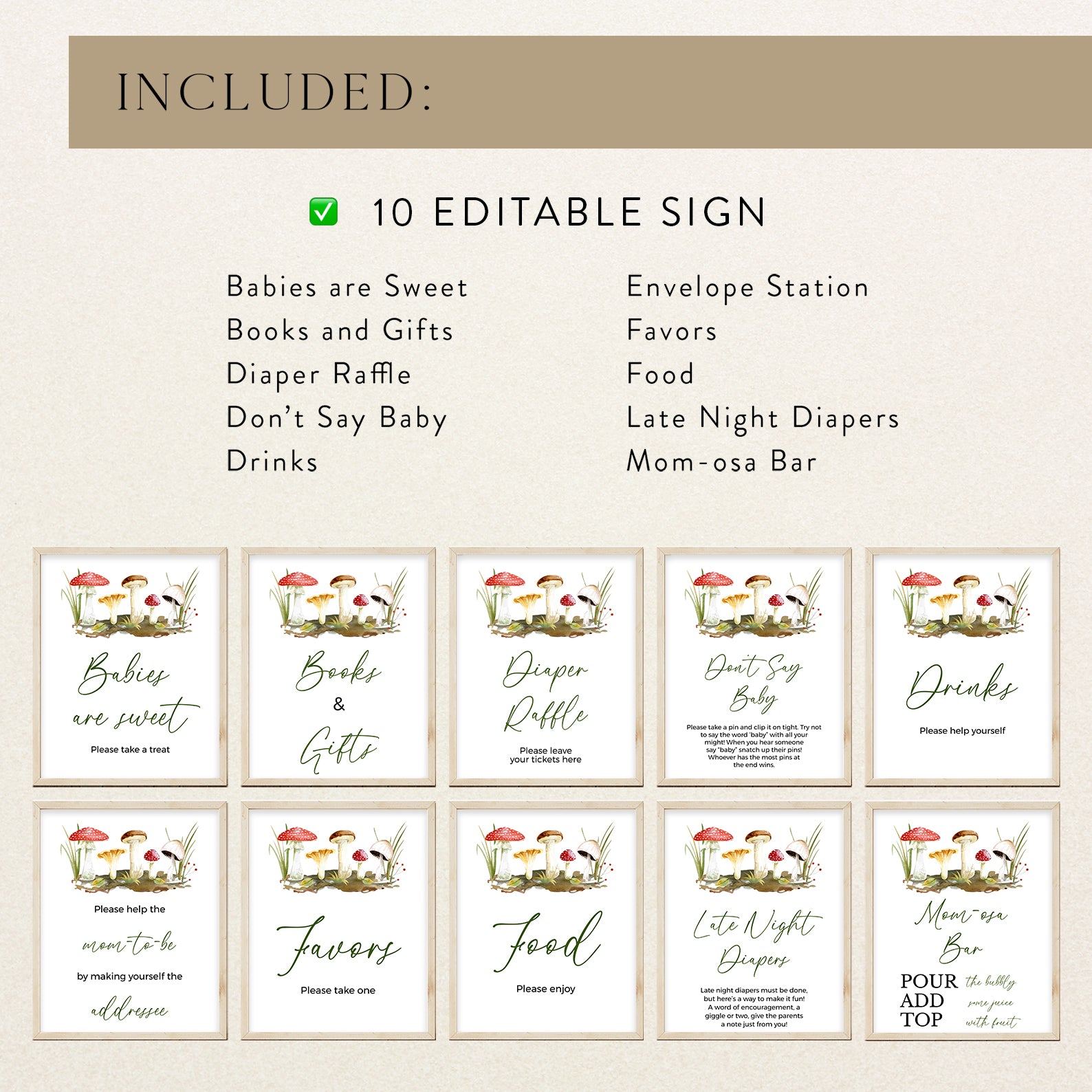 - Purchase this Green Fall Baby Shower Table Sign: Minimalist Mushrooms & Grass template