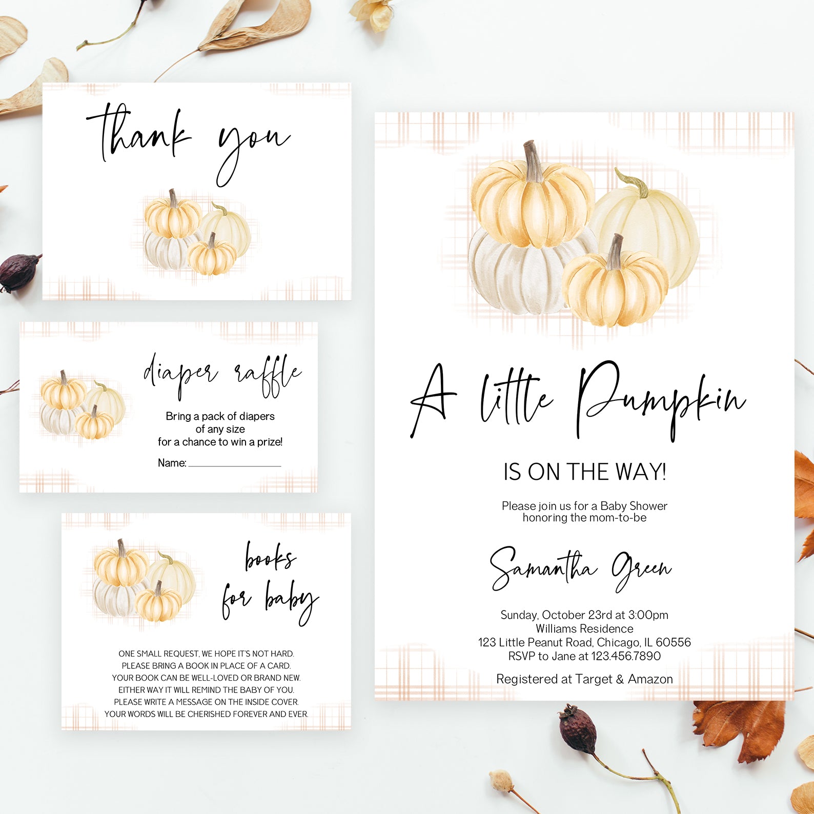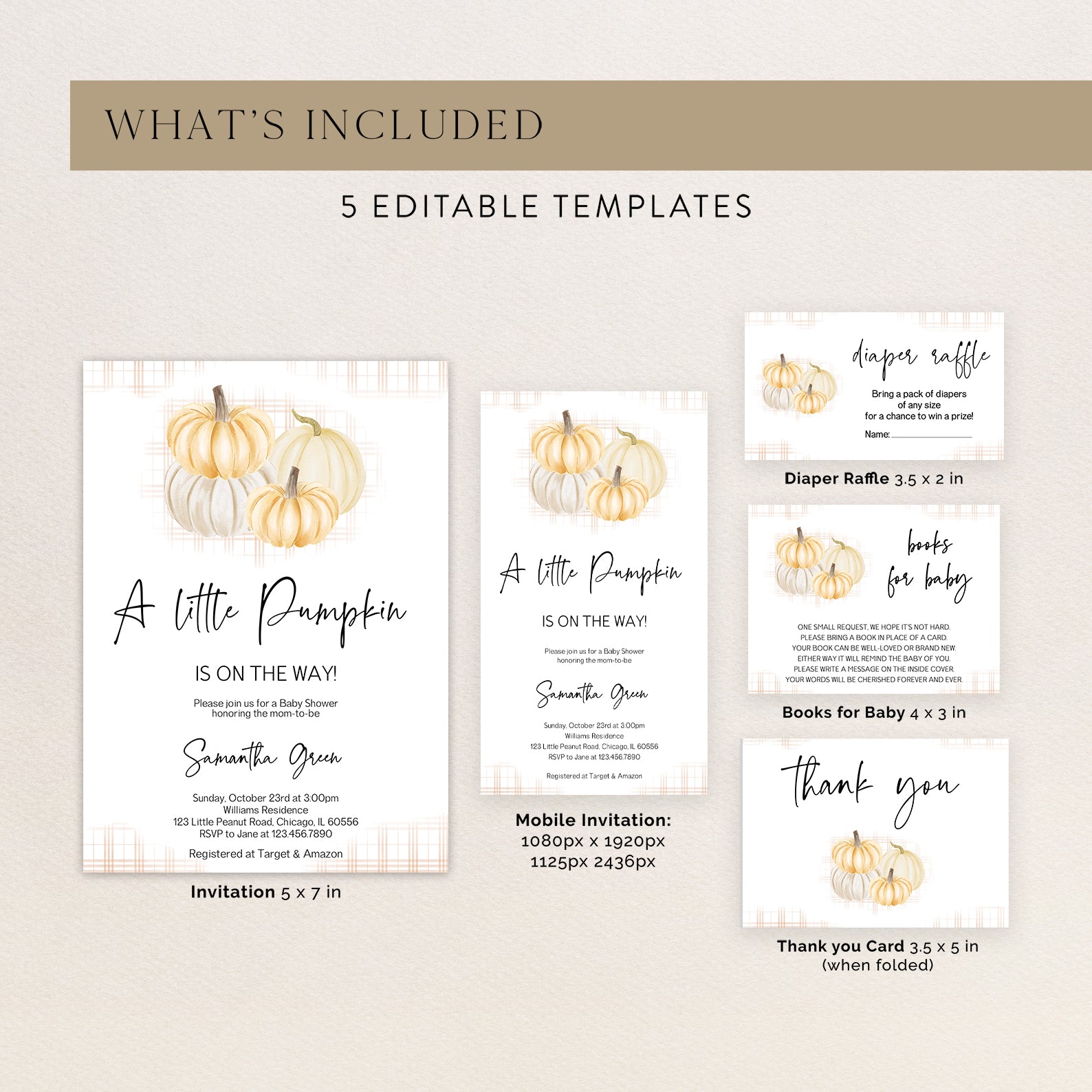 - Purchase this Little Pumpkin Baby Shower Invite Bundle: Orange & Green Pumpkins template