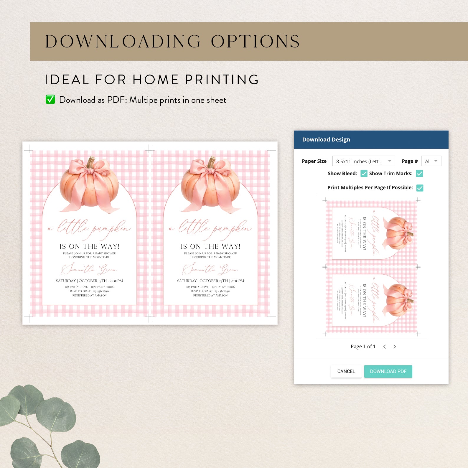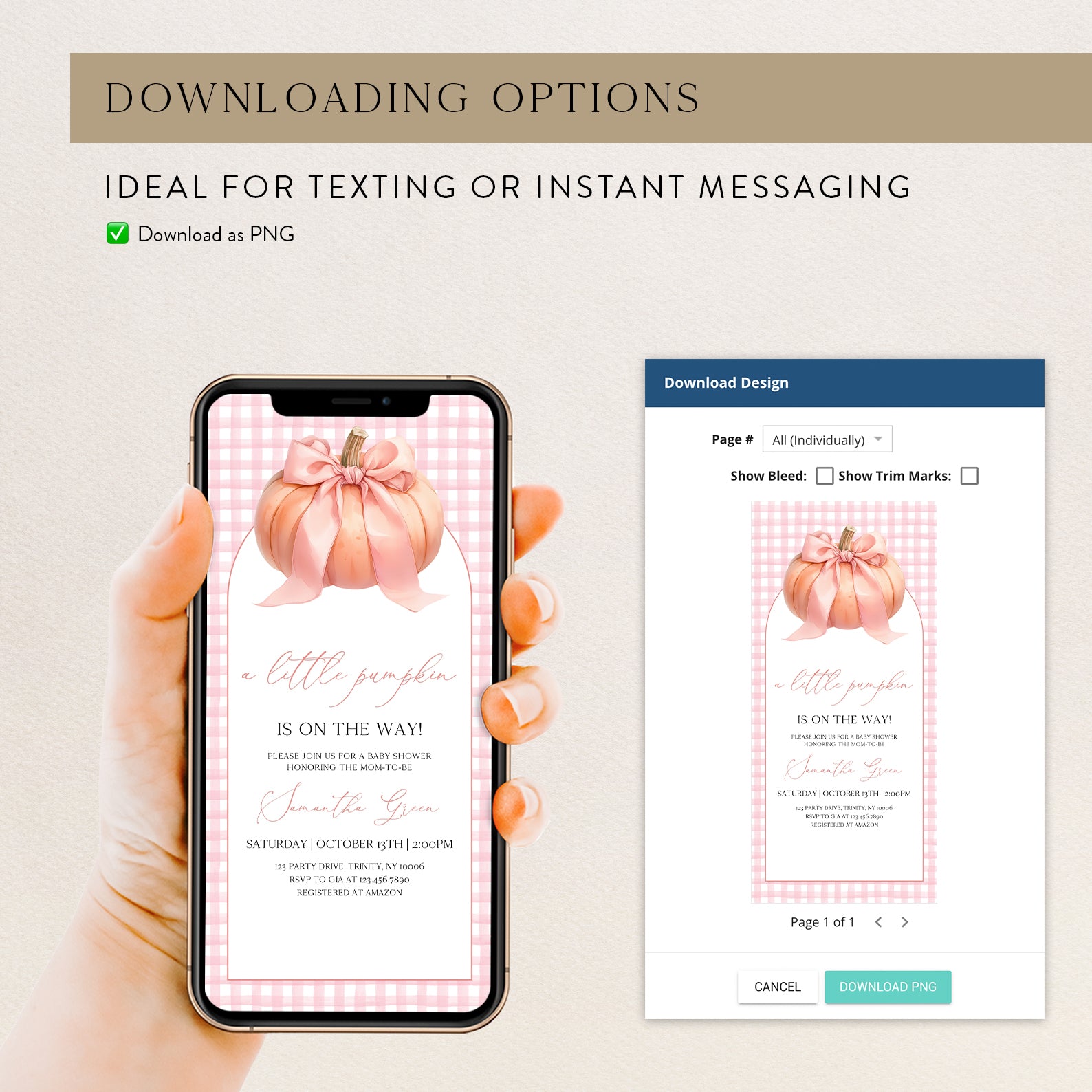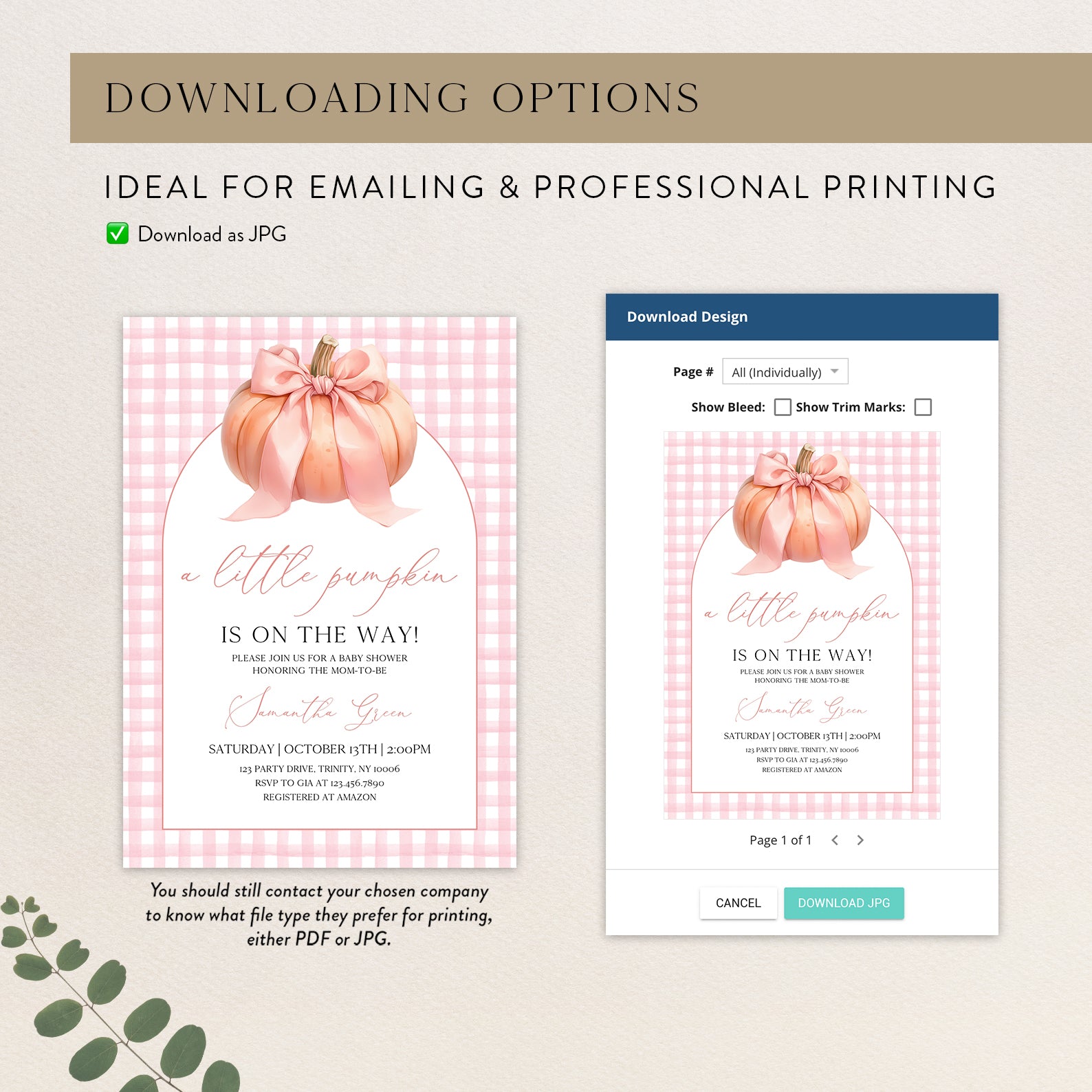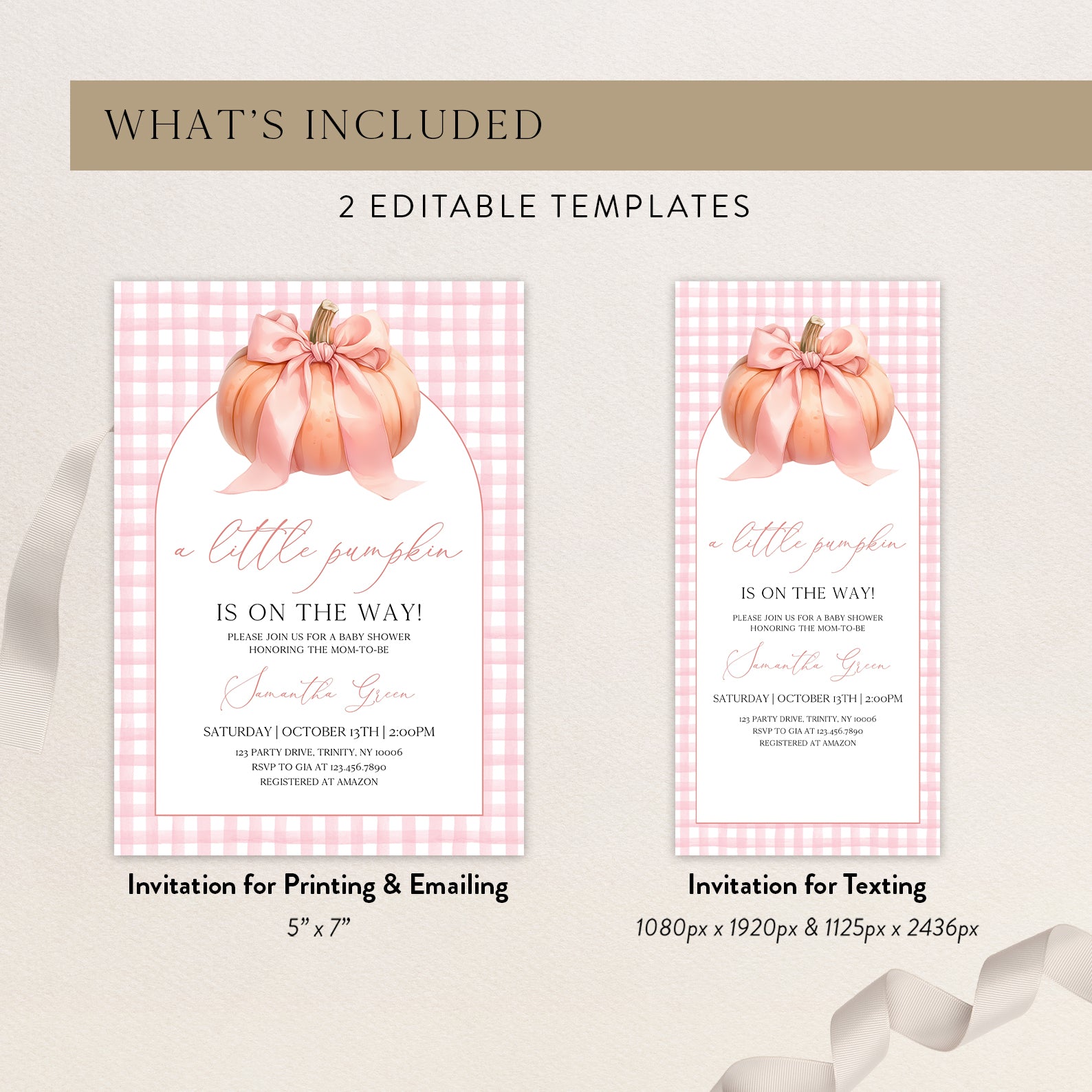 - Purchase this Little Pumpkin Baby Shower Invite: Pink Plaid & Peach Theme template