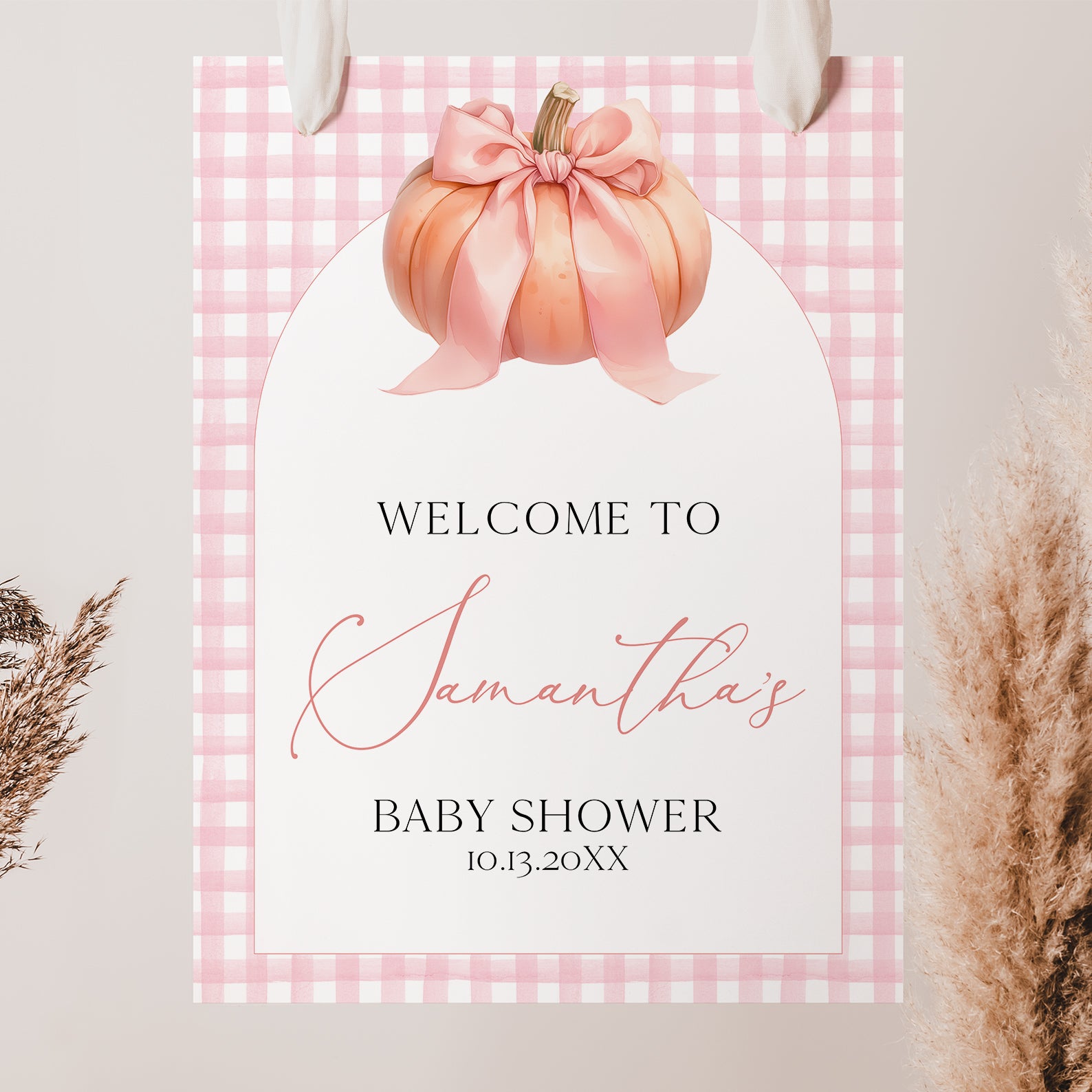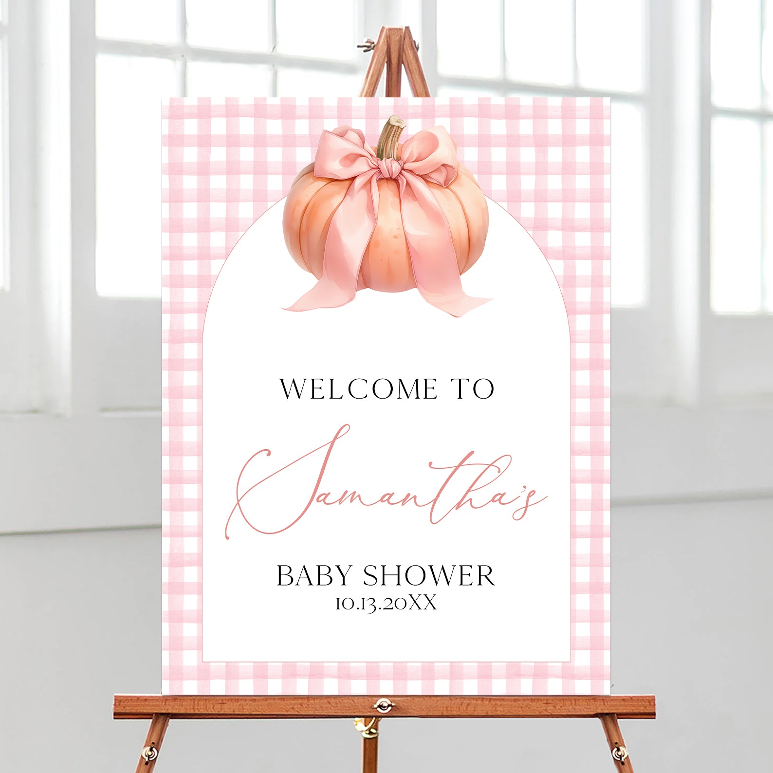 - Purchase this Little Pumpkin Baby Shower Welcome Sign: Pink Plaid & Peach Theme template