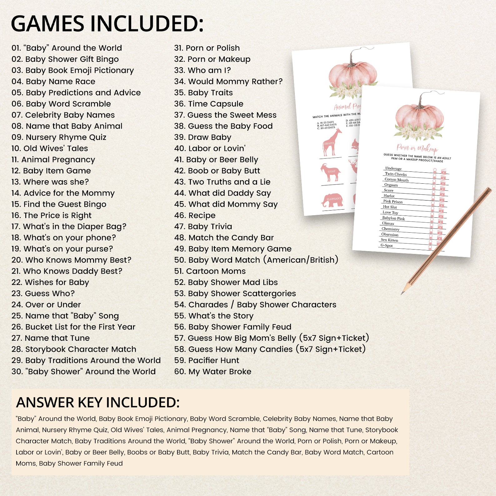 - Purchase this Little Pumpkin Pink Baby Shower Digital Game Bundle: Pumpkin & Flower template