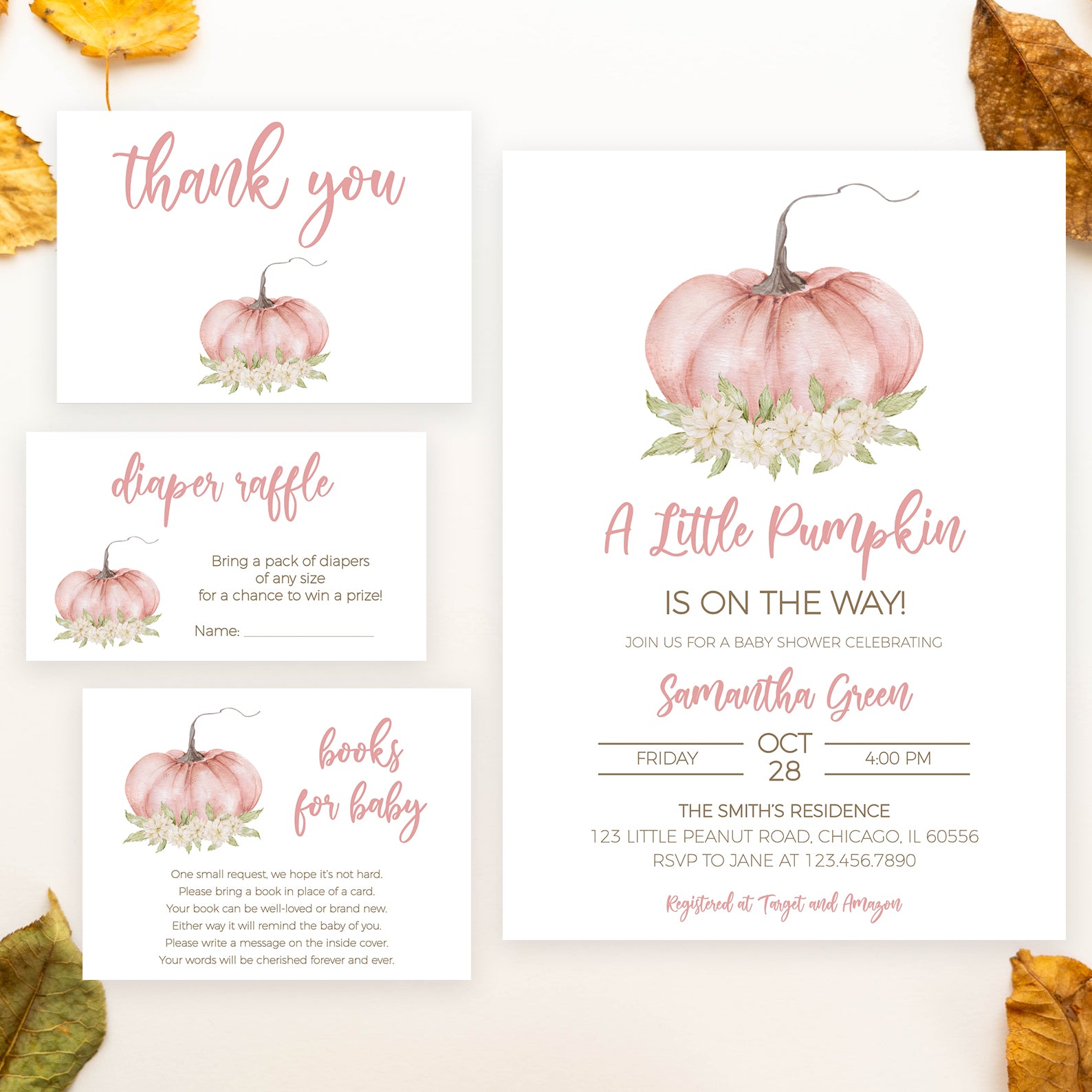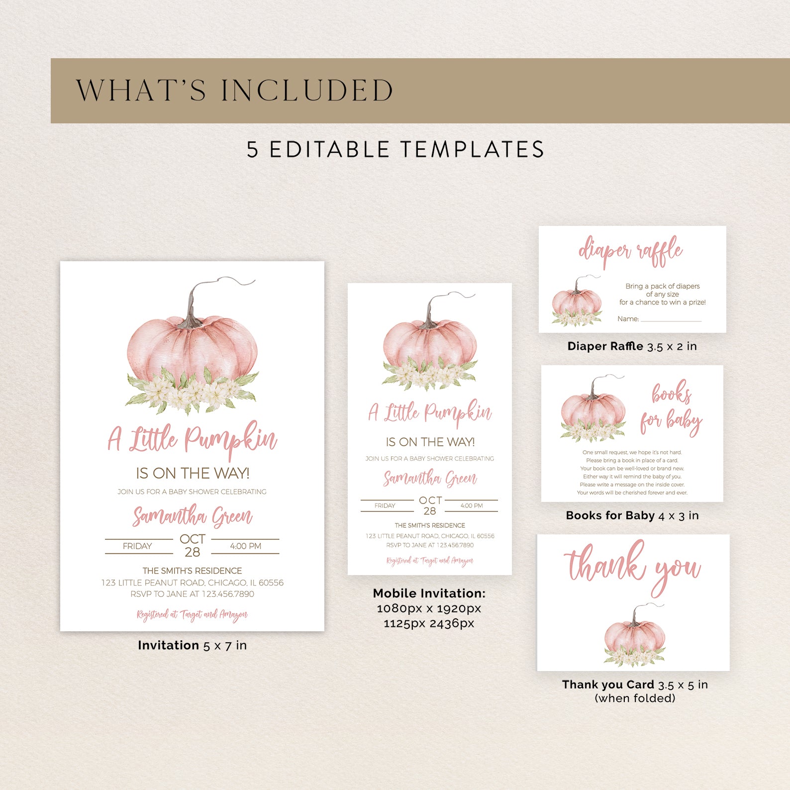 - Purchase this Little Pumpkin Pink Baby Shower Digital Invite Bundle: Pumpkin & Flower template