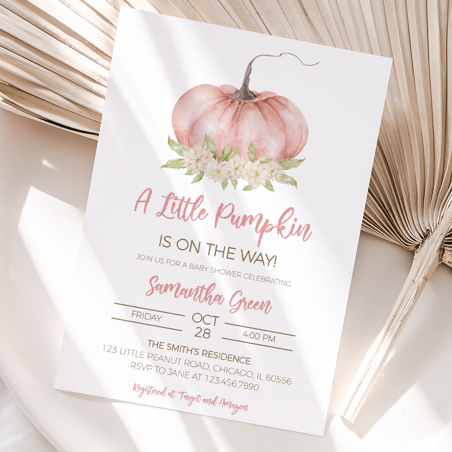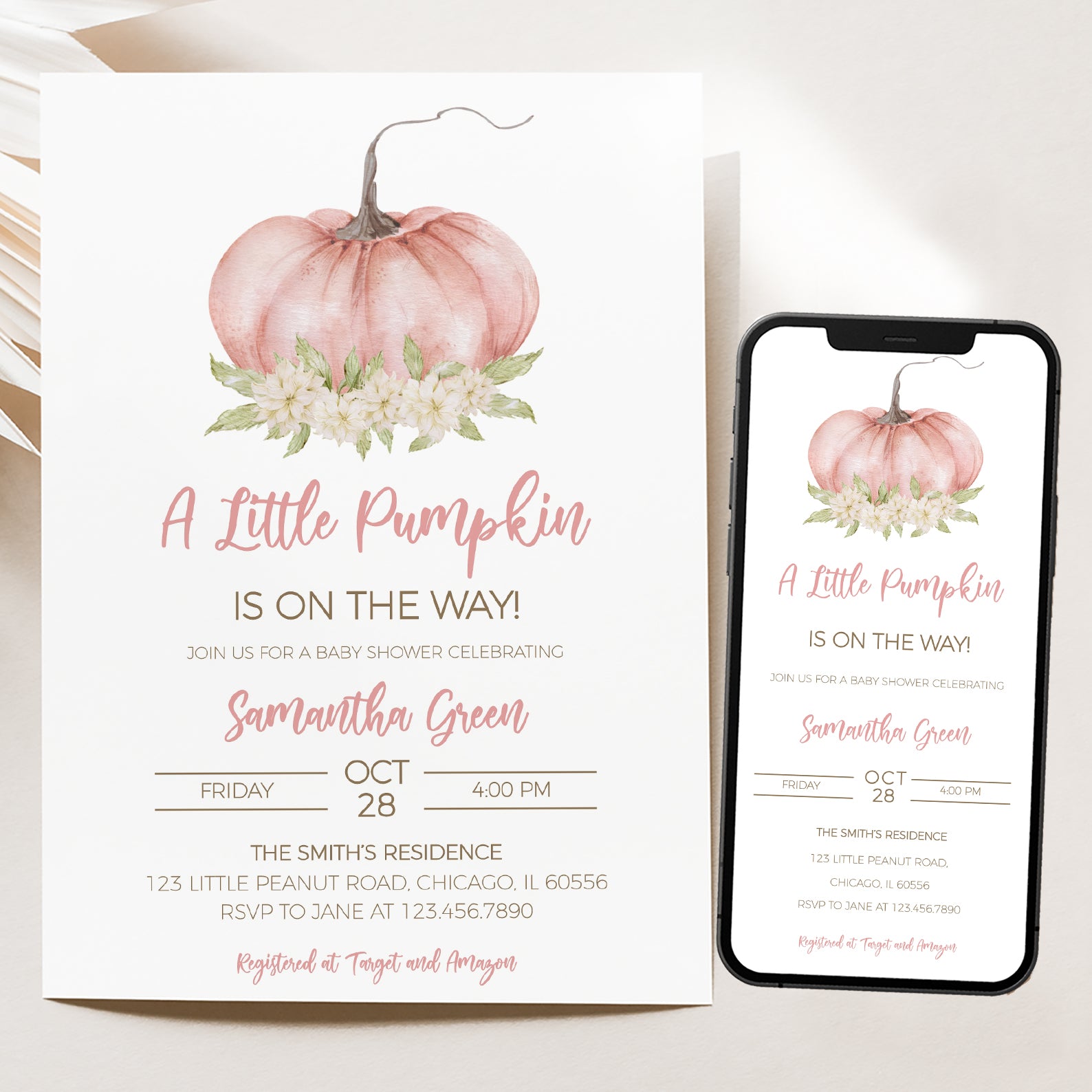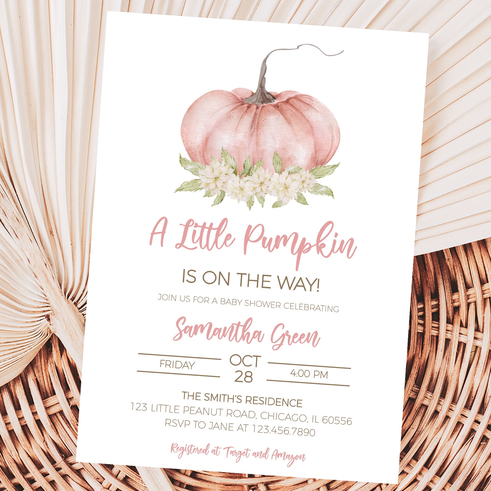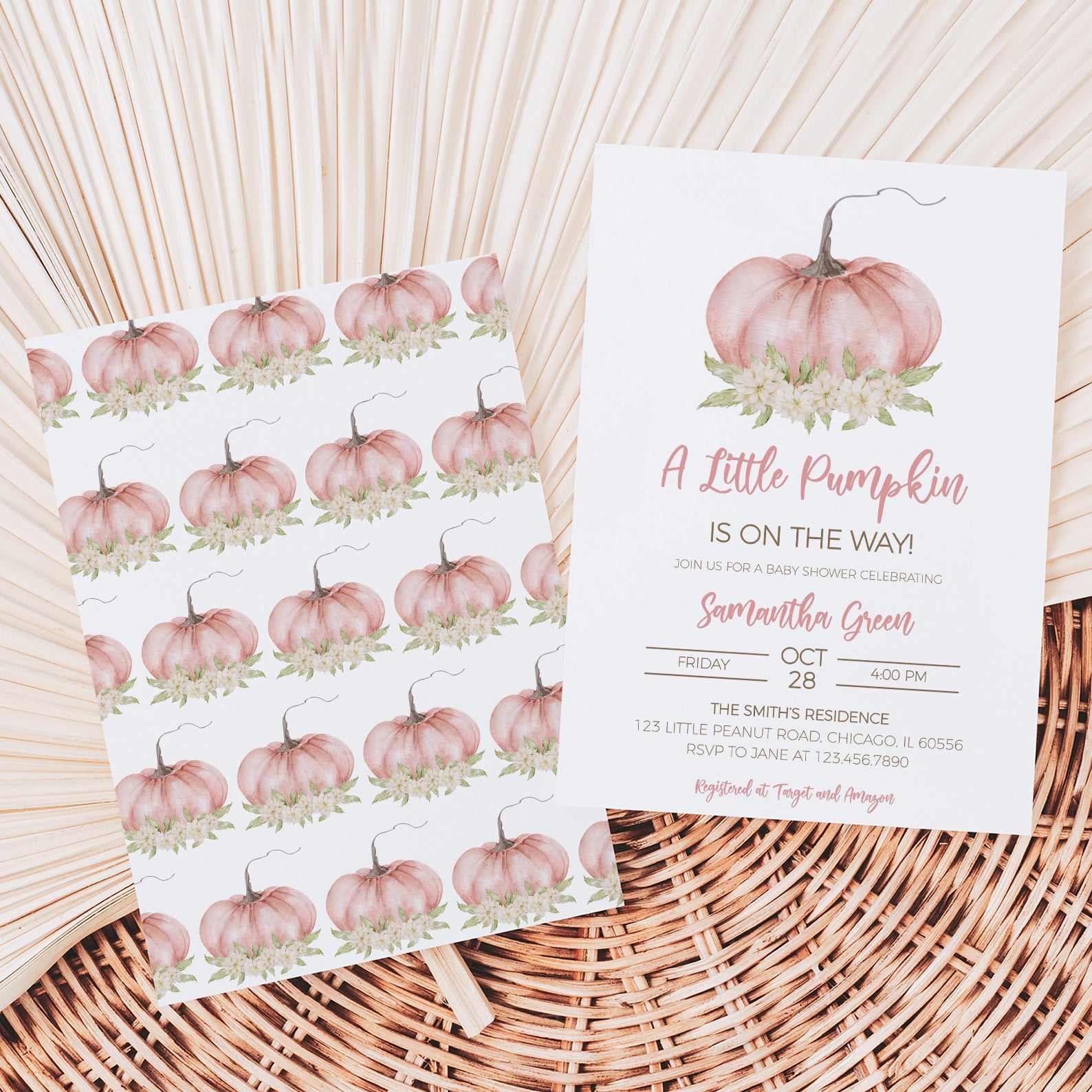 - Purchase this Little Pumpkin Pink Baby Shower Digital Invite: Pumpkin & Flower template