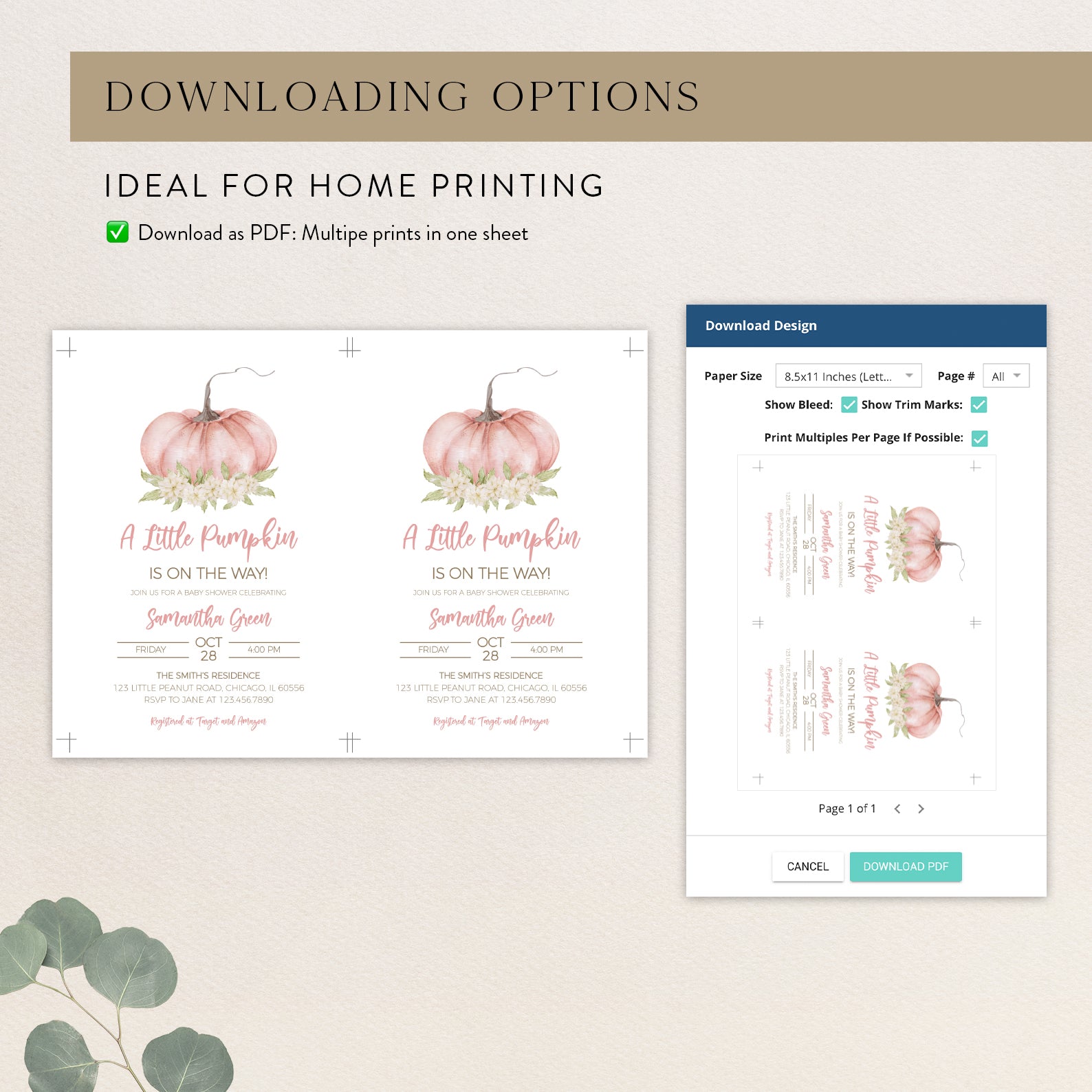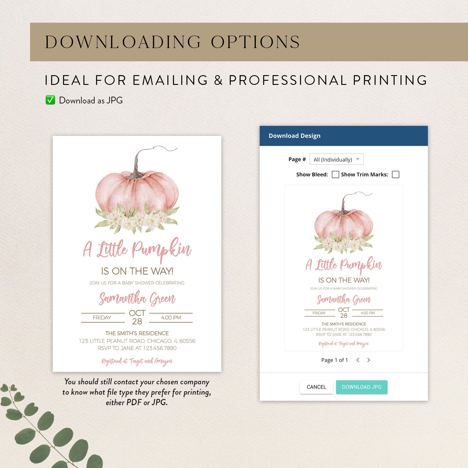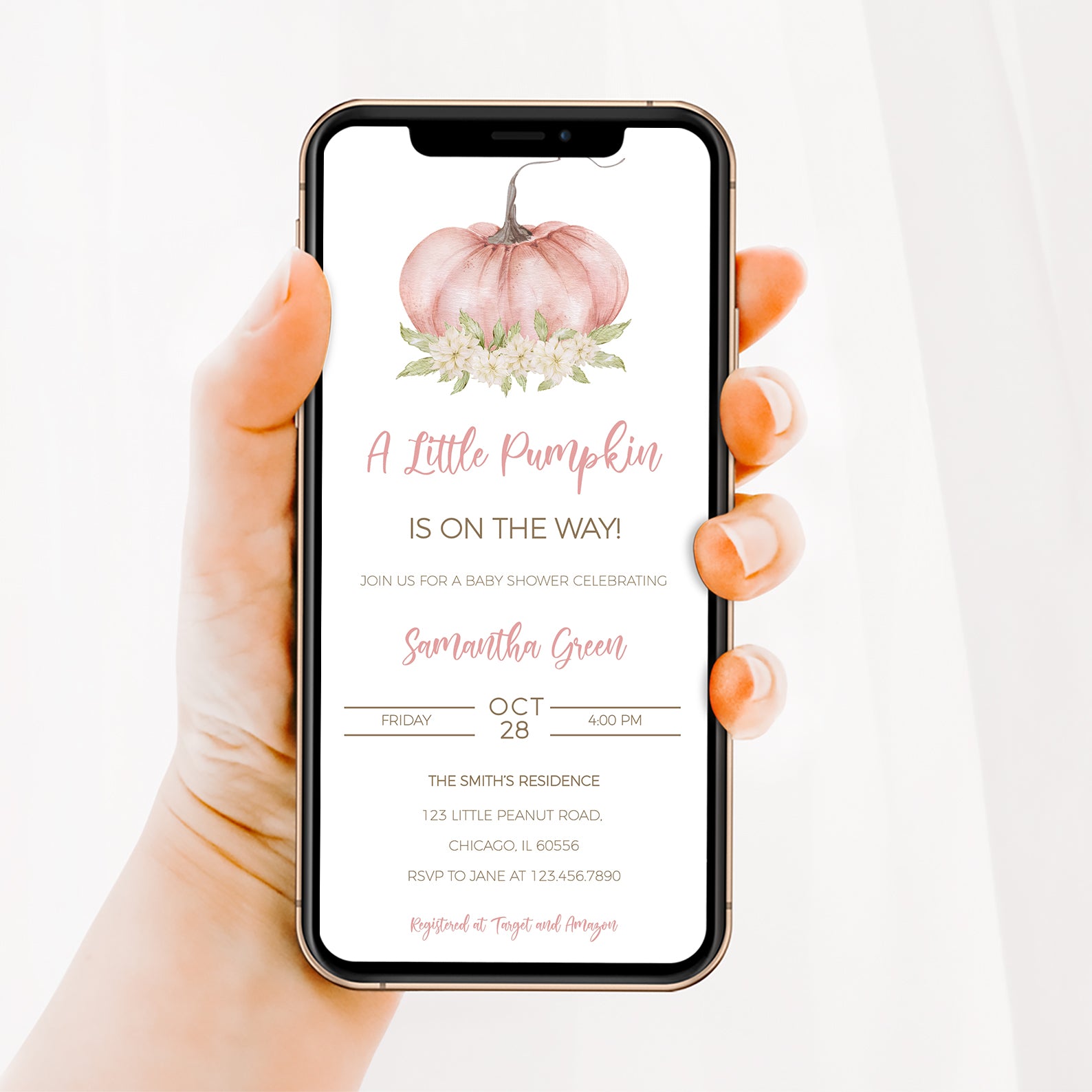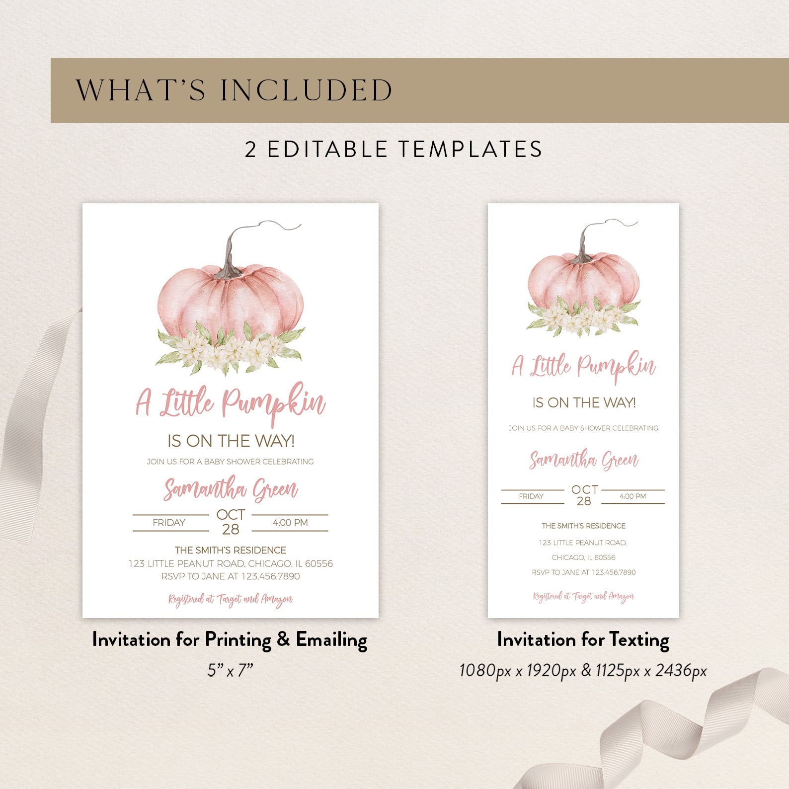 - Purchase this Little Pumpkin Pink Baby Shower Digital Invite: Pumpkin & Flower template