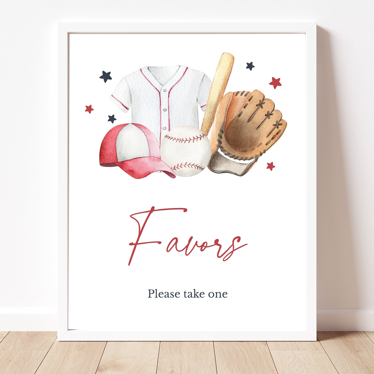 Bring your baseball-themed baby shower to life with this sporty set of ten editable table signs! Designed to match your little slugger celebration, each sign features playful red and blue stars, a baseball cap, glove, and bat illustrations on a crisp white background. From “Babies Are Sweet” to “Mom-osa Bar,” these signs add charm and organization to your setup, making your event feel both festive and coordinated. Easy to customize and print!