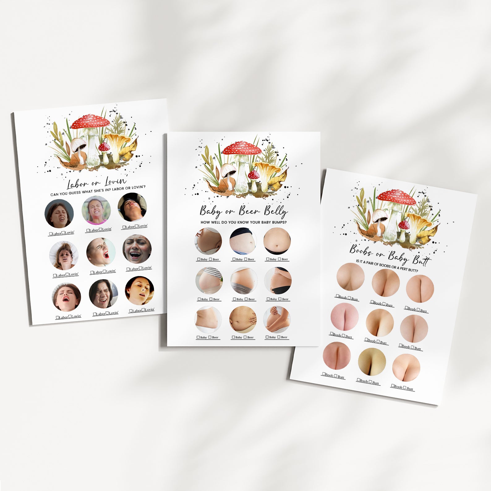 Minimalist Fall Baby Shower Game Bundle: Growing Mushrooms Design