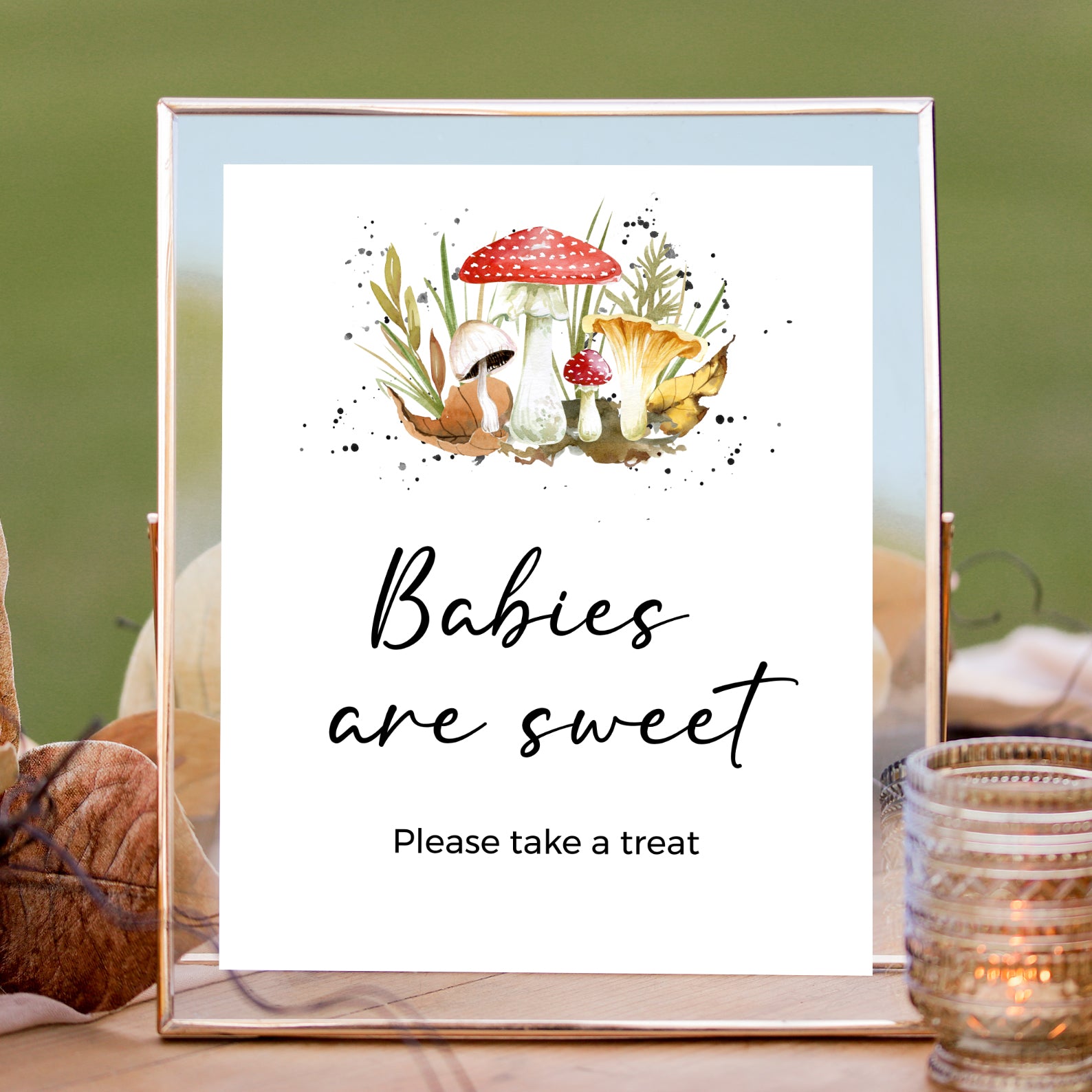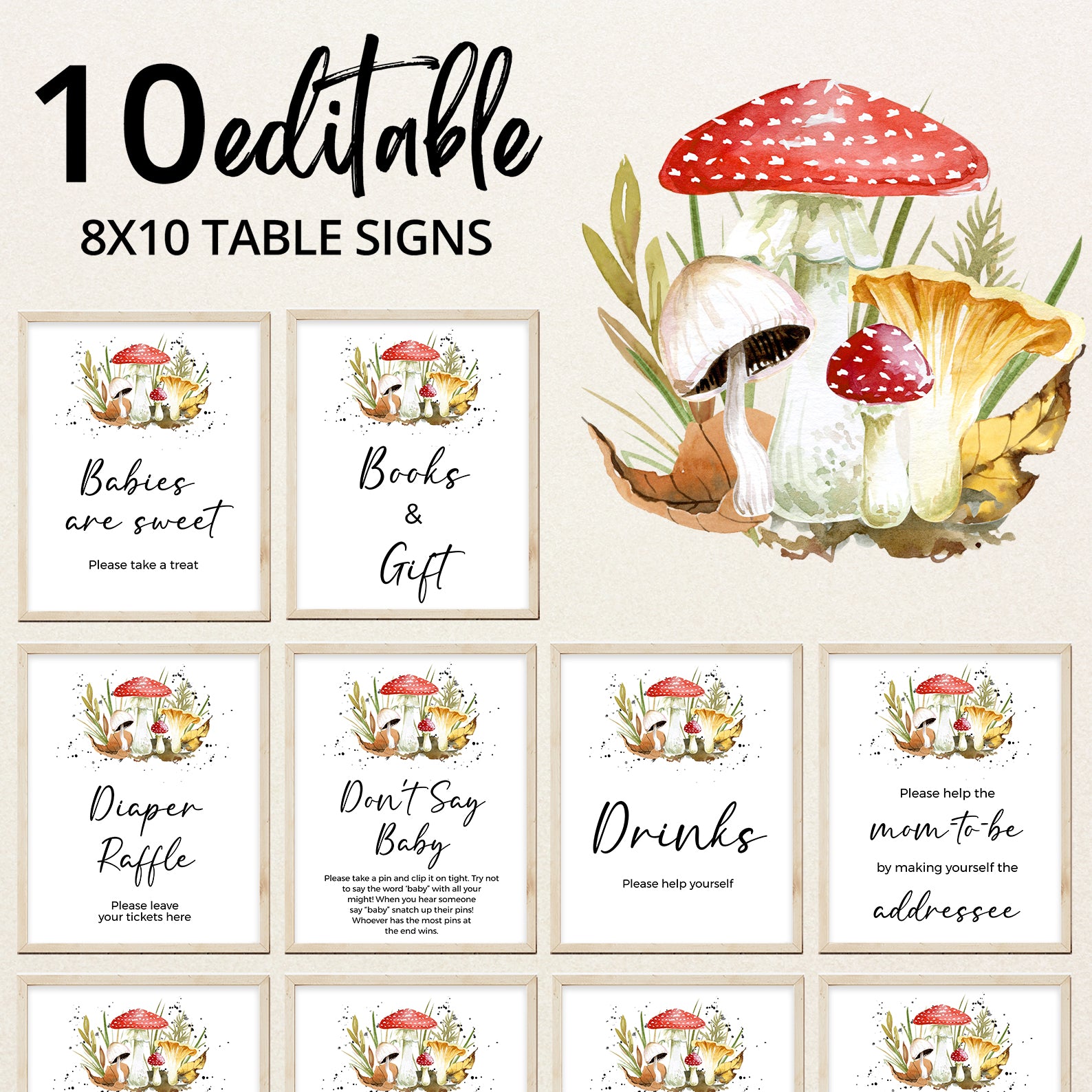 - Purchase this Minimalist Fall Baby Shower Table Sign: Growing Mushrooms Design template