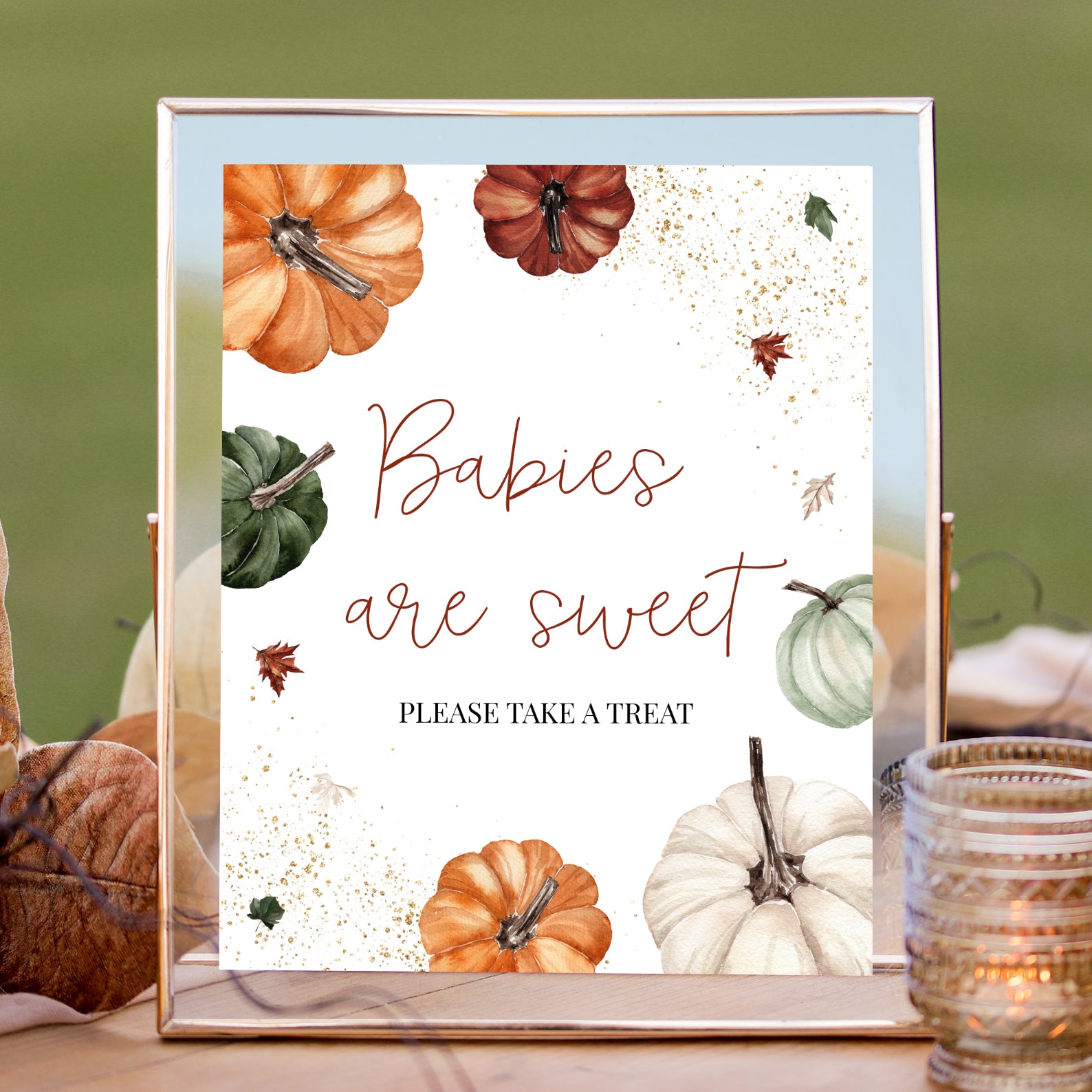 Minimalist Fall Pumpkin Baby Shower Digital Table Sign