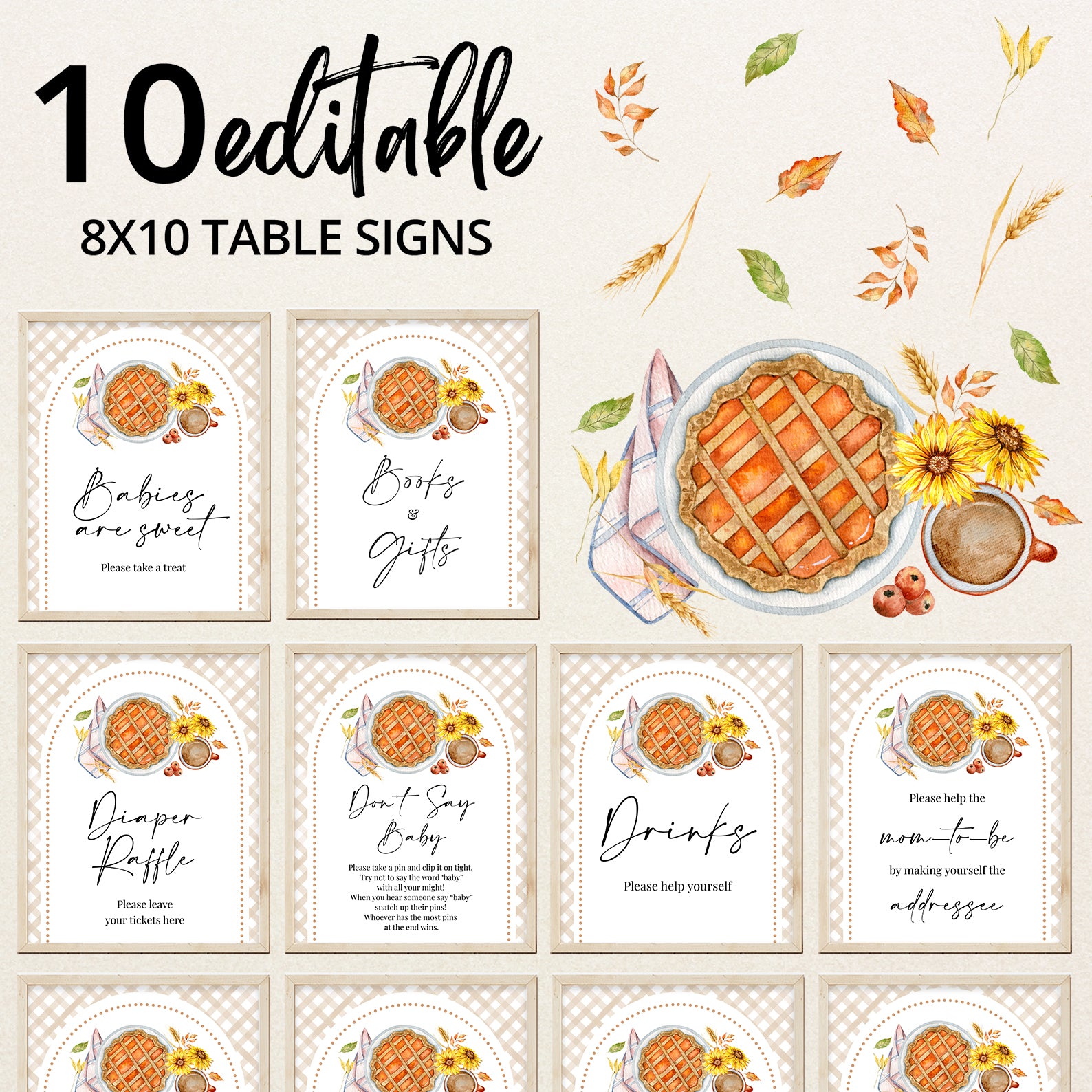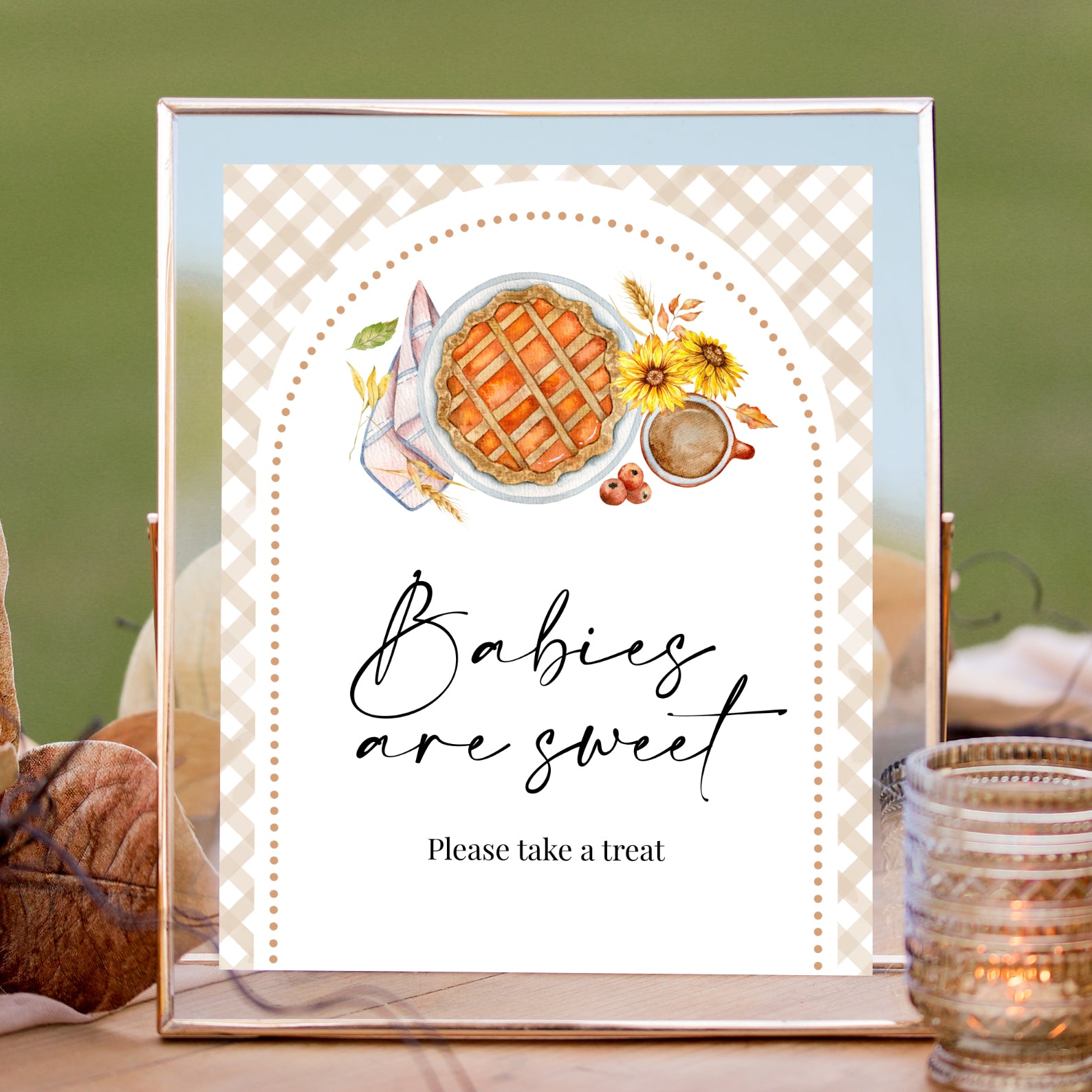- Purchase this Minimalist Little Cutie Pie Fall Baby Shower Digital Table Sign template