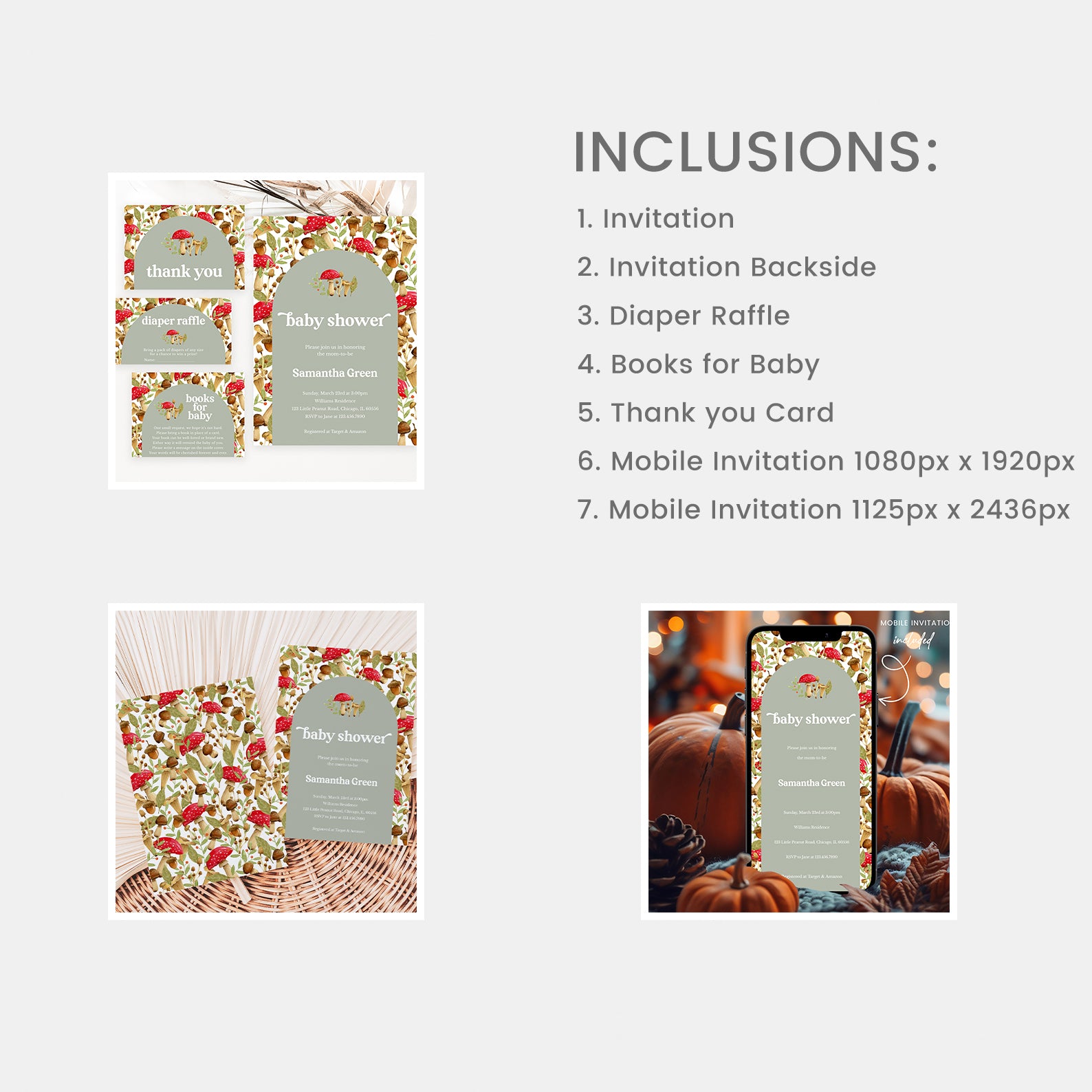 - Purchase this Mushrooms & Acorns Fall Baby Shower Digital Mega Bundle template