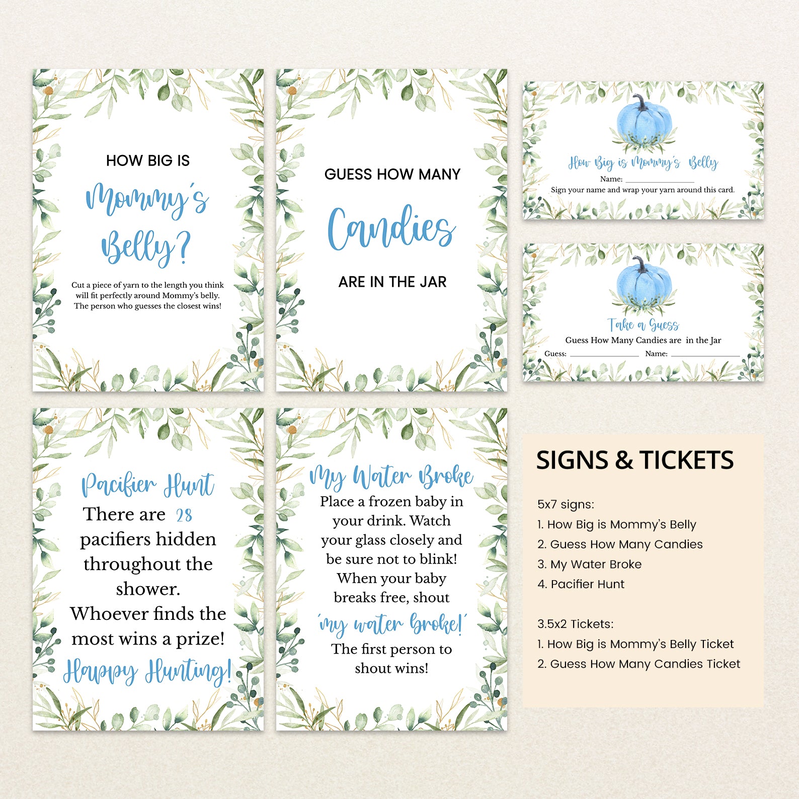 Oh Boy Baby Shower Game Bundle with Blue Pumpkin & Green Border