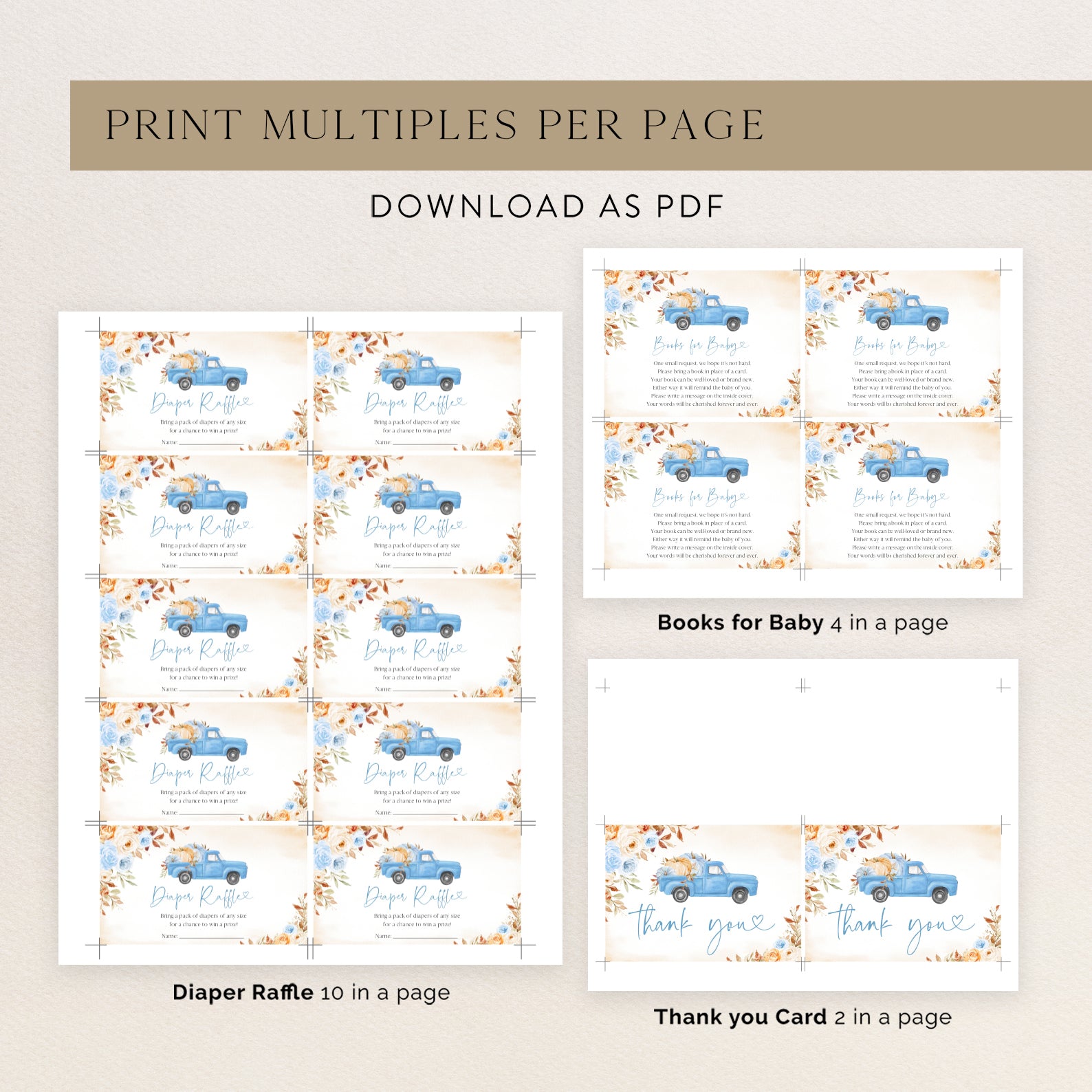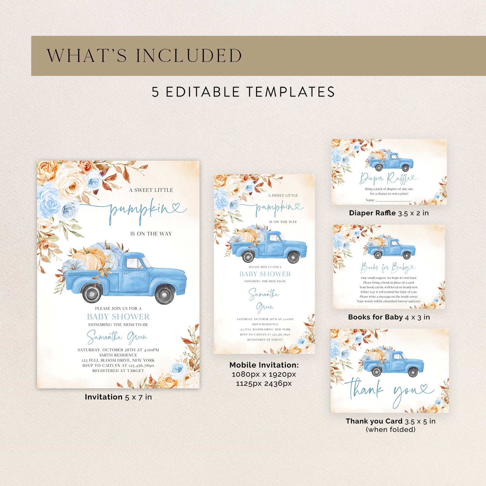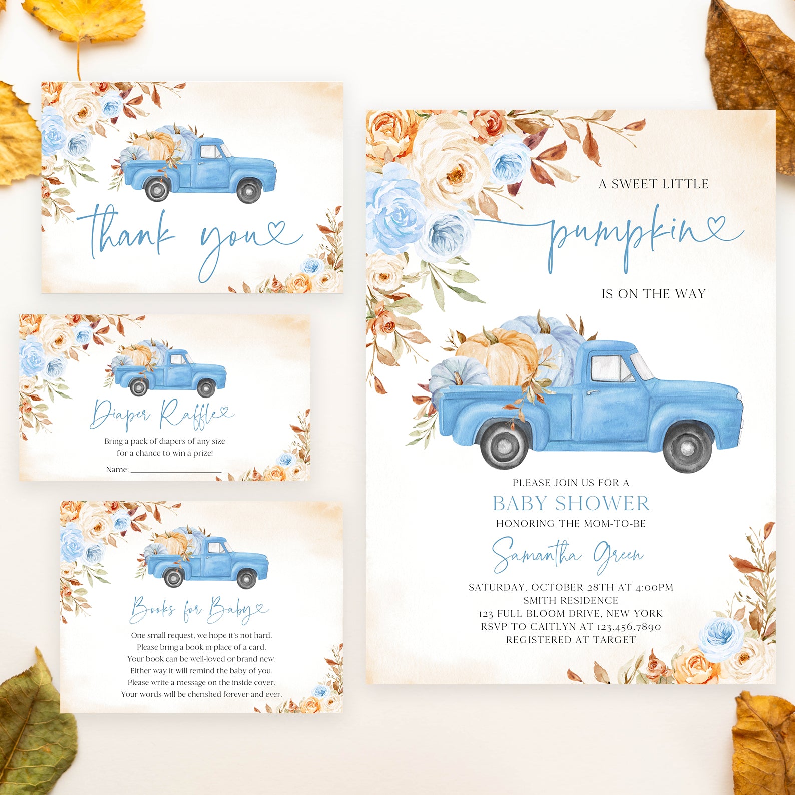 - Purchase this Pickup Truck & Pumpkins with Roses Fall Baby Shower Invite Bundle template