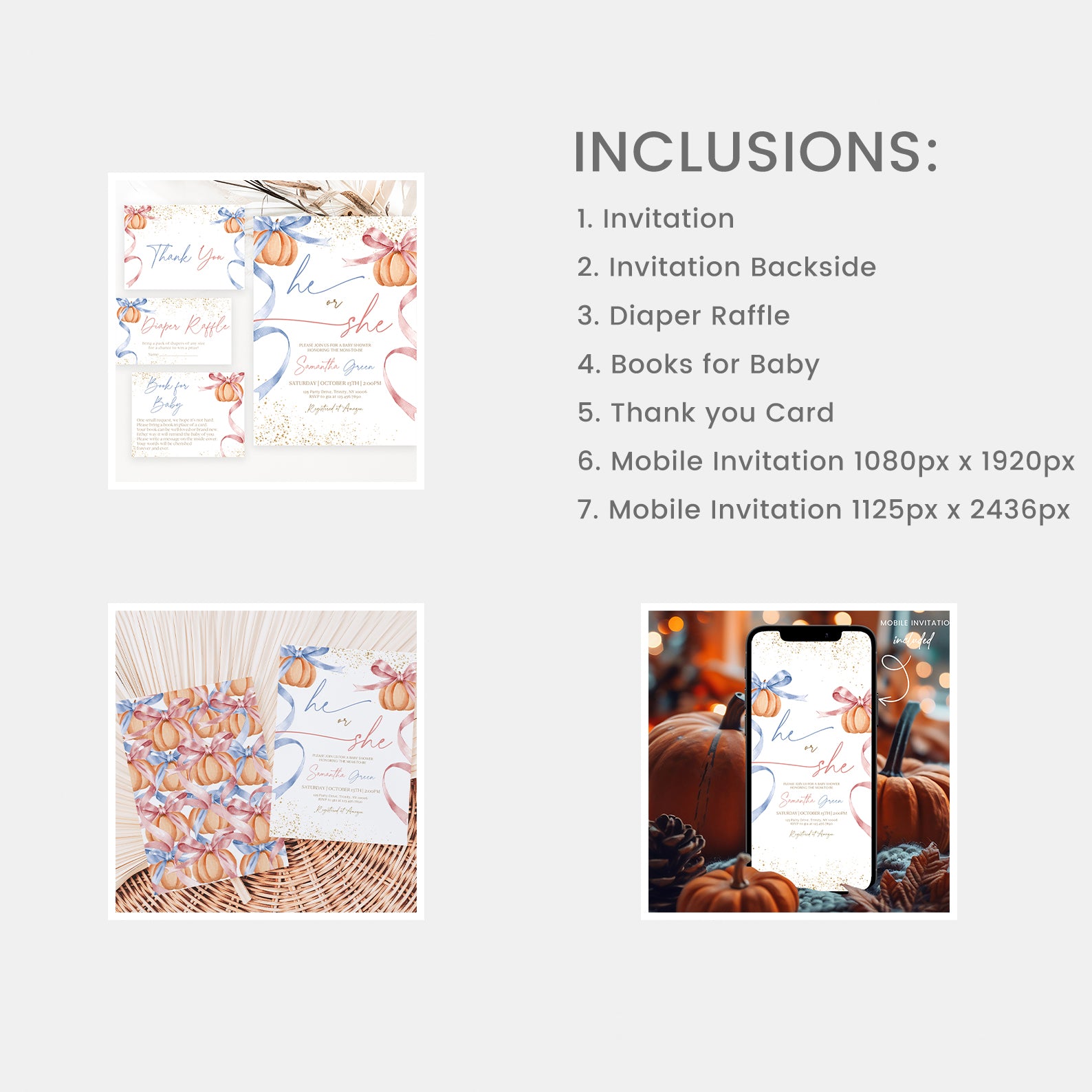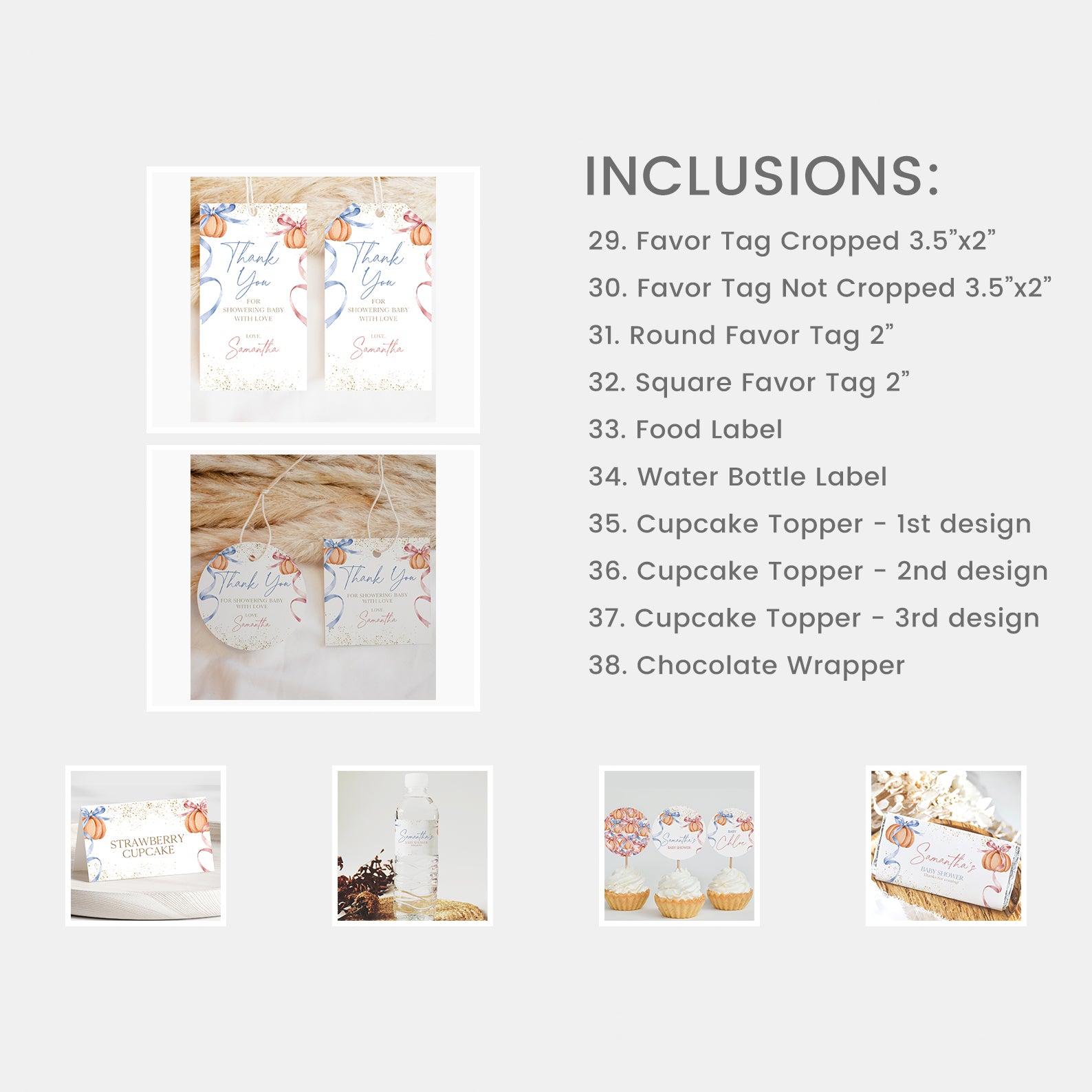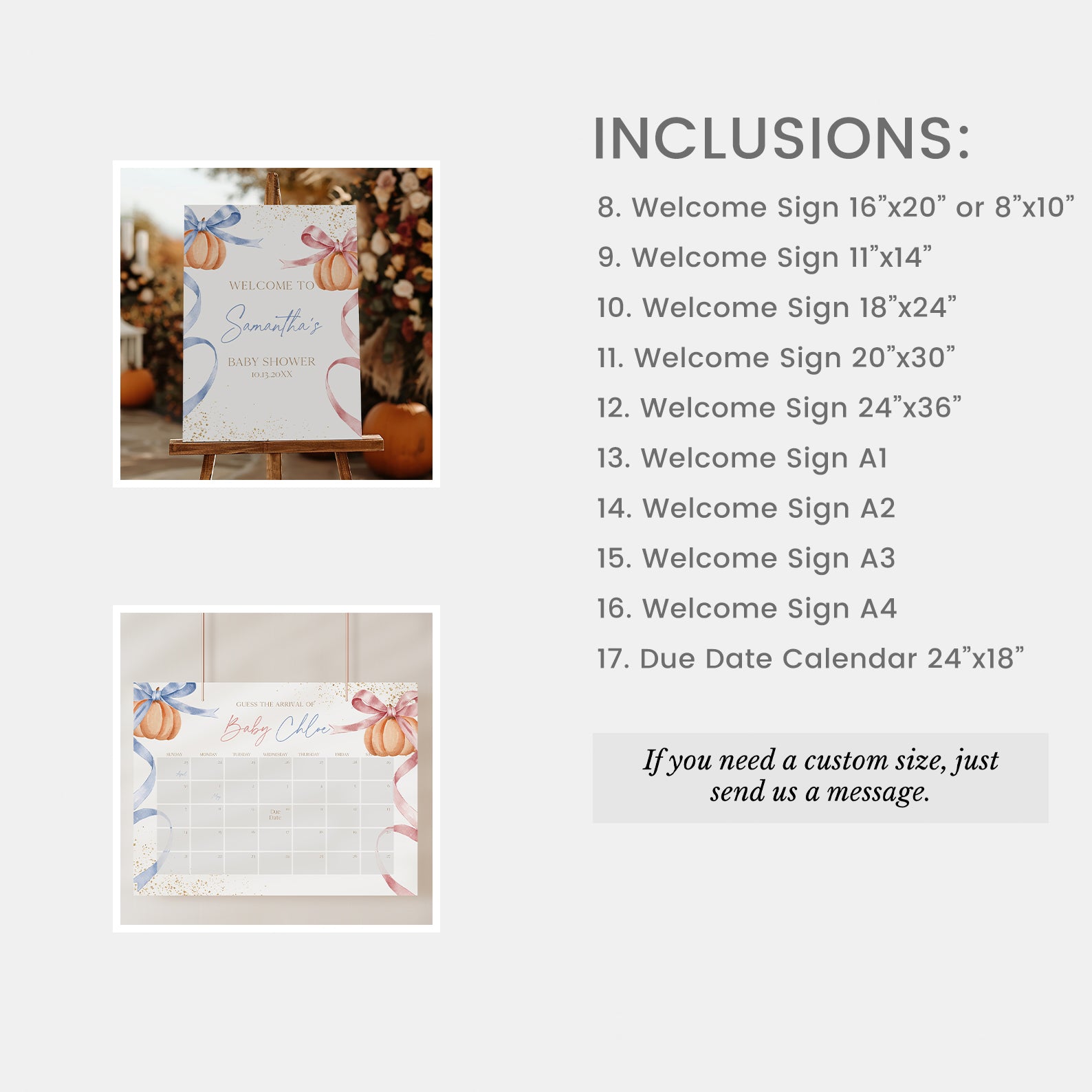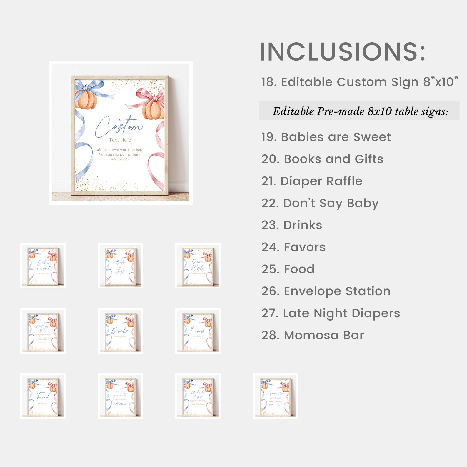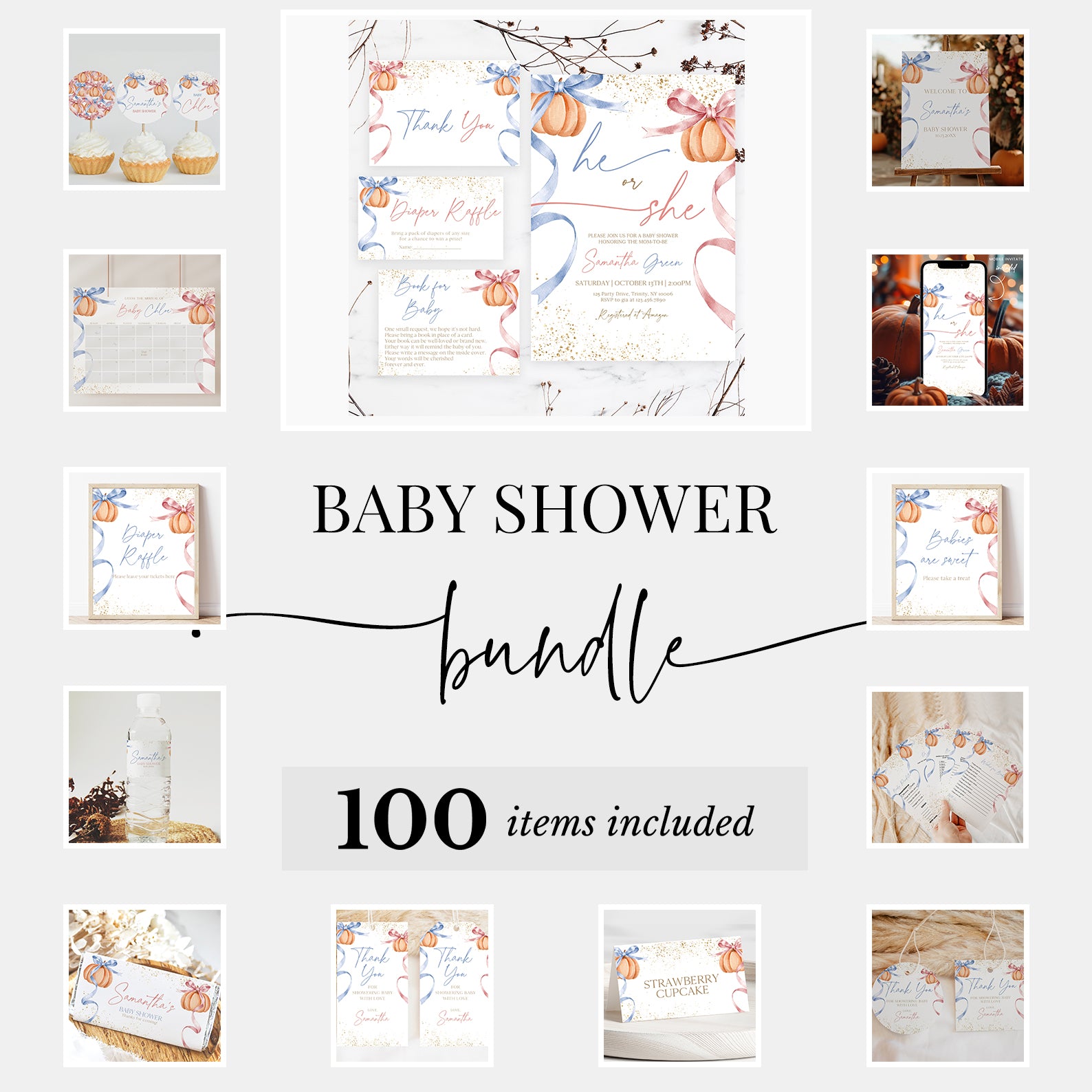 - Purchase this Pink and Blue Pumpkin Baby Shower Mega Bundle Fall Theme template