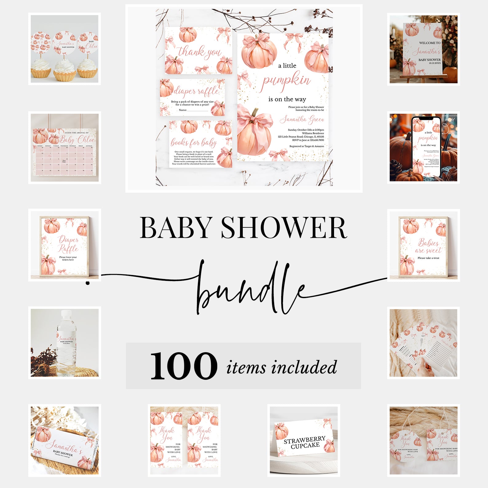 - Purchase this Pink Pumpkin Baby Shower Digital Mega Bundle: Fall Girl Theme template