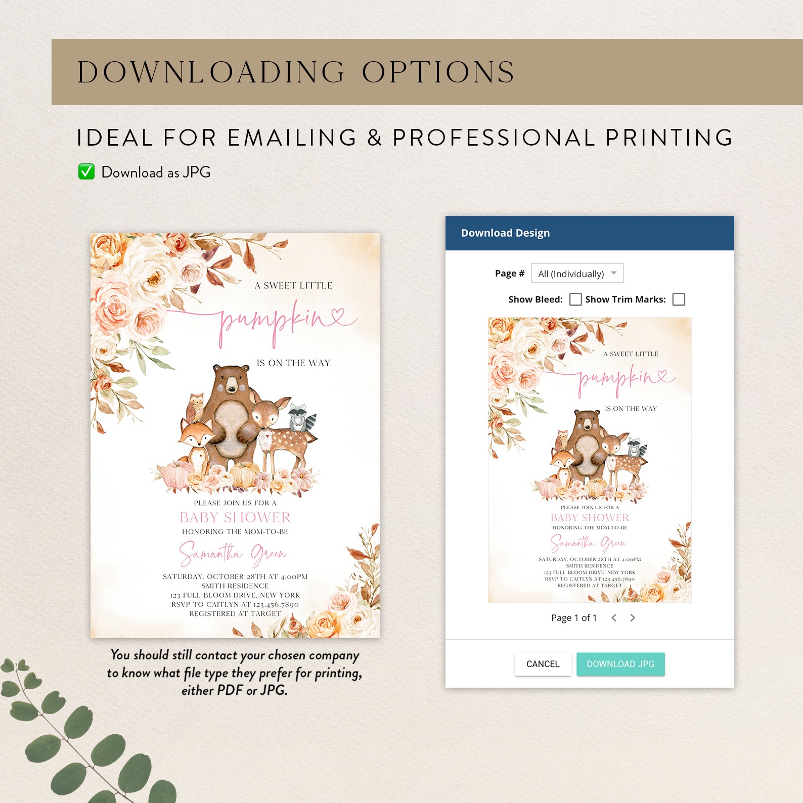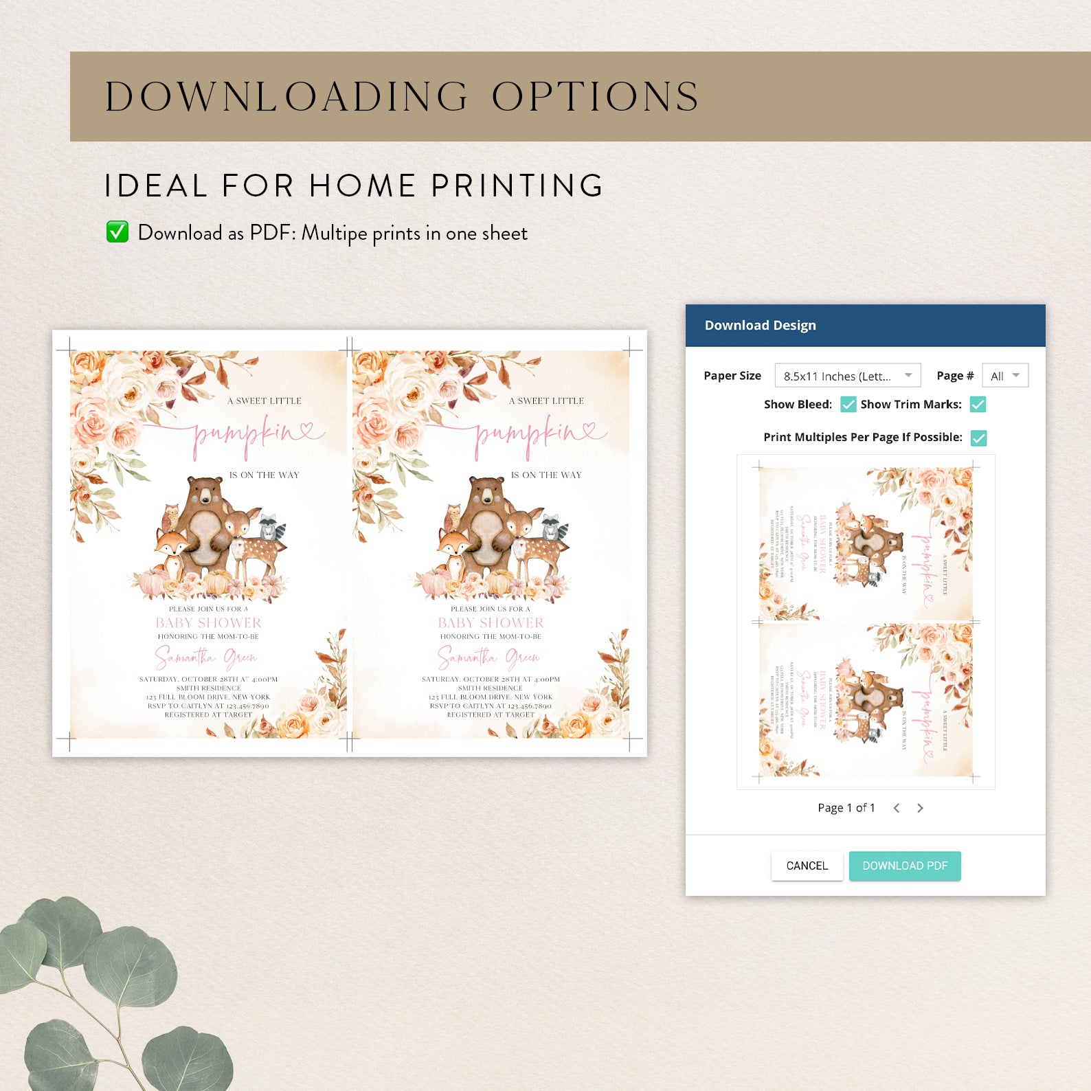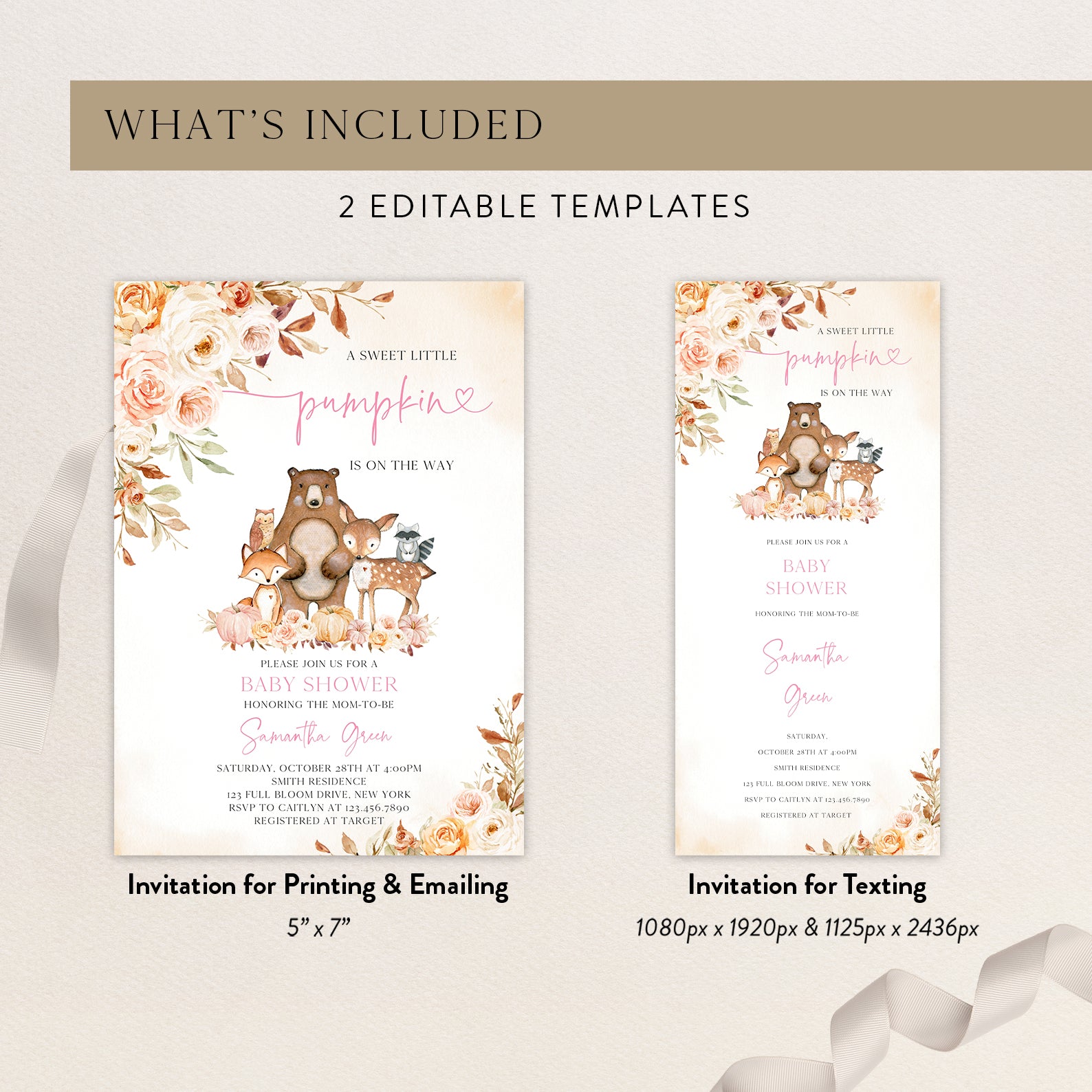- Purchase this Sweet Little Pumpkin Baby Shower Invite with Woodland Animals template