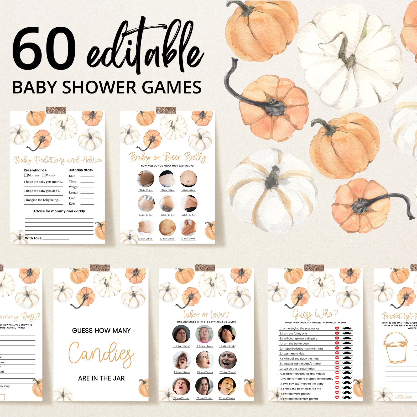 - Purchase this Sweet Little Pumpkin Fall Baby Shower Digital Game Bundle template