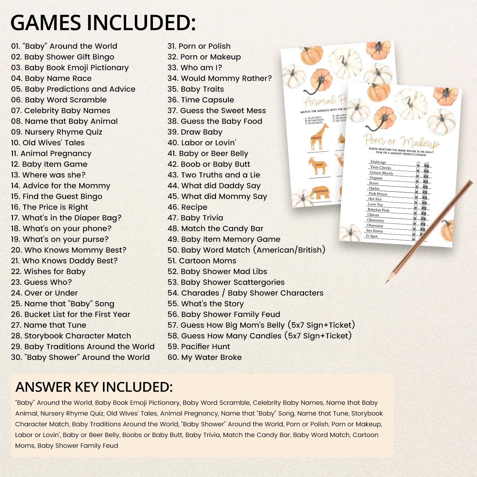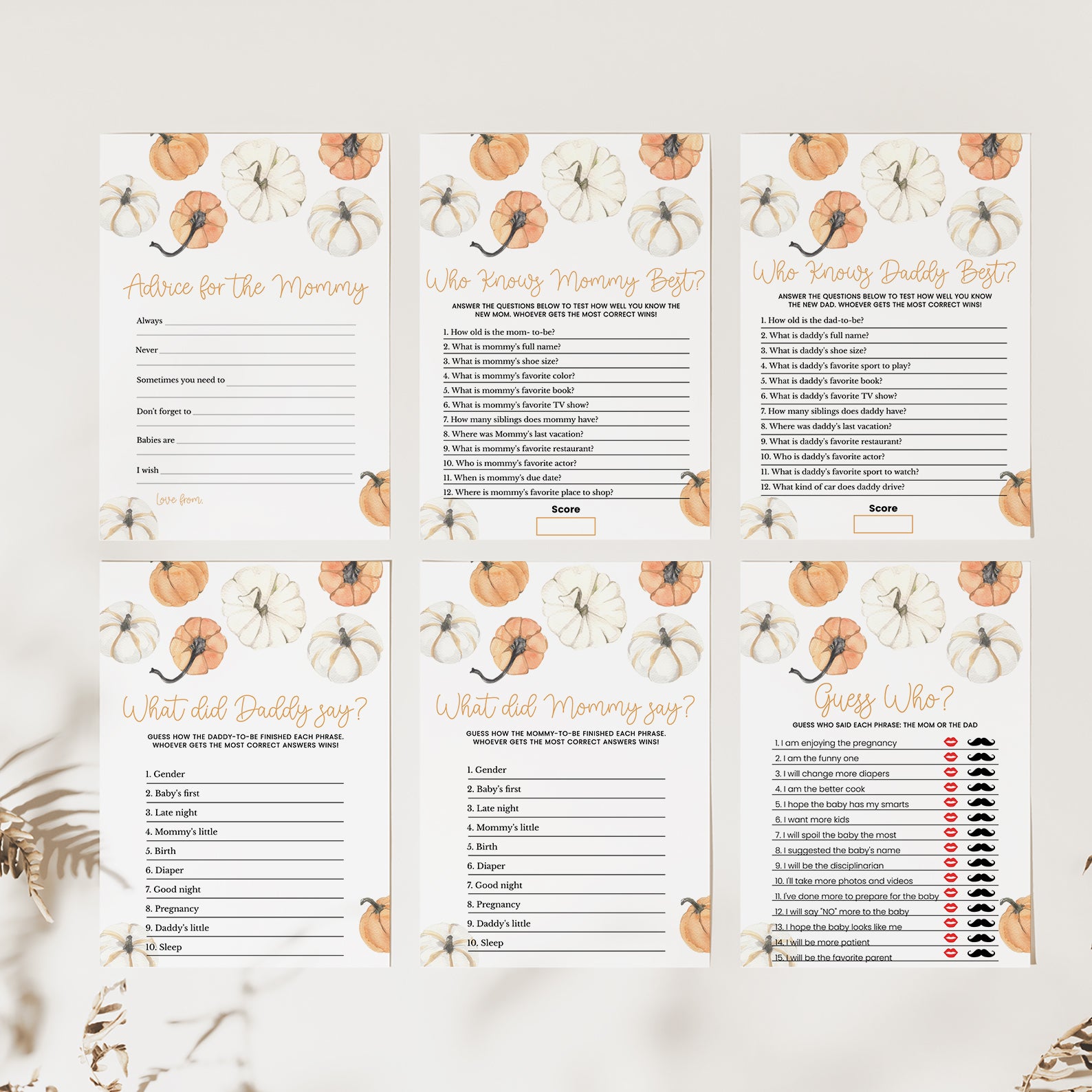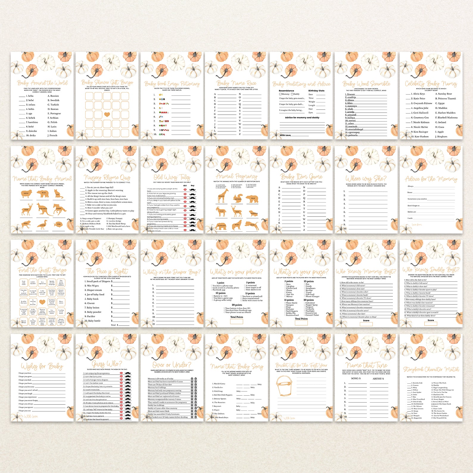 Sweet Little Pumpkin Fall Baby Shower Digital Game Bundle