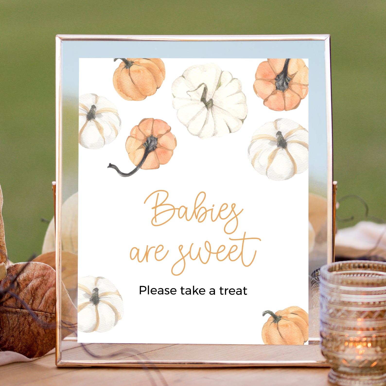 - Purchase this Sweet Little Pumpkin Fall Baby Shower Digital Table Sign template