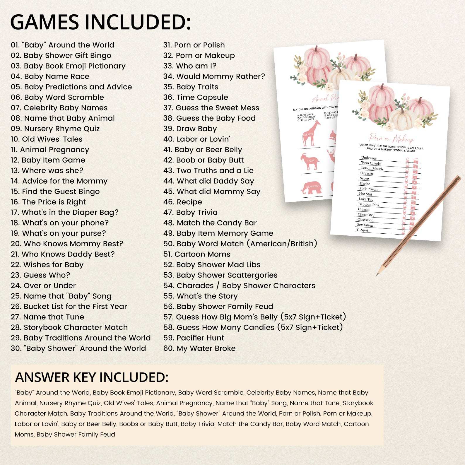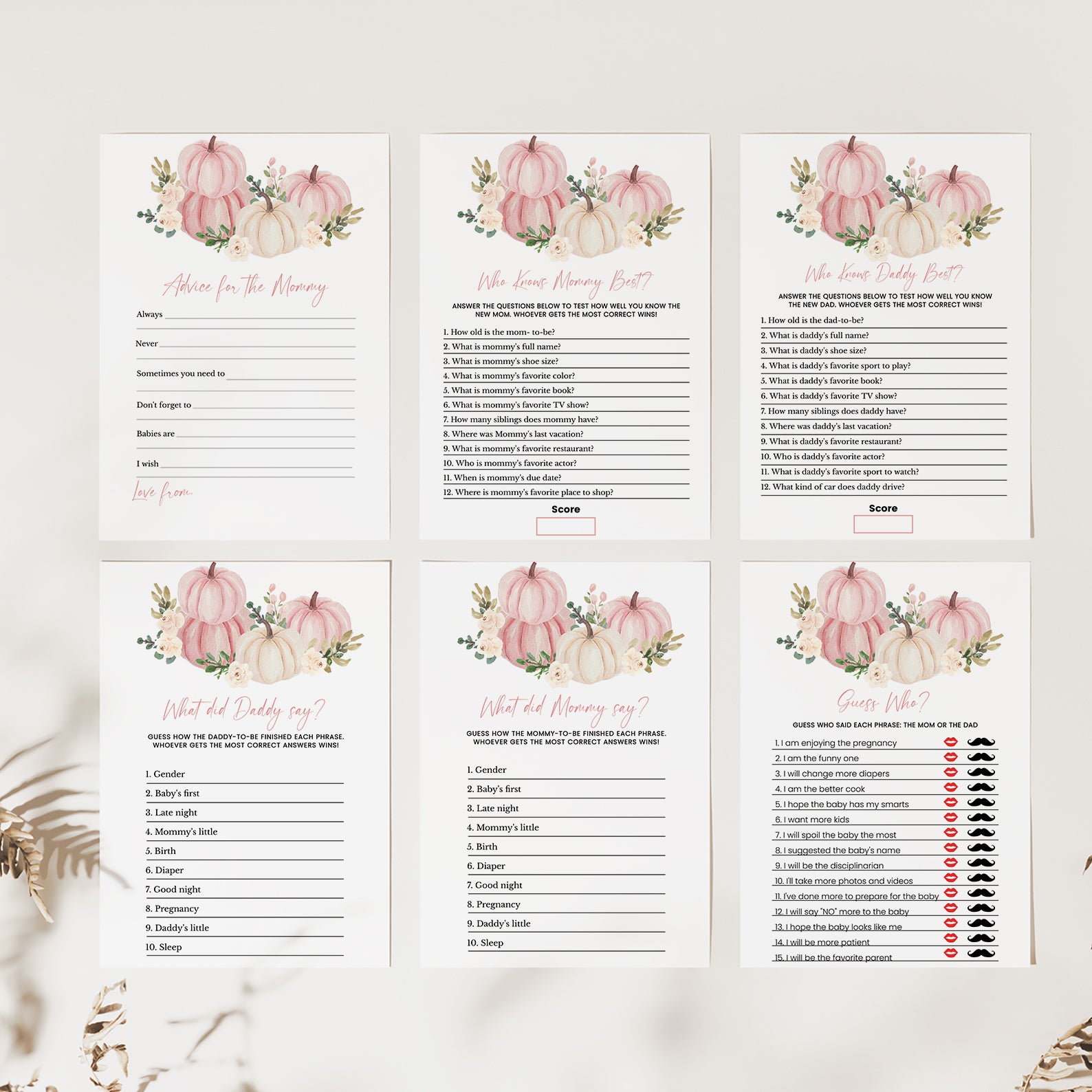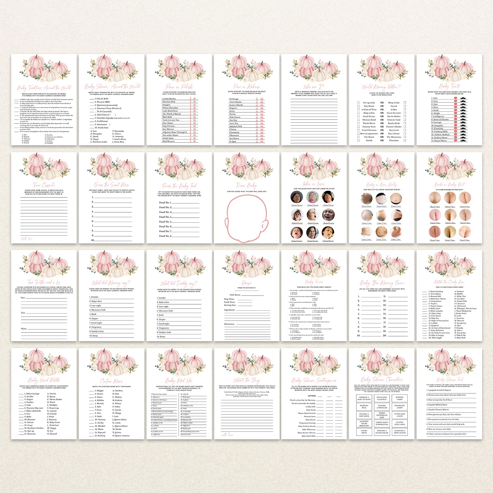 Sweet Little Pumpkin Pink Fall Baby Shower Digital Game Bundle