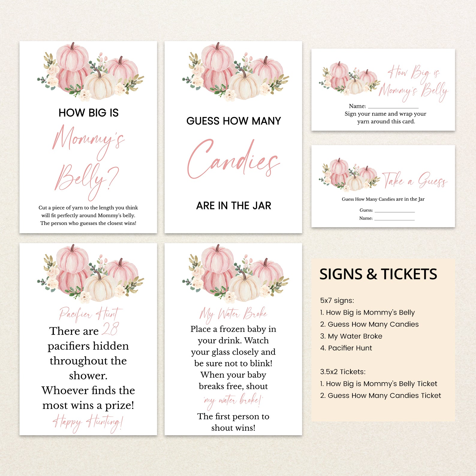 - Purchase this Sweet Little Pumpkin Pink Fall Baby Shower Digital Game Bundle template