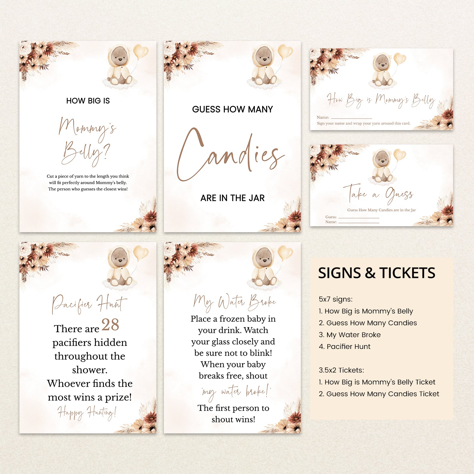 - Purchase this We Can Bearly Wait Baby Shower Game Bundle: Brown Boho Theme template