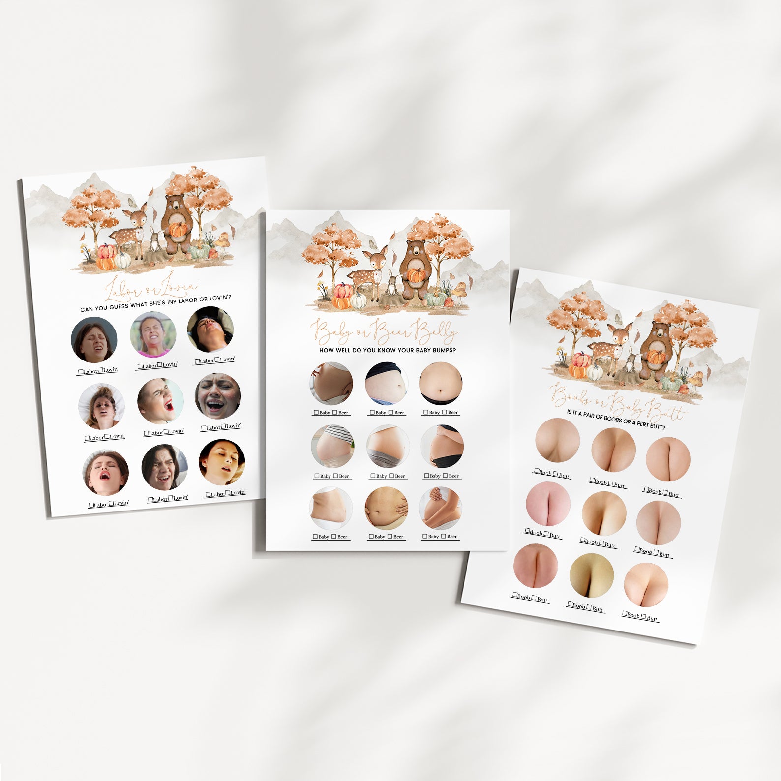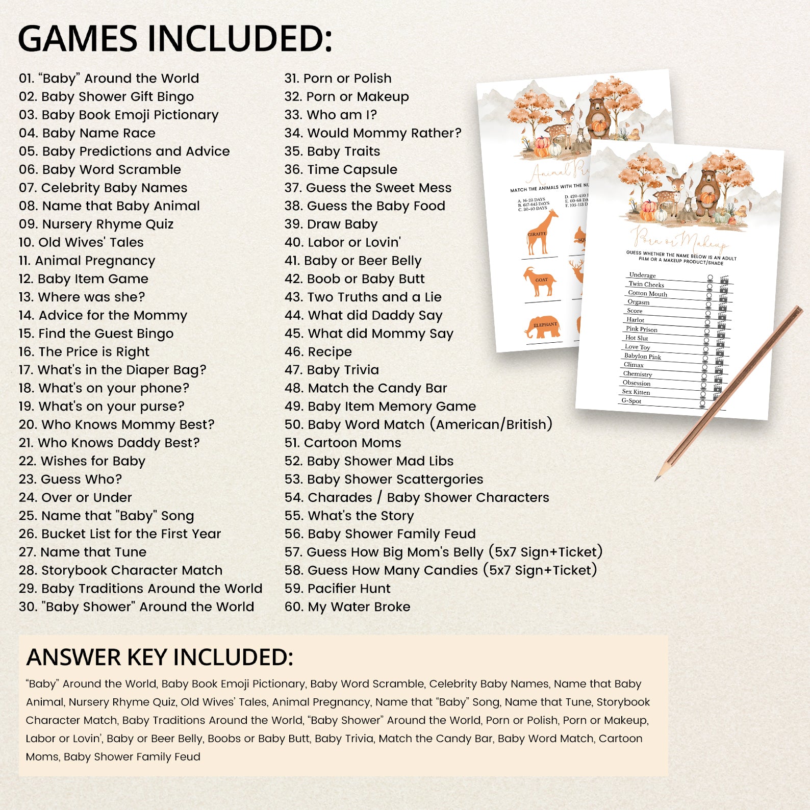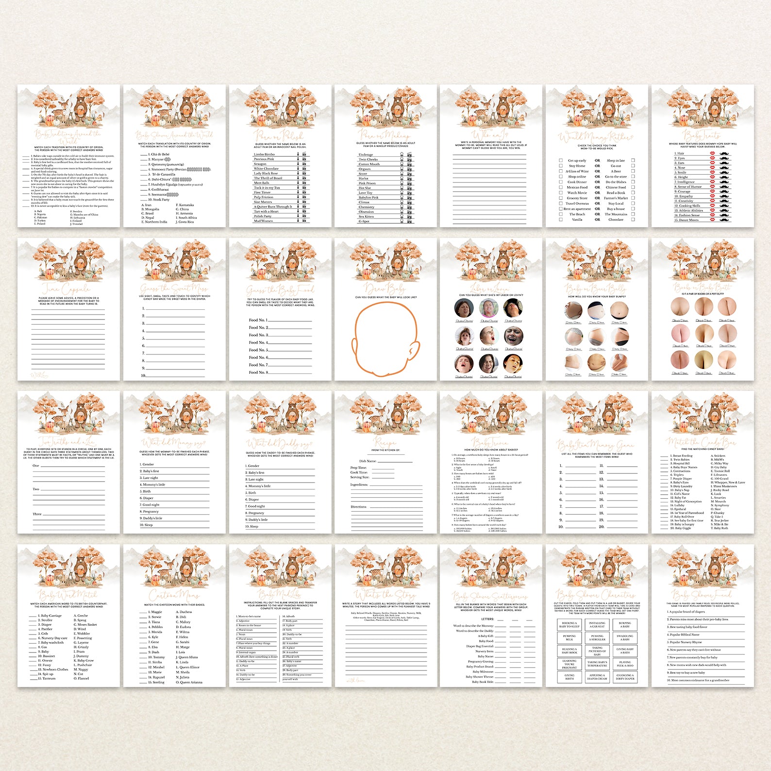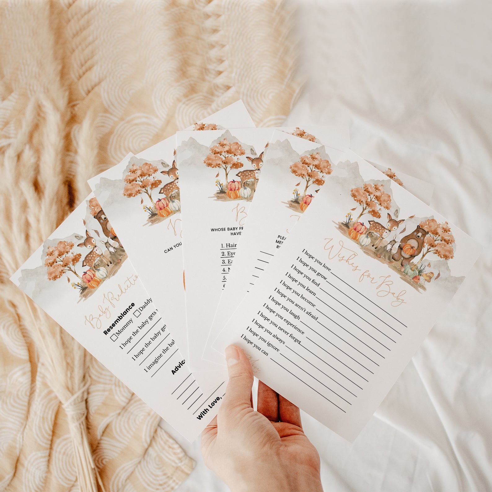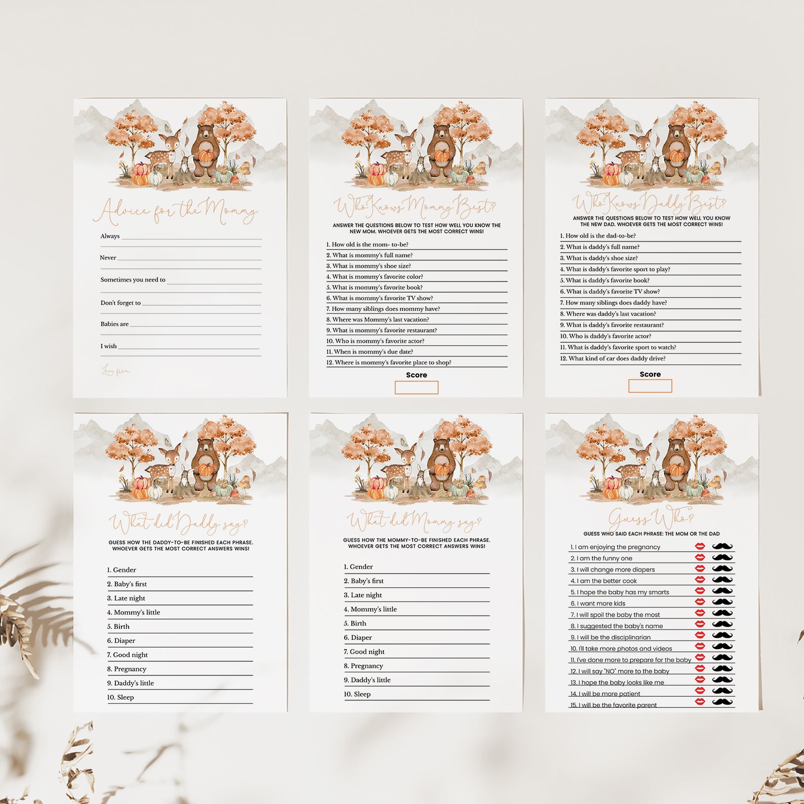 - Purchase this Woodland Animals Baby Shower Digital Game Bundle Fall Forest Theme template