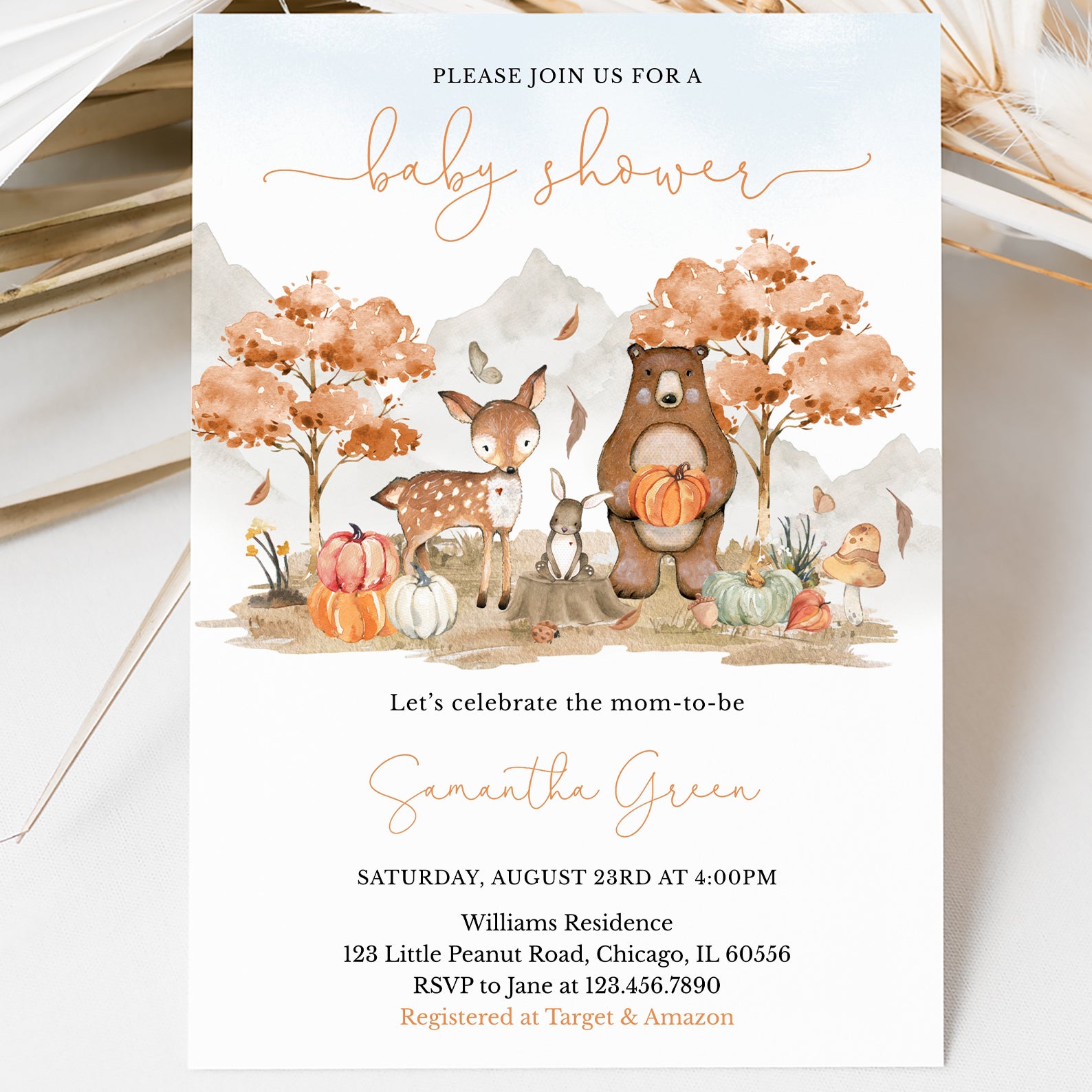 - Purchase this Woodland Animals Baby Shower Digital Invite Fall Forest Theme template