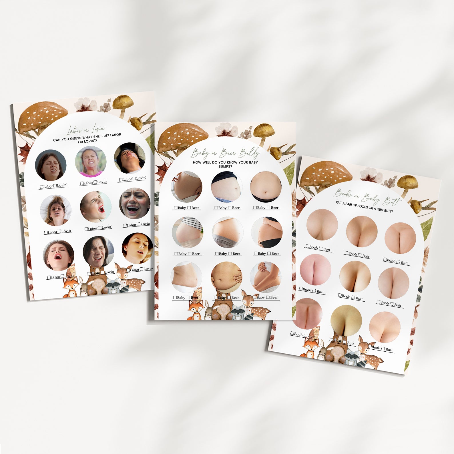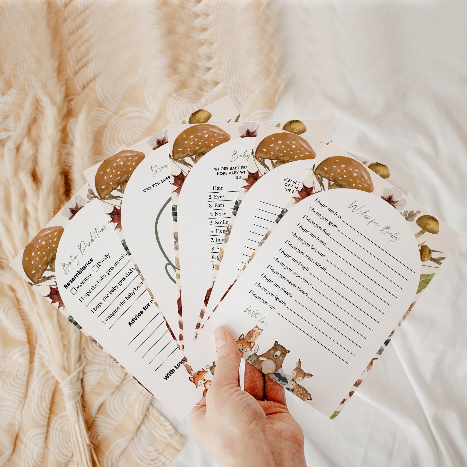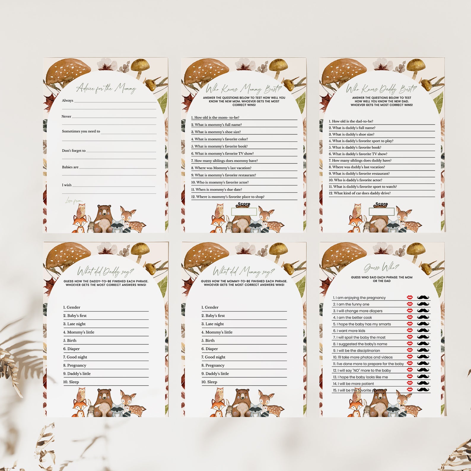 Woodland Fall Baby Shower Game Bundle with Mushrooms & Leaves