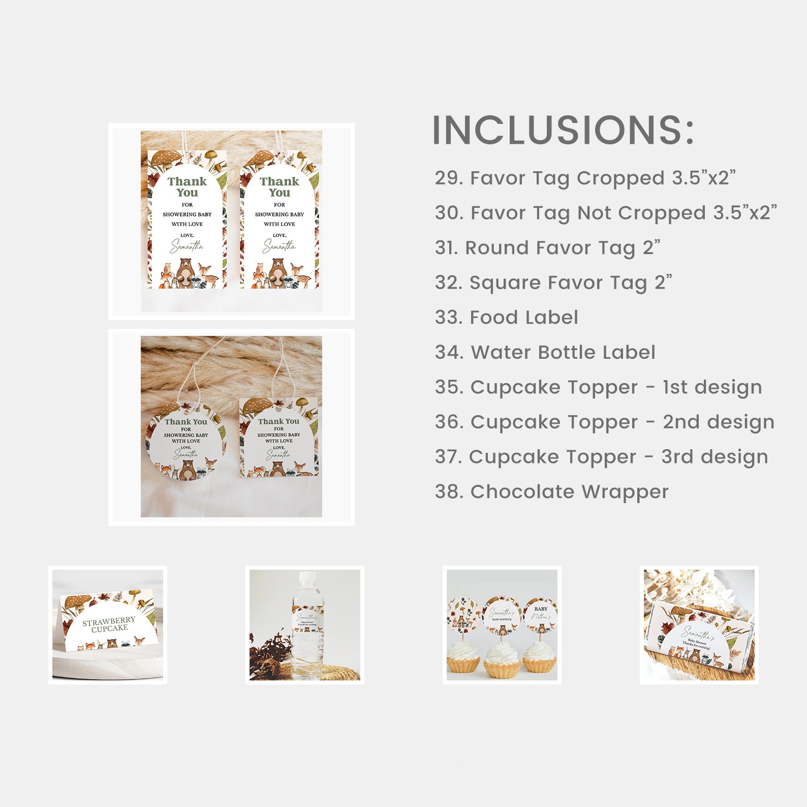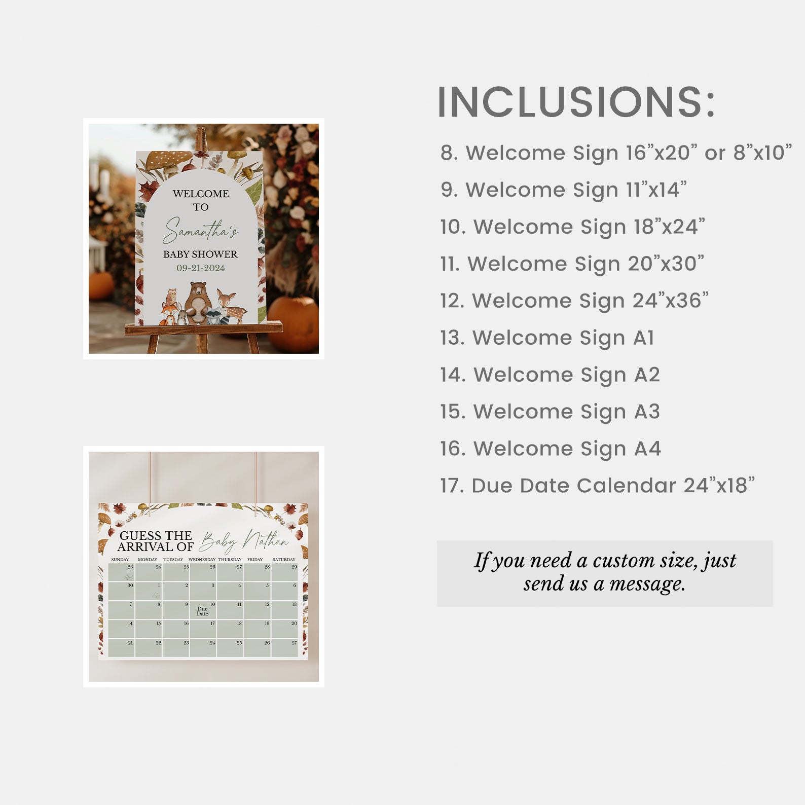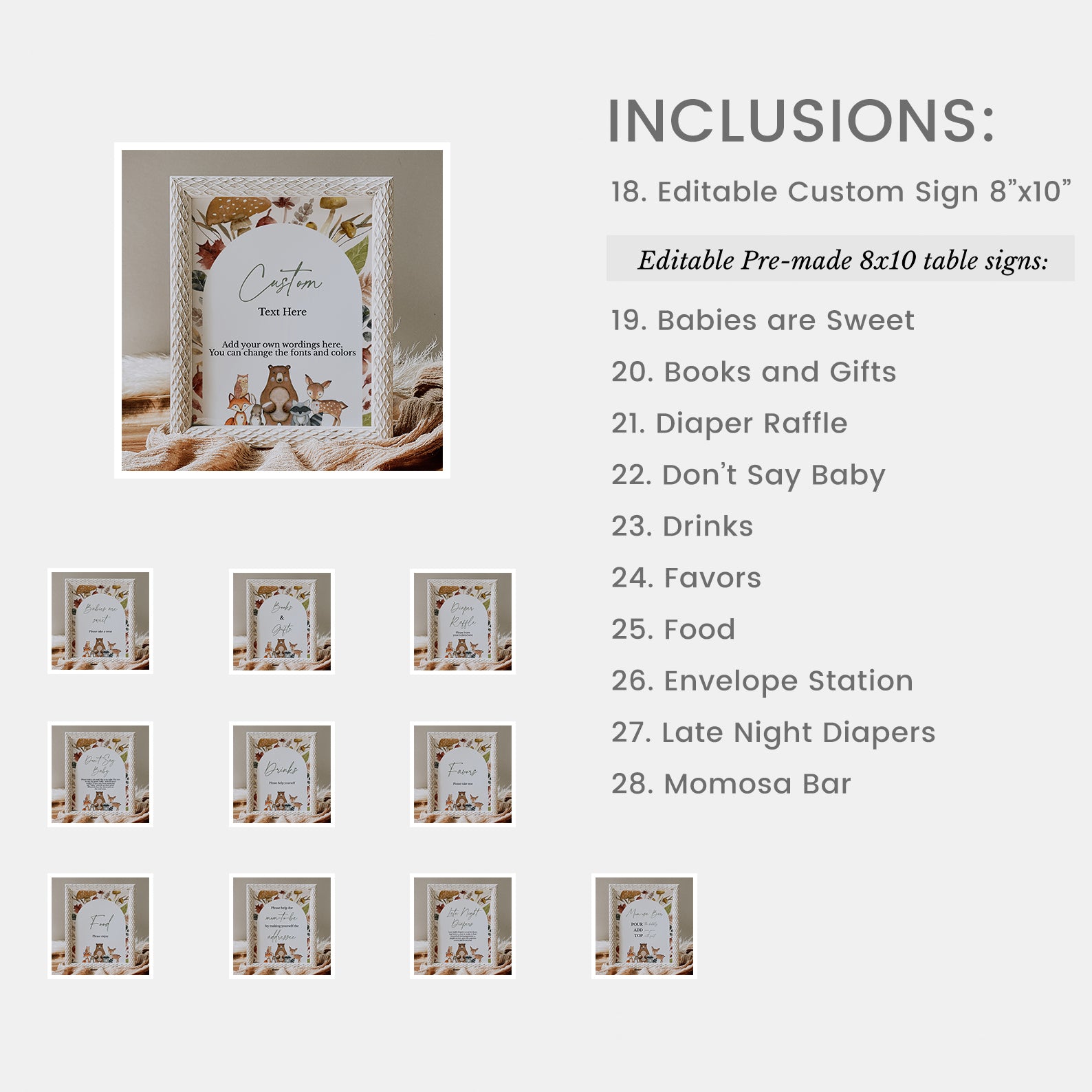- Purchase this Woodland Fall Baby Shower Mega Bundle with Mushrooms & Leaves template