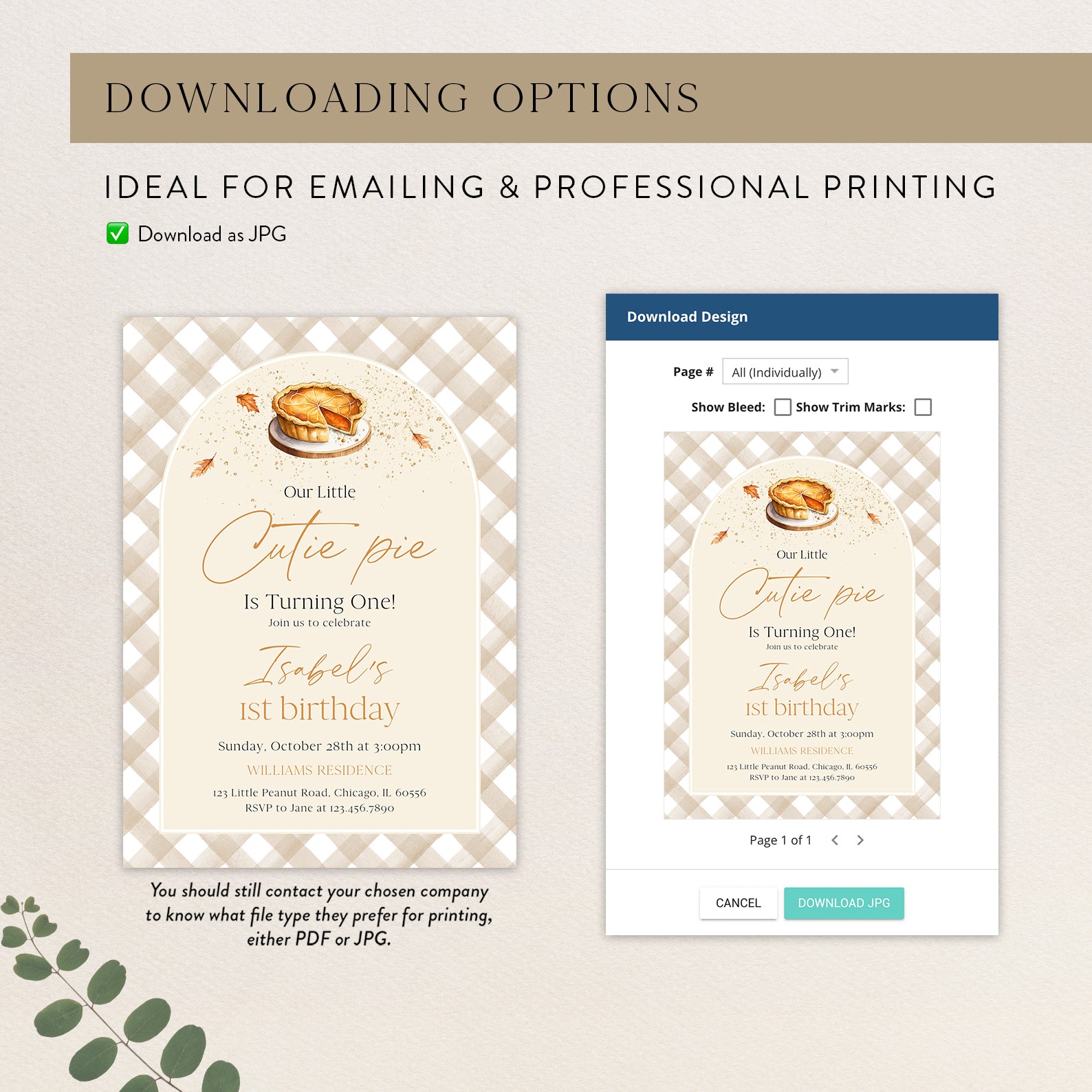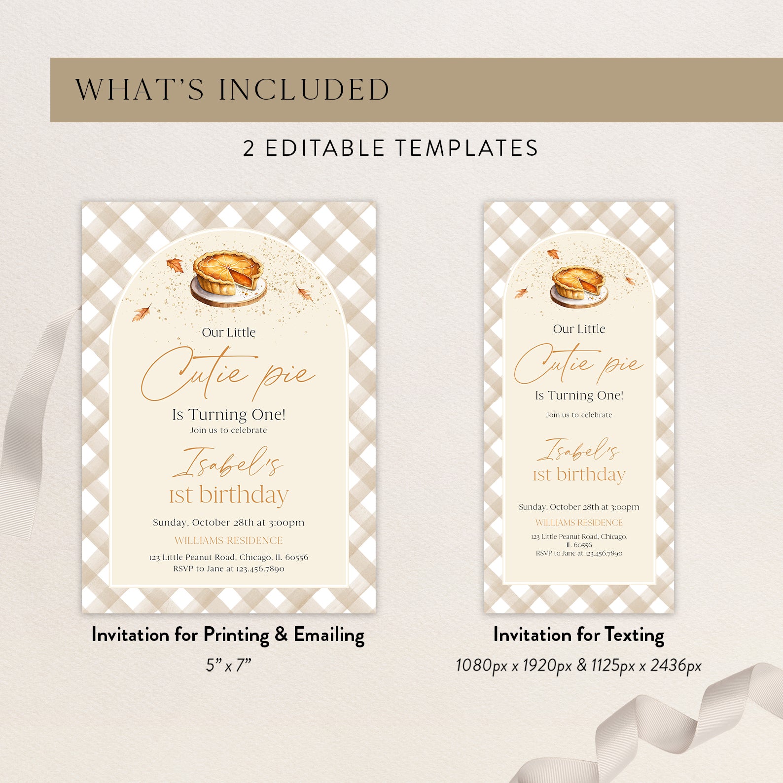 - Purchase this Autumn Cutie Pie First Birthday Digital Invitation template